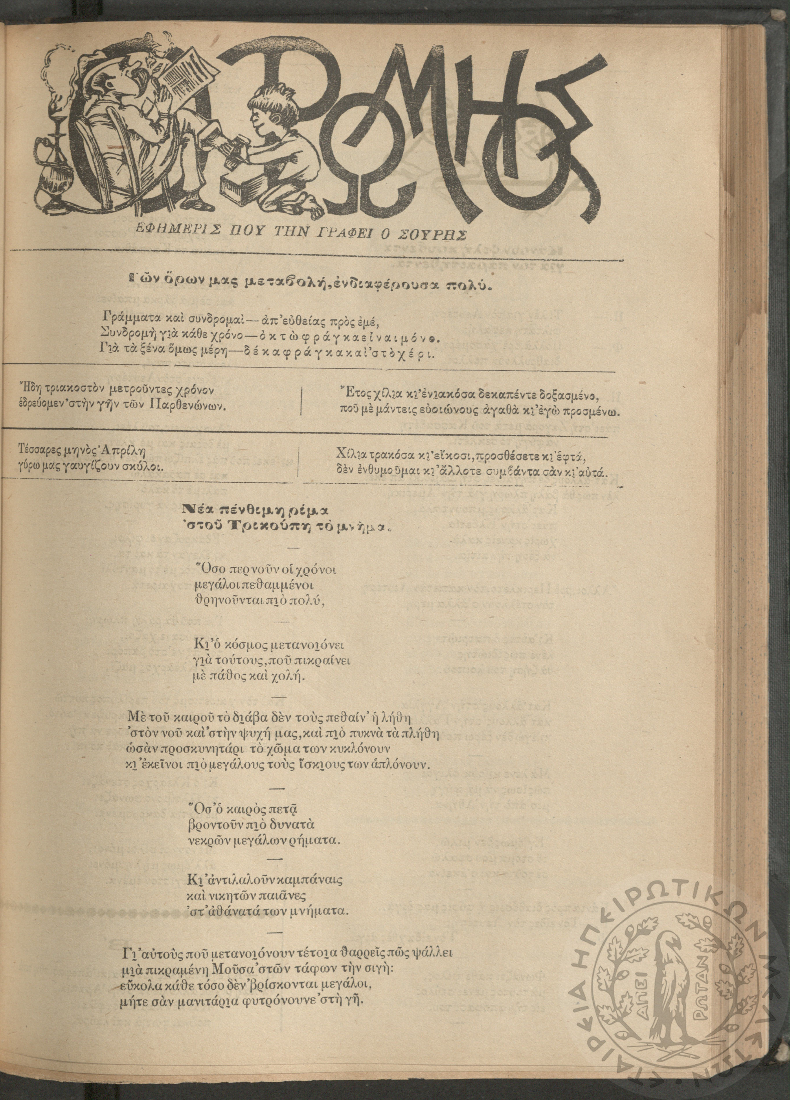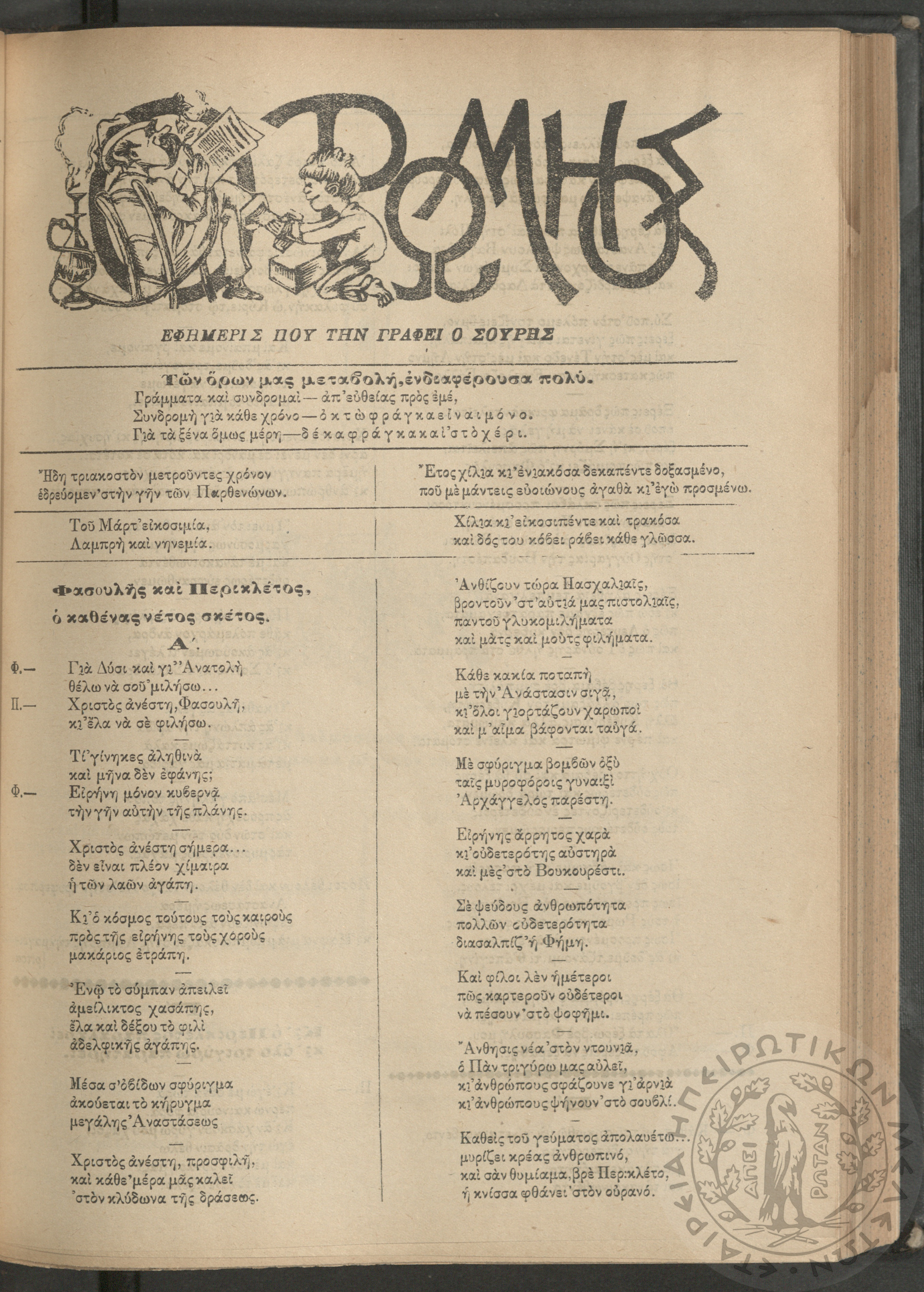 Ο Ρωμηός: Εφημερίς που την γράφει ο Σουρής, 1915, φ. 1326
