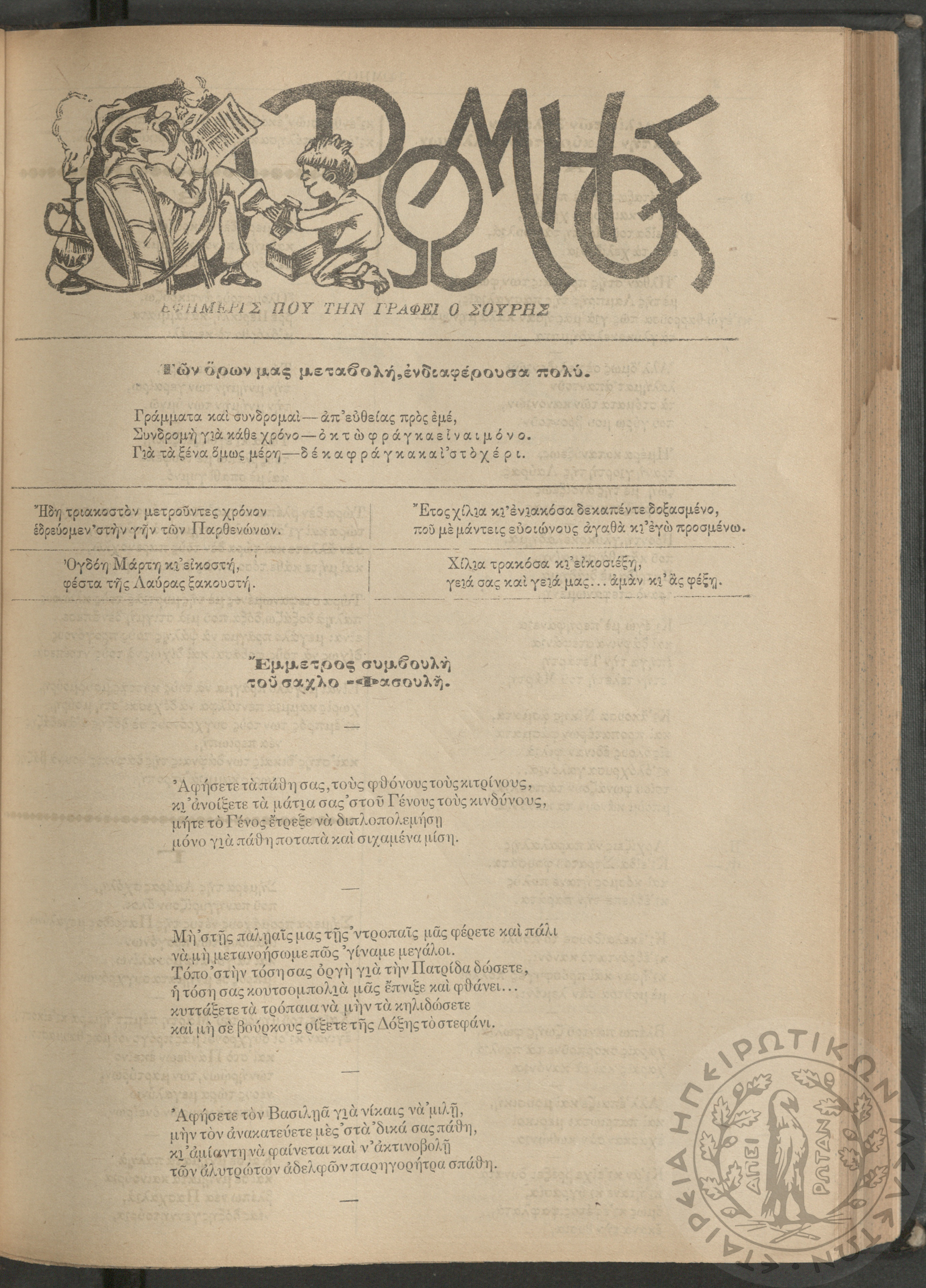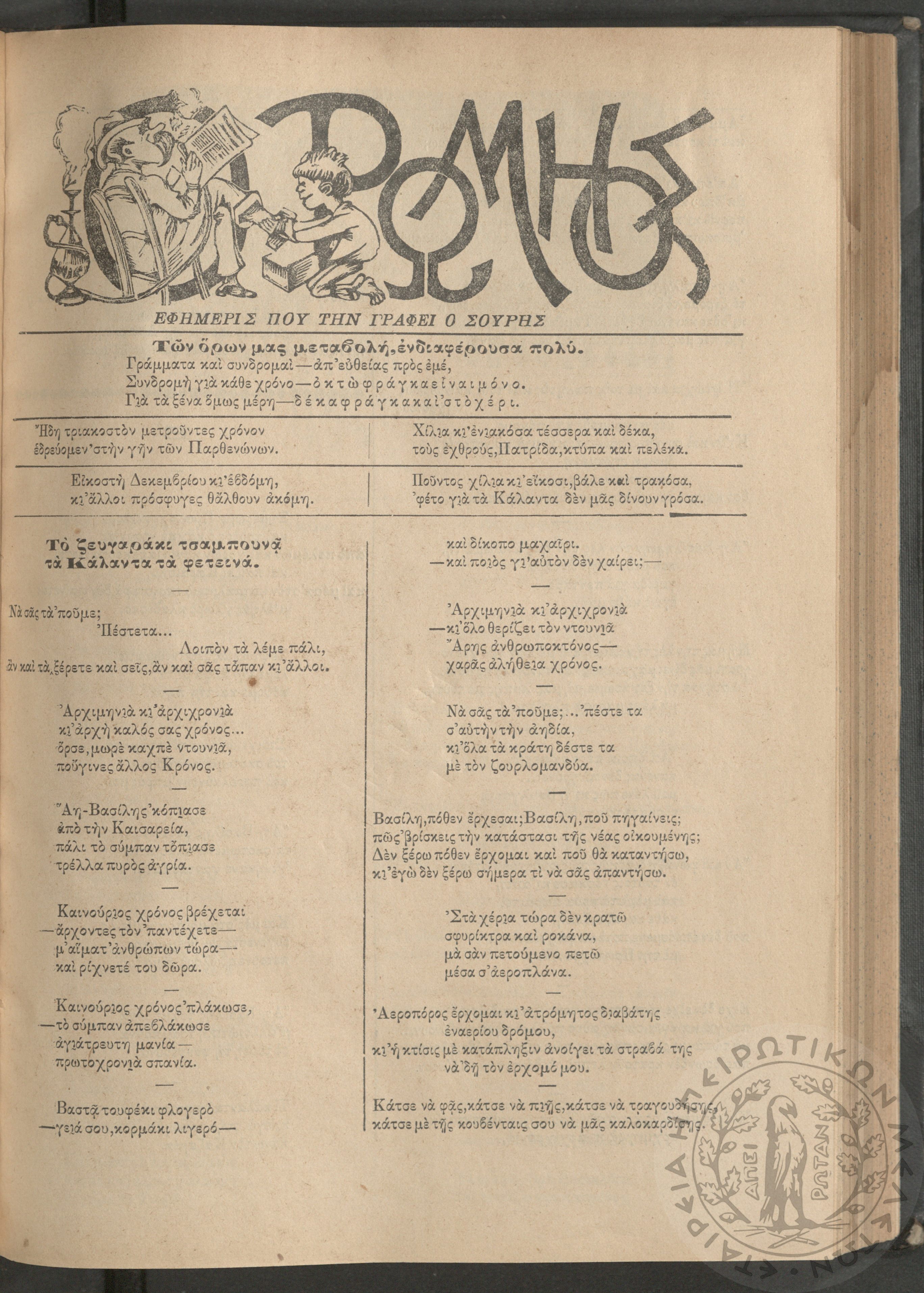 Ο Ρωμηός: Εφημερίς που την γράφει ο Σουρής, 1914, φ. 1320