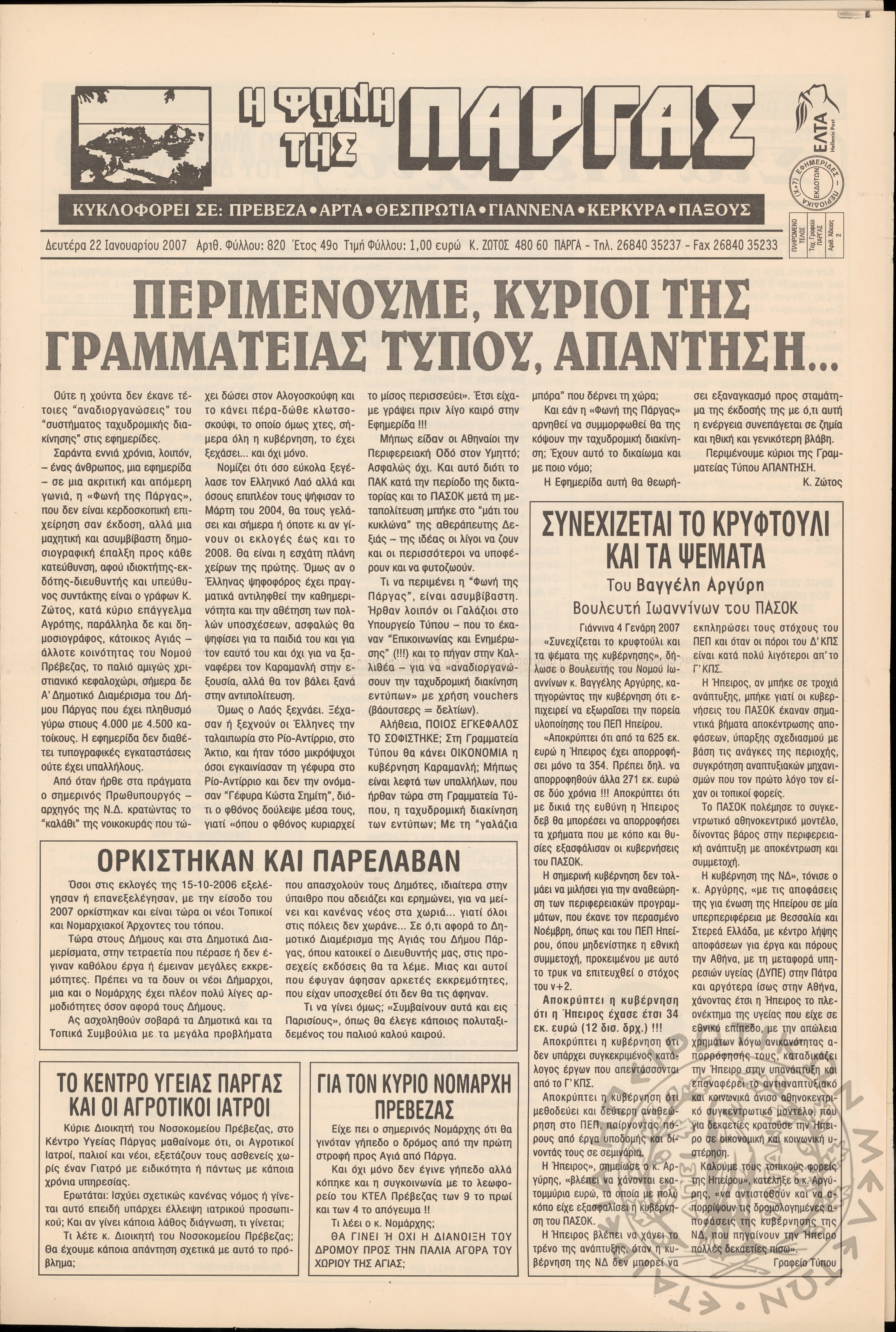 Η φωνή της Πάργας, 2007, φ. 820