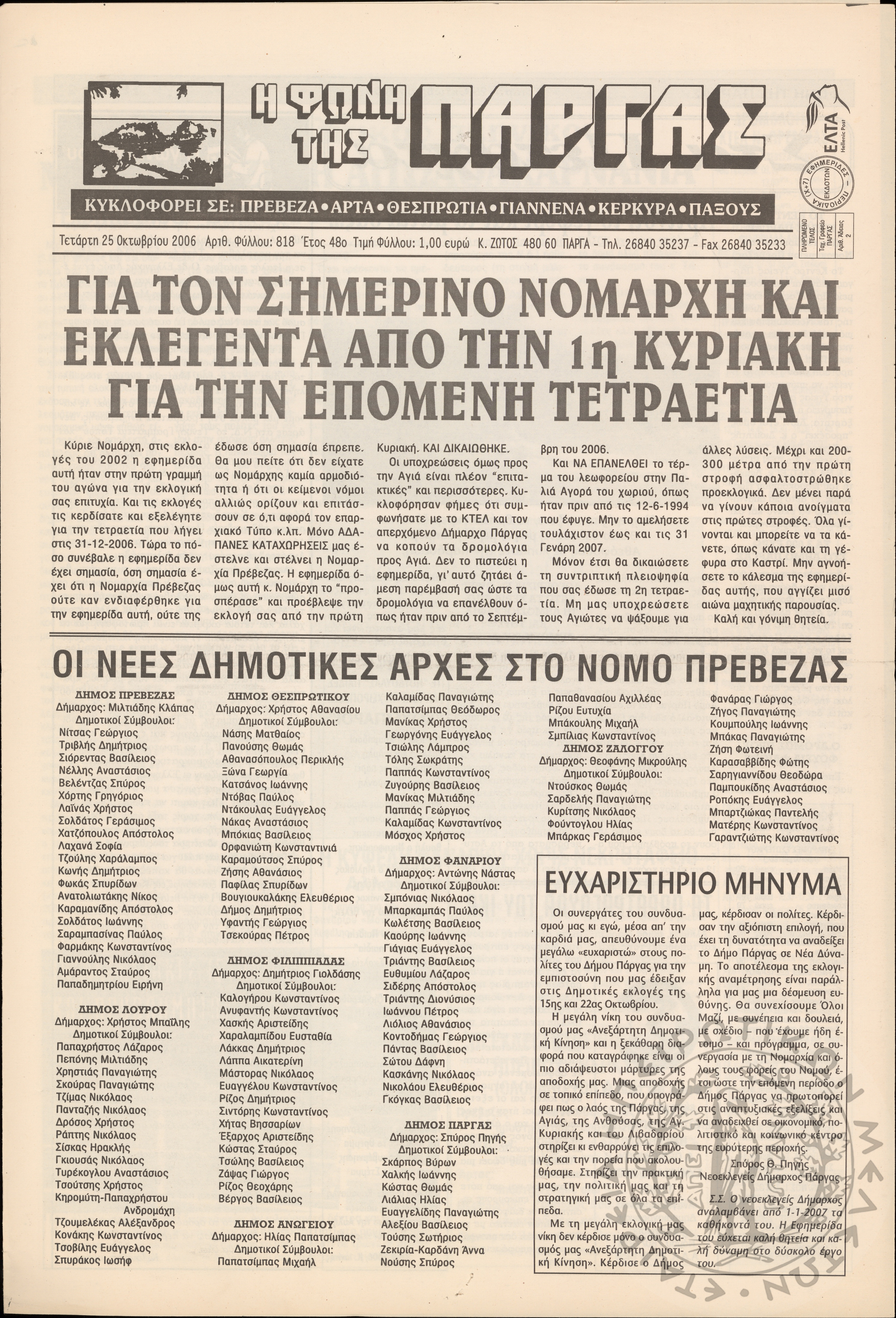 Η φωνή της Πάργας, 2006, φ. 818