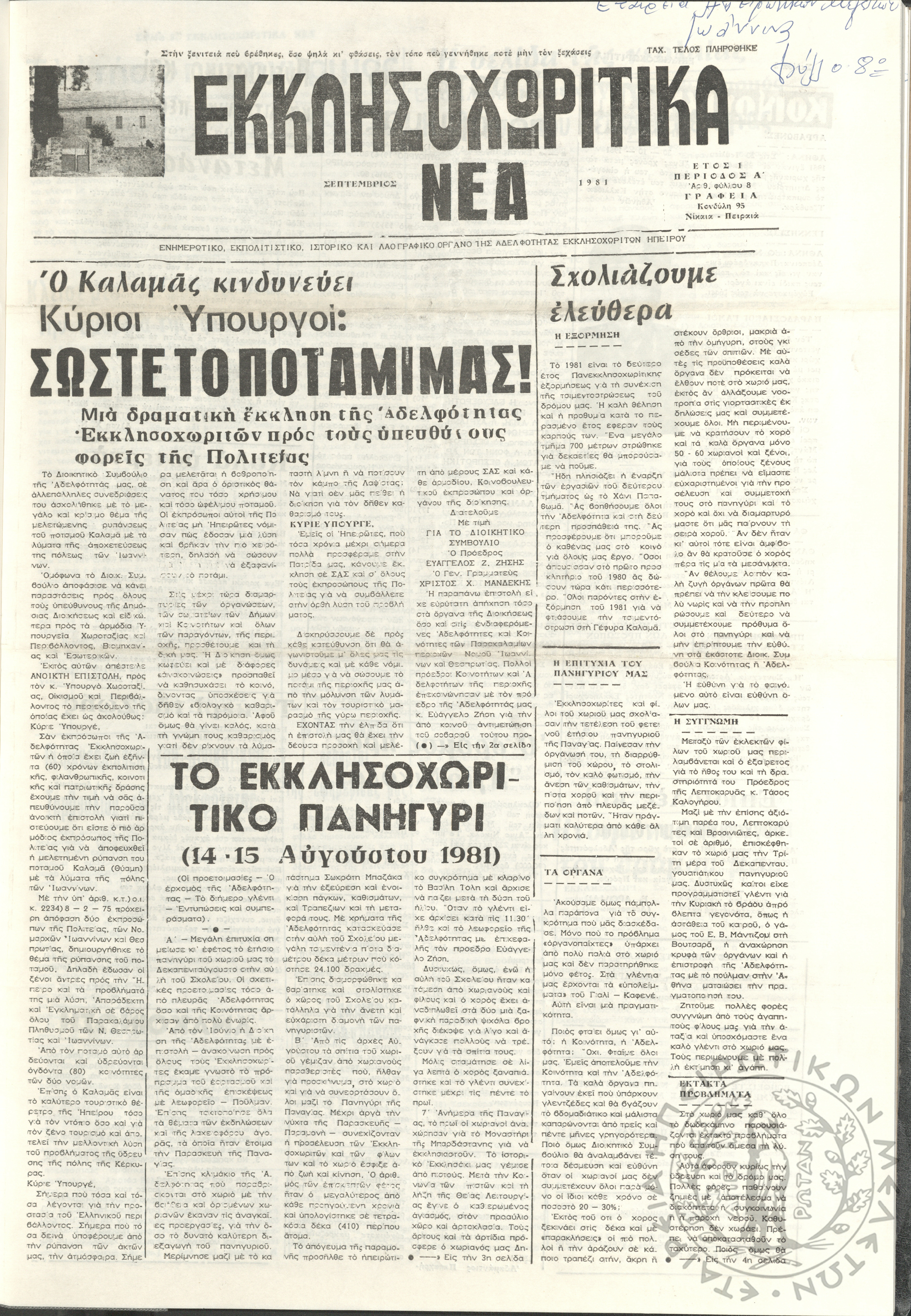 Εκκλησοχωρίτικα Νέα: Ενημερωτικό, εκπολιτιστικό, ιστορικό και λαογραφικό όργανο της Αδελφότητας Εκκλησοχωριτών Ηπείρου, 1981, φ. 8Έτος Ι', φ. 8...