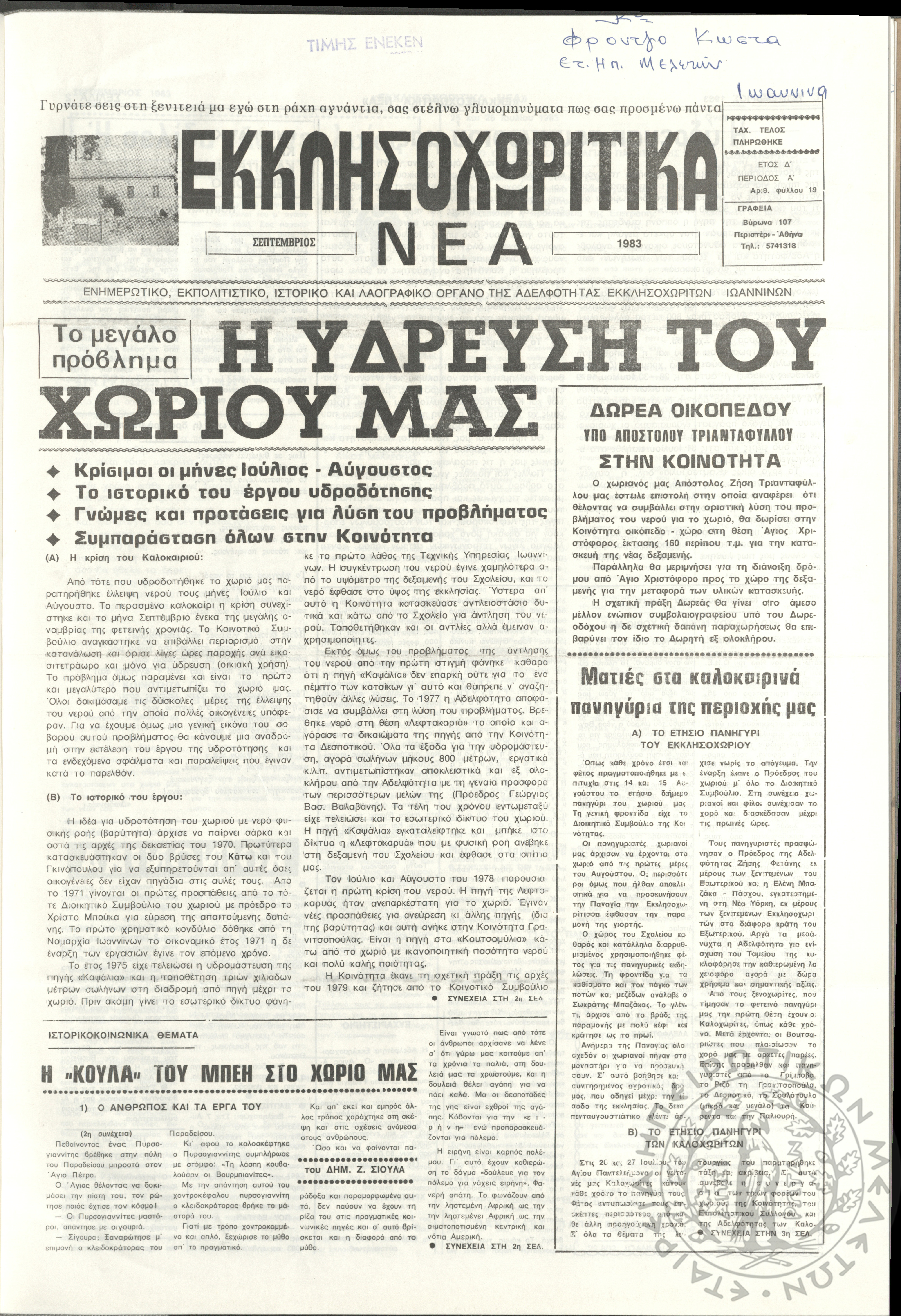 Εκκλησοχωρίτικα Νέα: Ενημερωτικό, εκπολιτιστικό, ιστορικό και λαογραφικό όργανο της Αδελφότητας Εκκλησοχωριτών Ηπείρου, 1983, φ. 19Έτος Δ', φ. 19...
