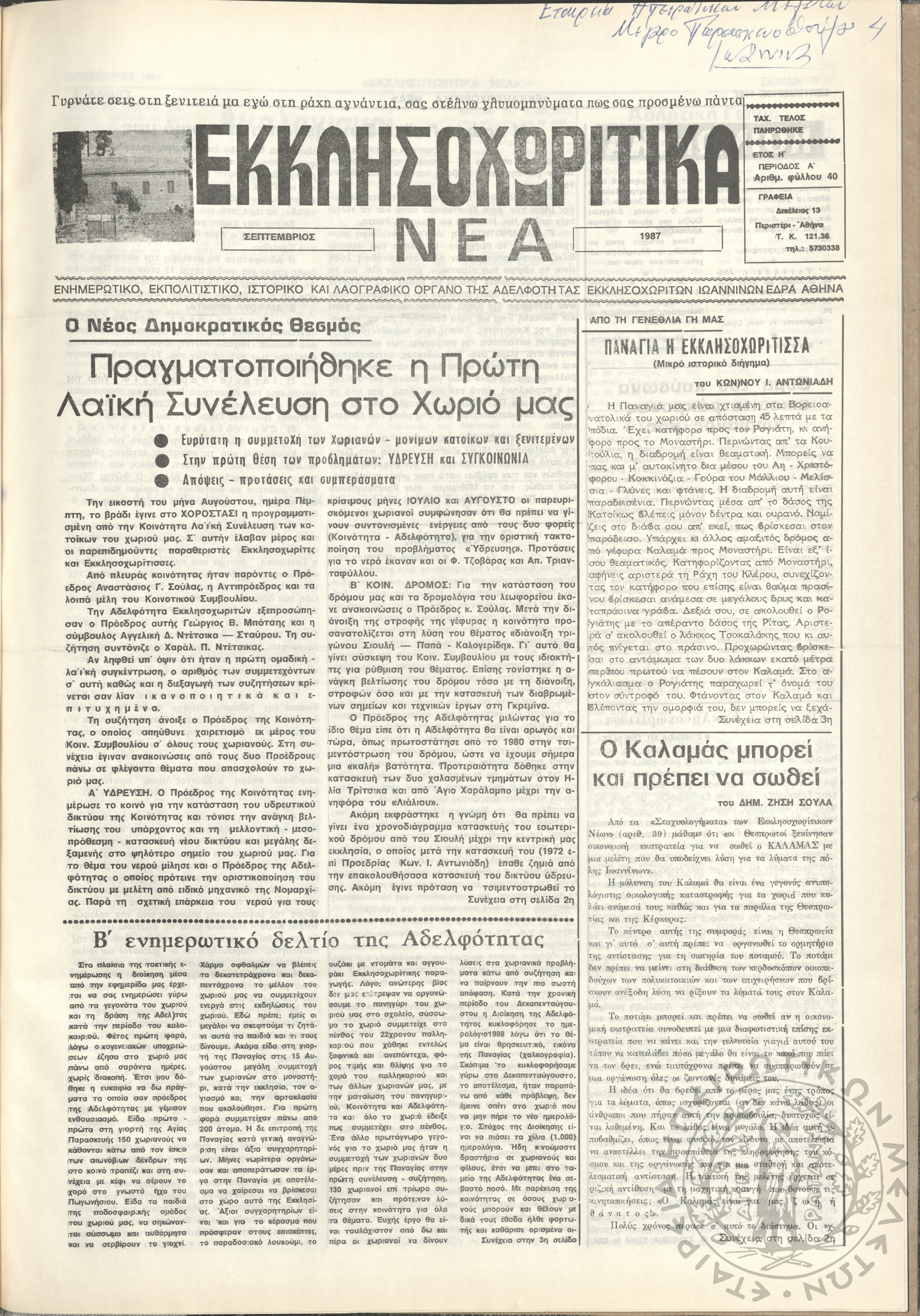 Εκκλησοχωρίτικα Νέα: Ενημερωτικό, εκπολιτιστικό, ιστορικό και λαογραφικό όργανο της Αδελφότητας Εκκλησοχωριτών Ηπείρου, 1987, φ. 40Έτος Η', φ. 40...