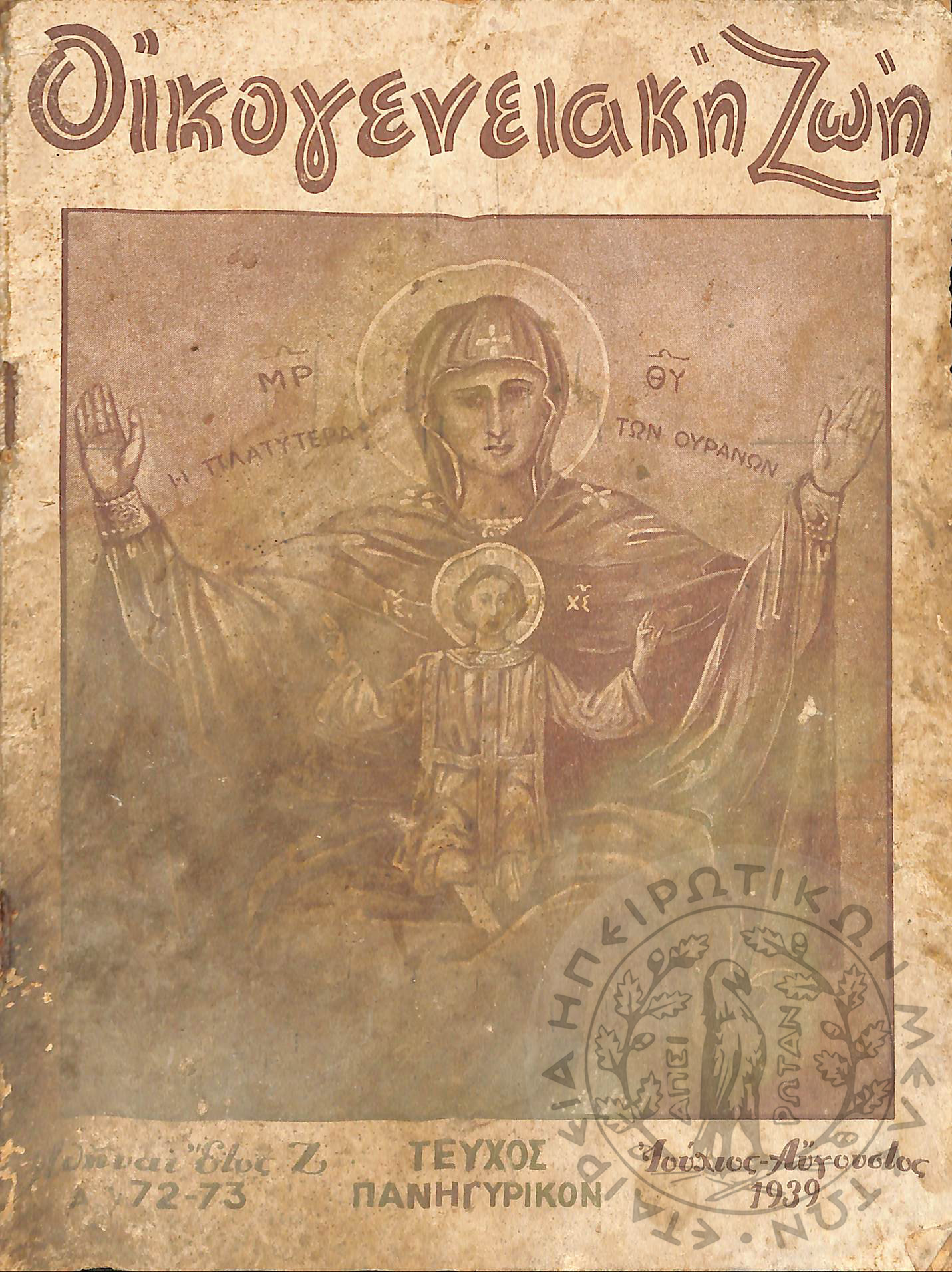 Οικογενειακή ζωή: μηνιαίον εικονογραφημένον περιοδικόν - Όργανον Χριστιανικής και κοινωνικής μορφώσεως (τεύχ. 72-73)Έτος Ζ΄, τεύχ. 72-73...