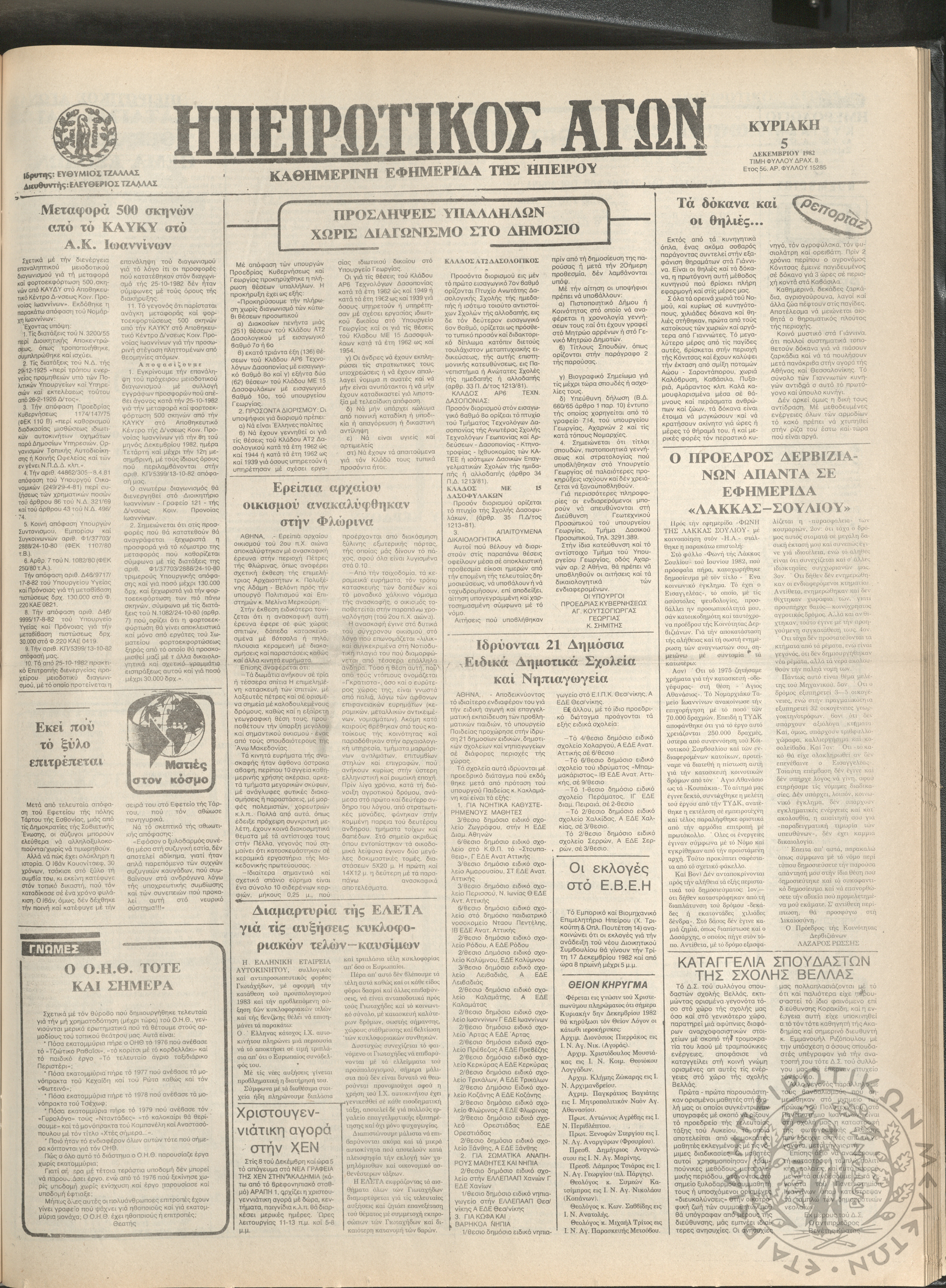 Εκκλησοχωρίτικα Νέα: Ενημερωτικό, εκπολιτιστικό, ιστορικό και λαογραφικό όργανο της Αδελφότητας Εκκλησοχωριτών Ιωαννίνων, 1984, φ. 21Έτος Ε', φ. 21...
