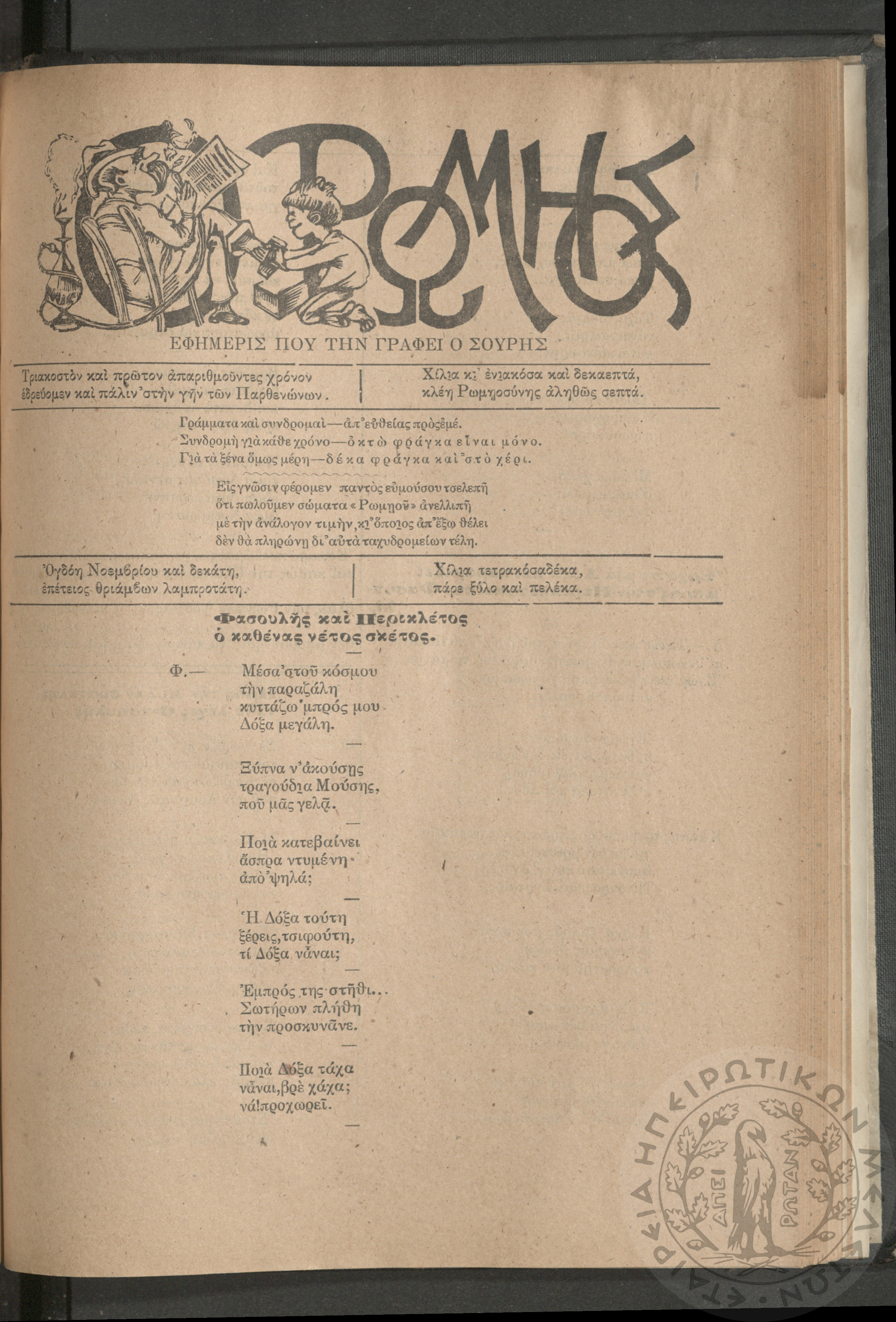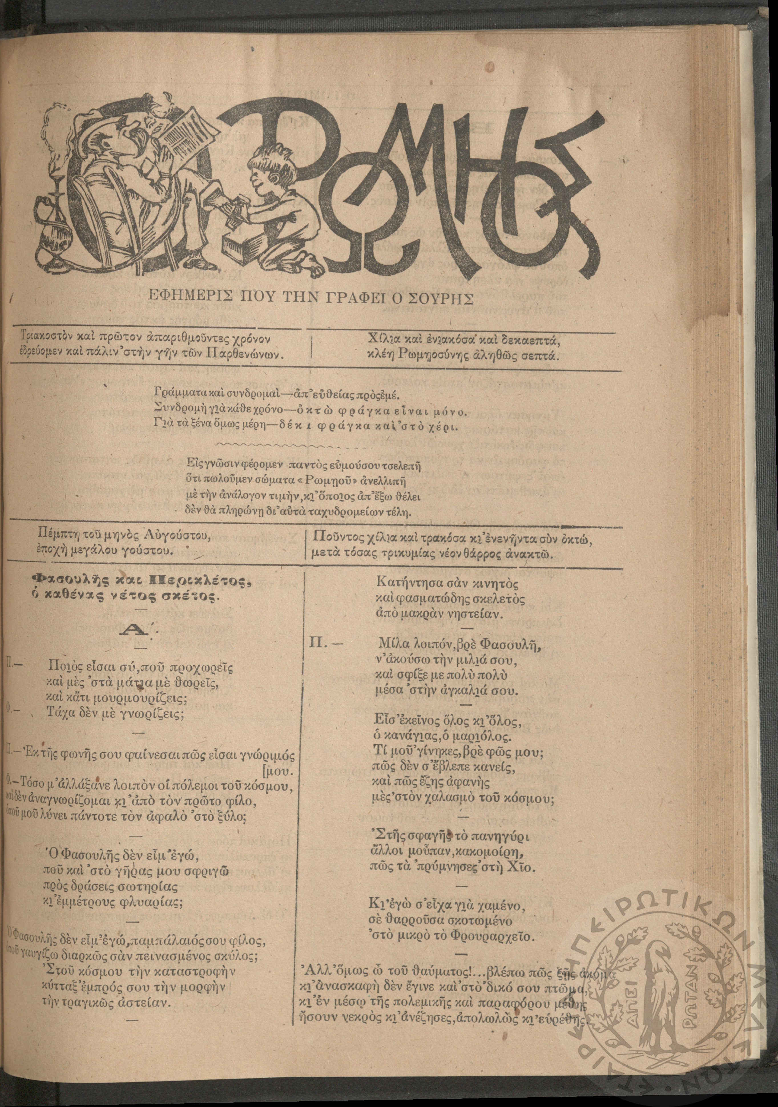 Πολιτισμός: δεκαπενθήμερον γενικόν περιοδικόν - πολιτισμός, κοινωνιολογία, οικονομολογία, επιστήμαι, γράμματα και τέχναι (τεύχ. 5)Έτος Β', τεύχ. 5...