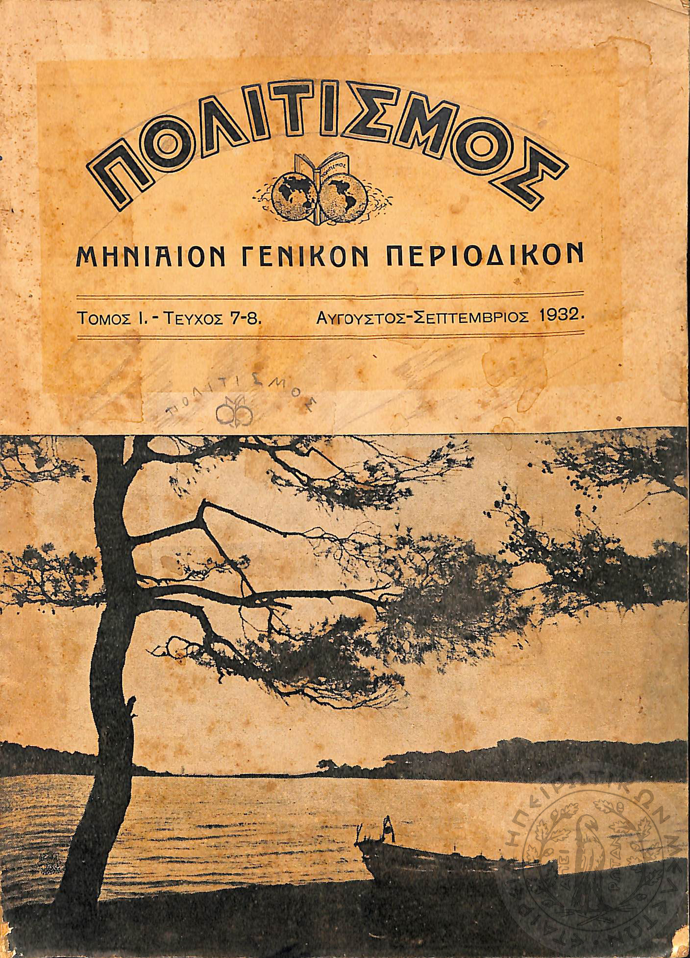 Πολιτισμός: μηνιαίον γενικόν περιοδικόν εκδιδόμενον την 10ην εκάστου μηνός - πολιτική, κοινωνιολογία, οικονομολογία, επιστήμαι, γράμματα και τέχναι (τεύχ. 7-8)Έτος Ι΄, τεύχ. 7-8...