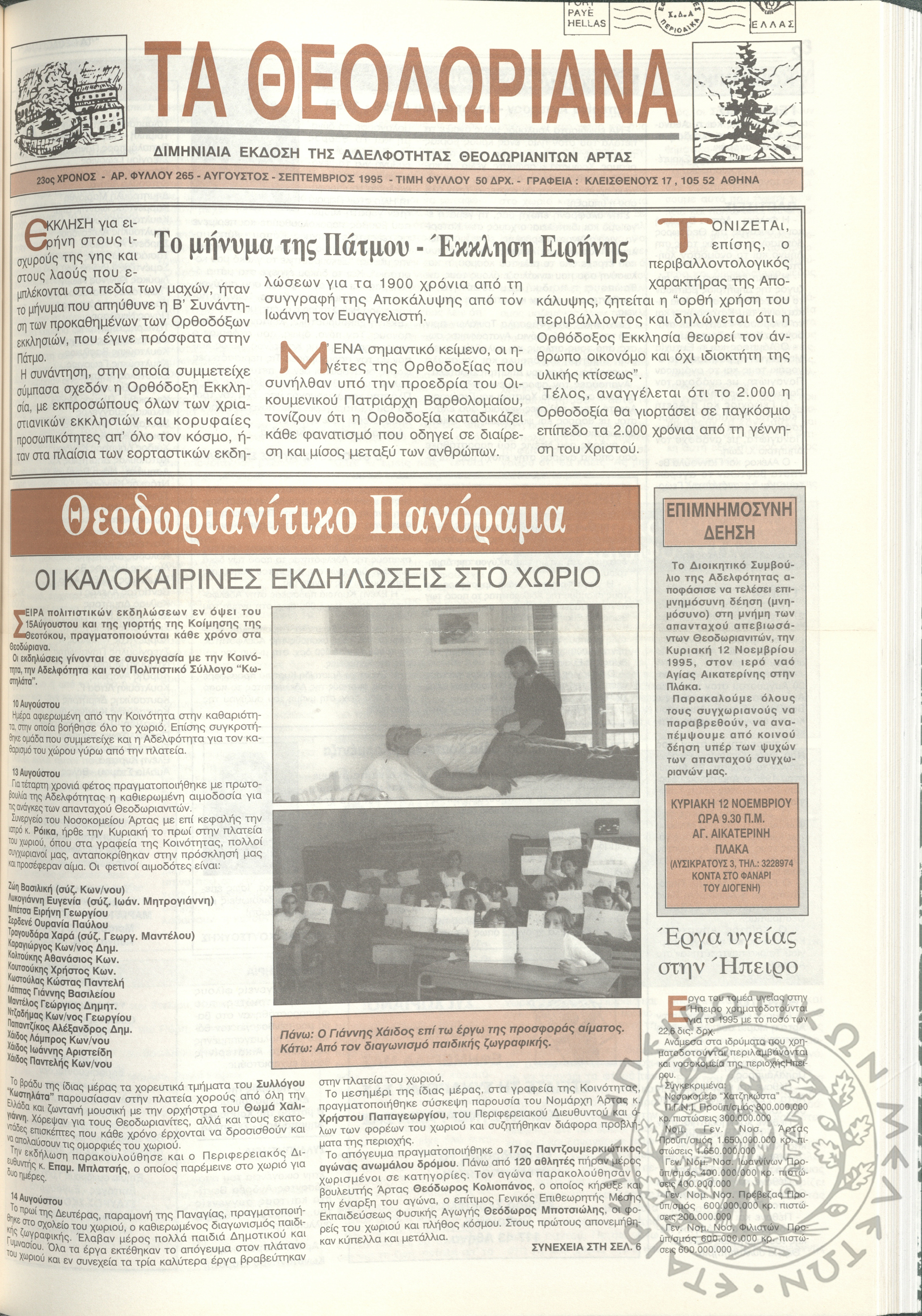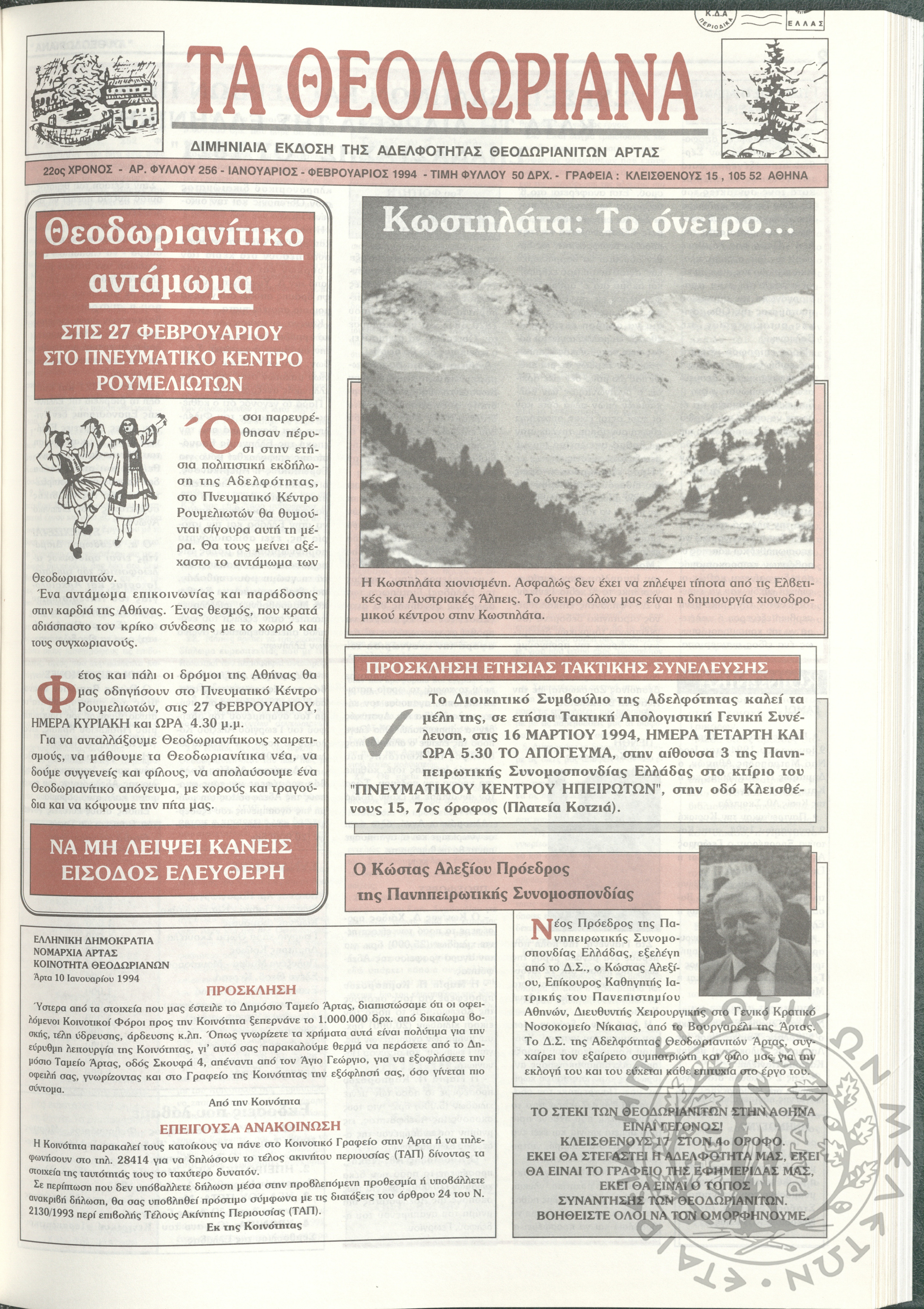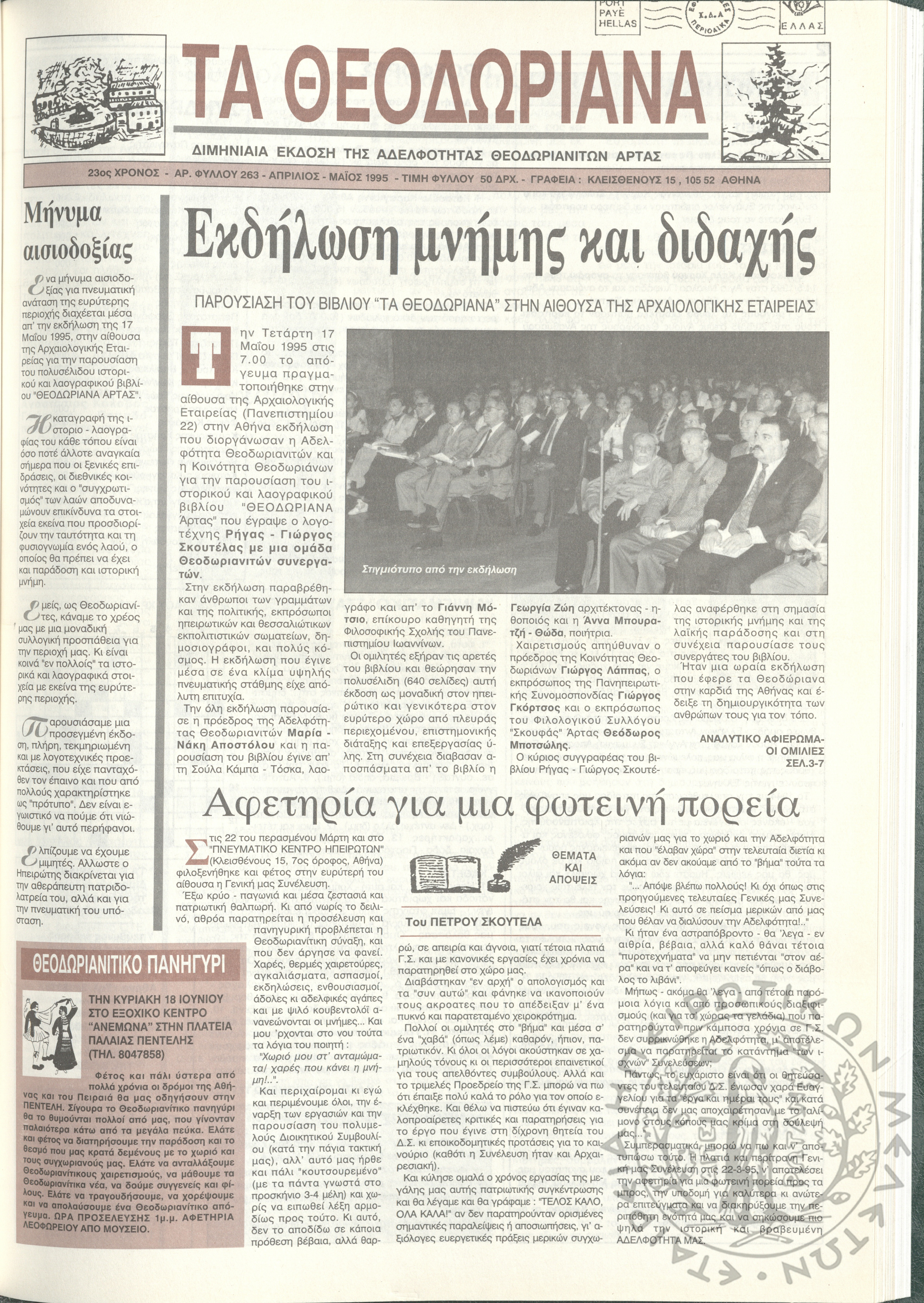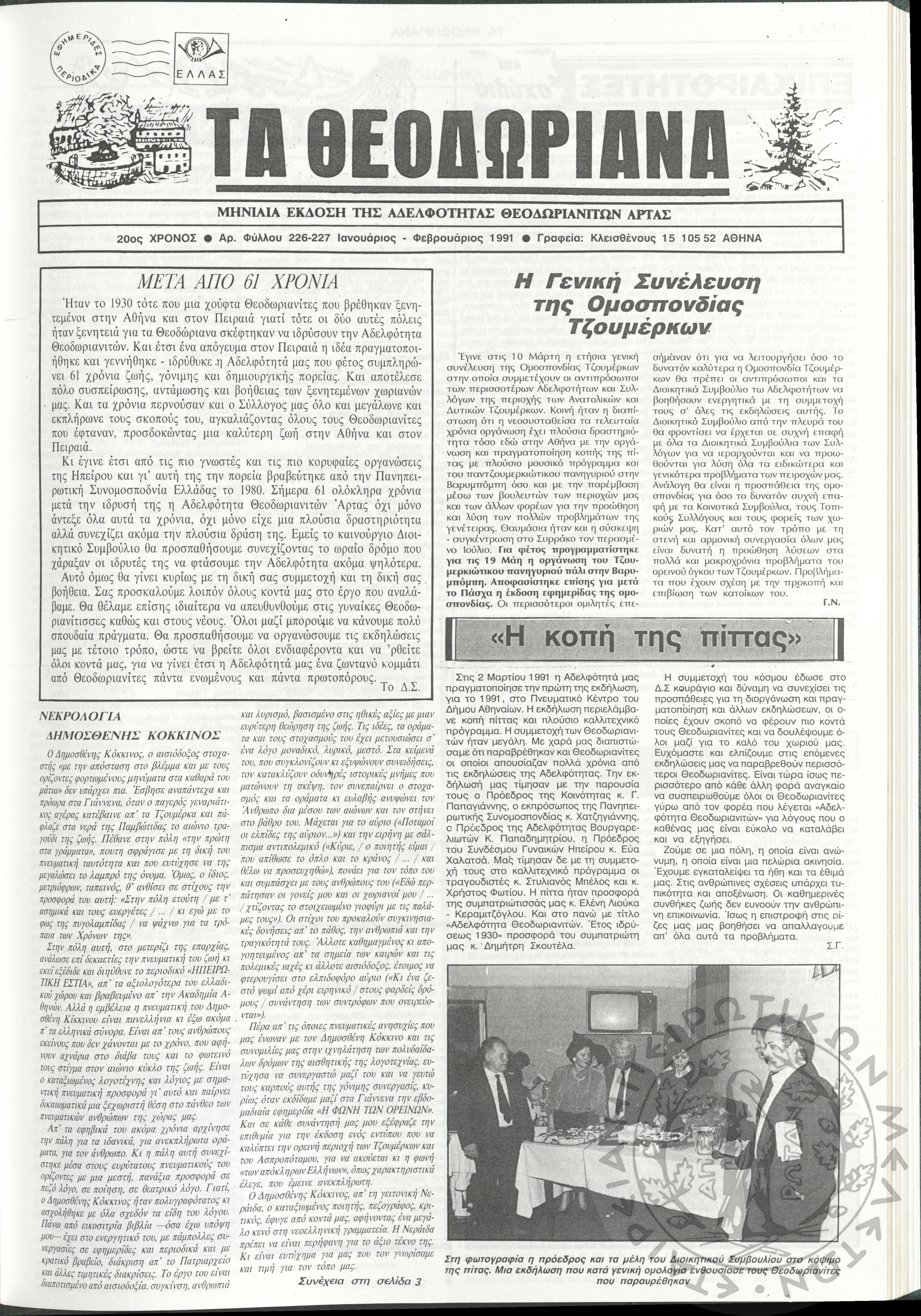 Τα Θεοδώριανα: Μηνιαία έκδοση της αδελφότητας Θεοδωριανιτών Άρτας, 1991, φ. 221-222Έτος 20, φ. 226-227...