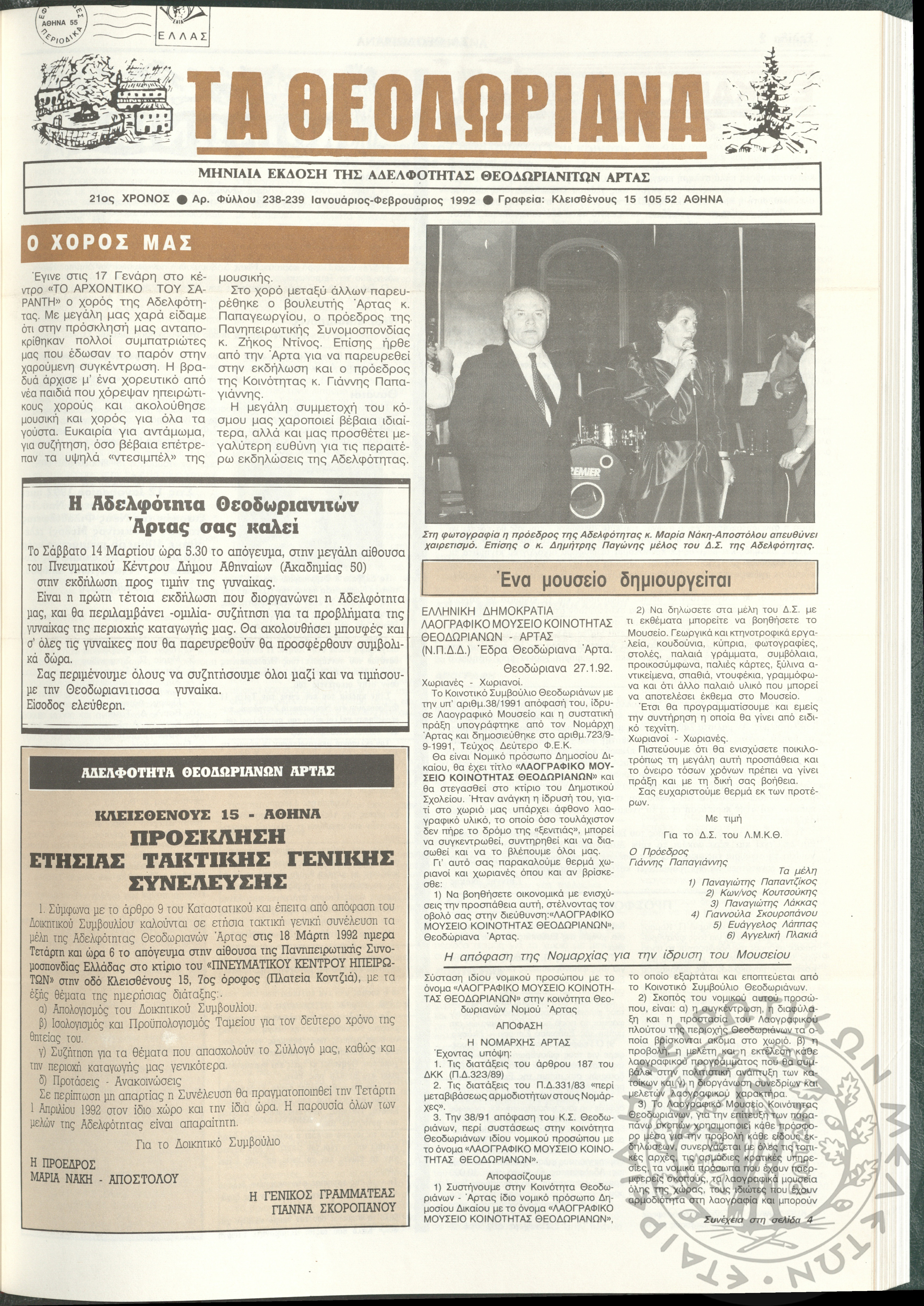 Τα Θεοδώριανα: Μηνιαία έκδοση της αδελφότητας Θεοδωριανιτών Άρτας, 1992, φ. 238-239Έτος 21, φ. 238-239...