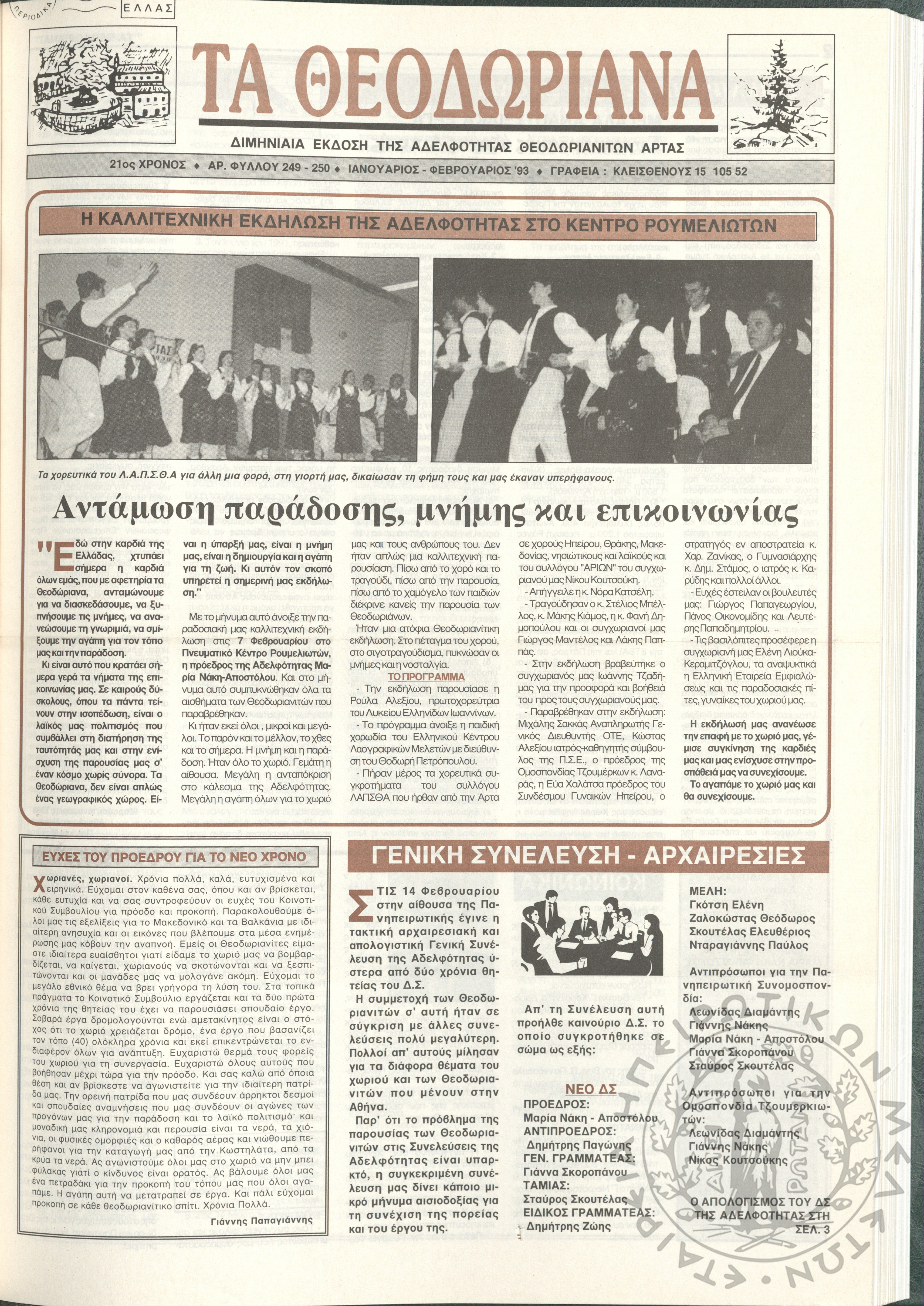 Τα Θεοδώριανα: Διμηνιαία έκδοση της αδελφότητας Θεοδωριανιτών Άρτας, 1993, φ. 249-250Έτος 21, φ. 249-250...