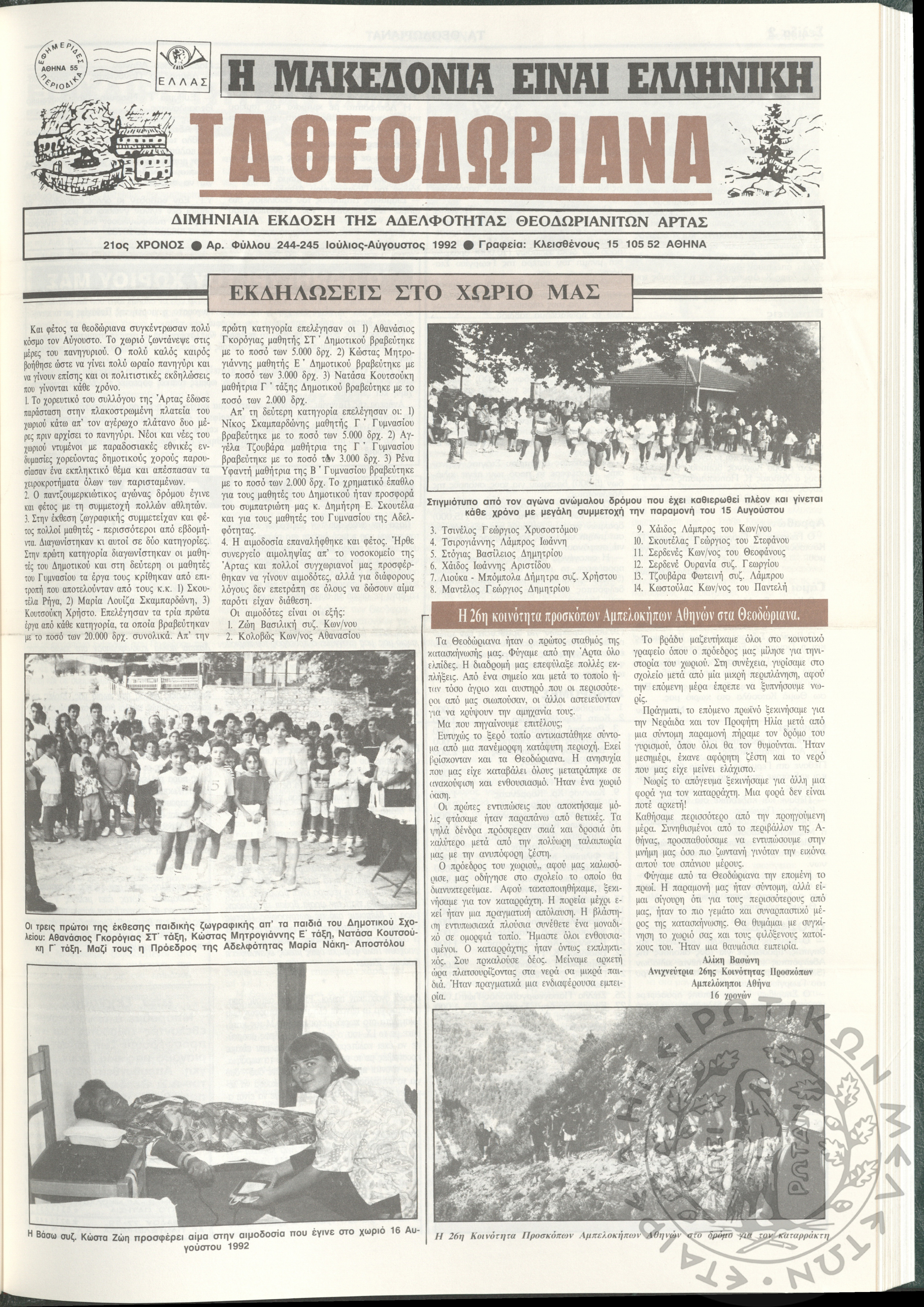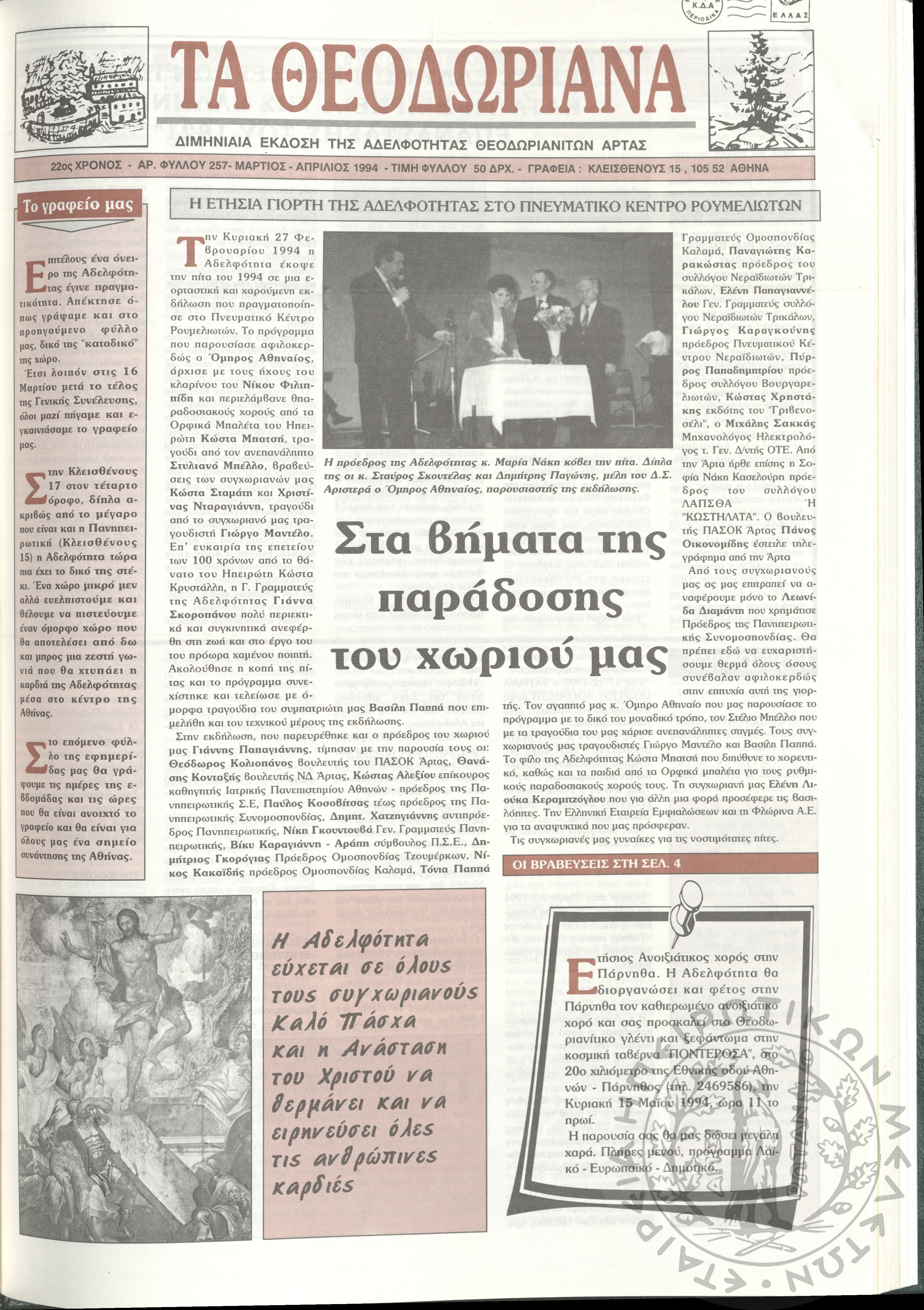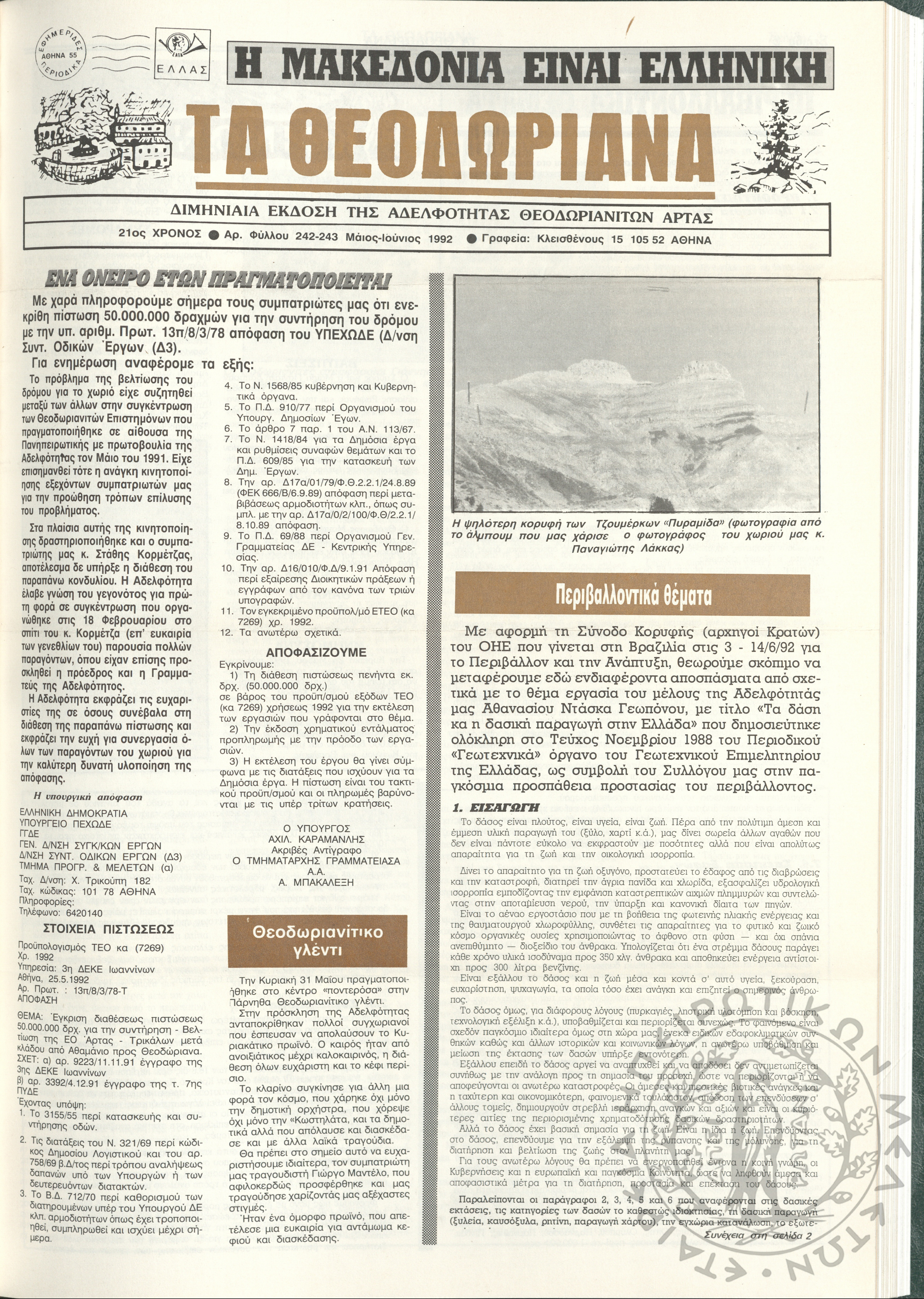 Τα Θεοδώριανα: Διμηνιαία έκδοση της αδελφότητας Θεοδωριανιτών Άρτας, 1992, φ. 244-245Έτος 21, φ. 244-245...