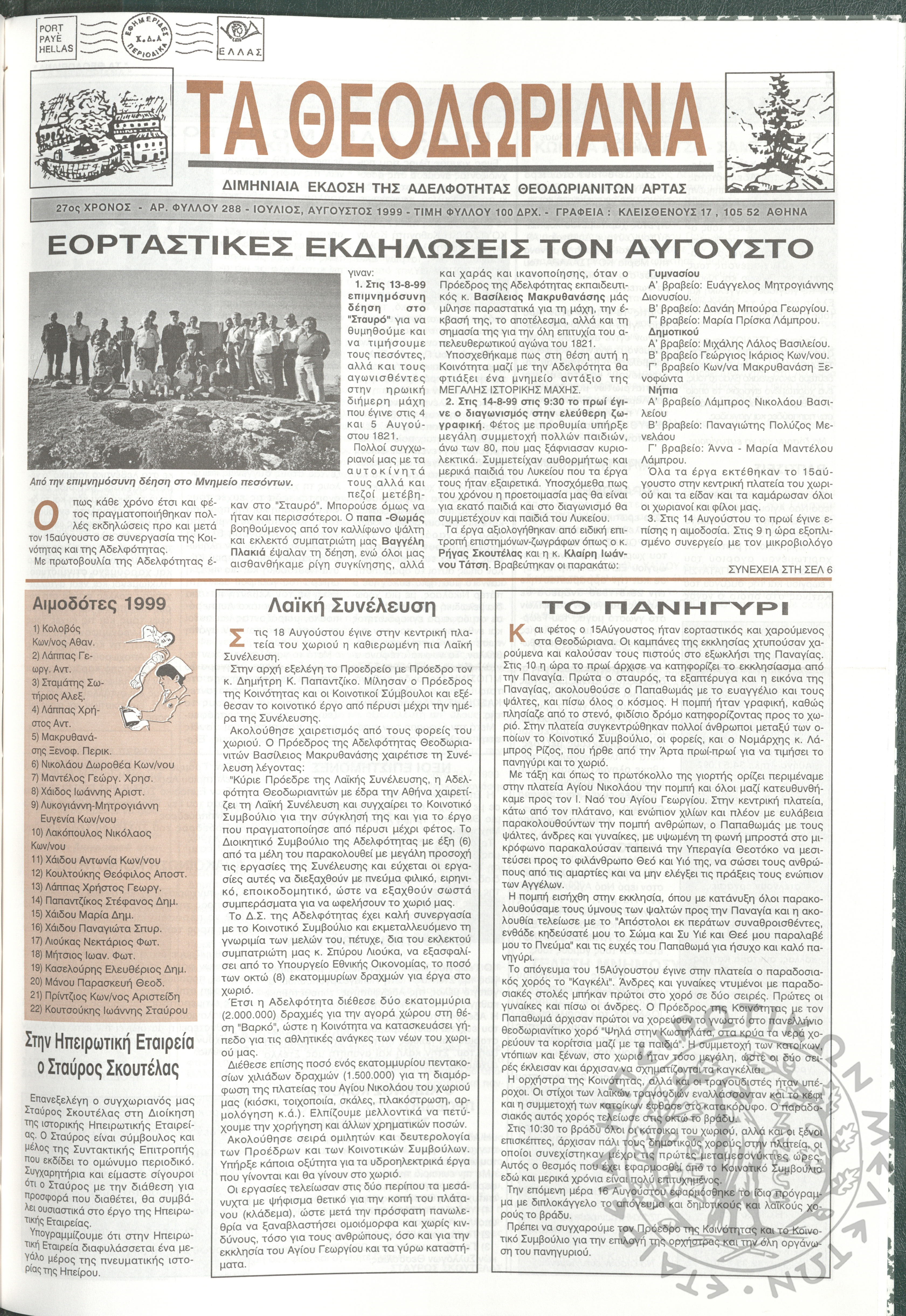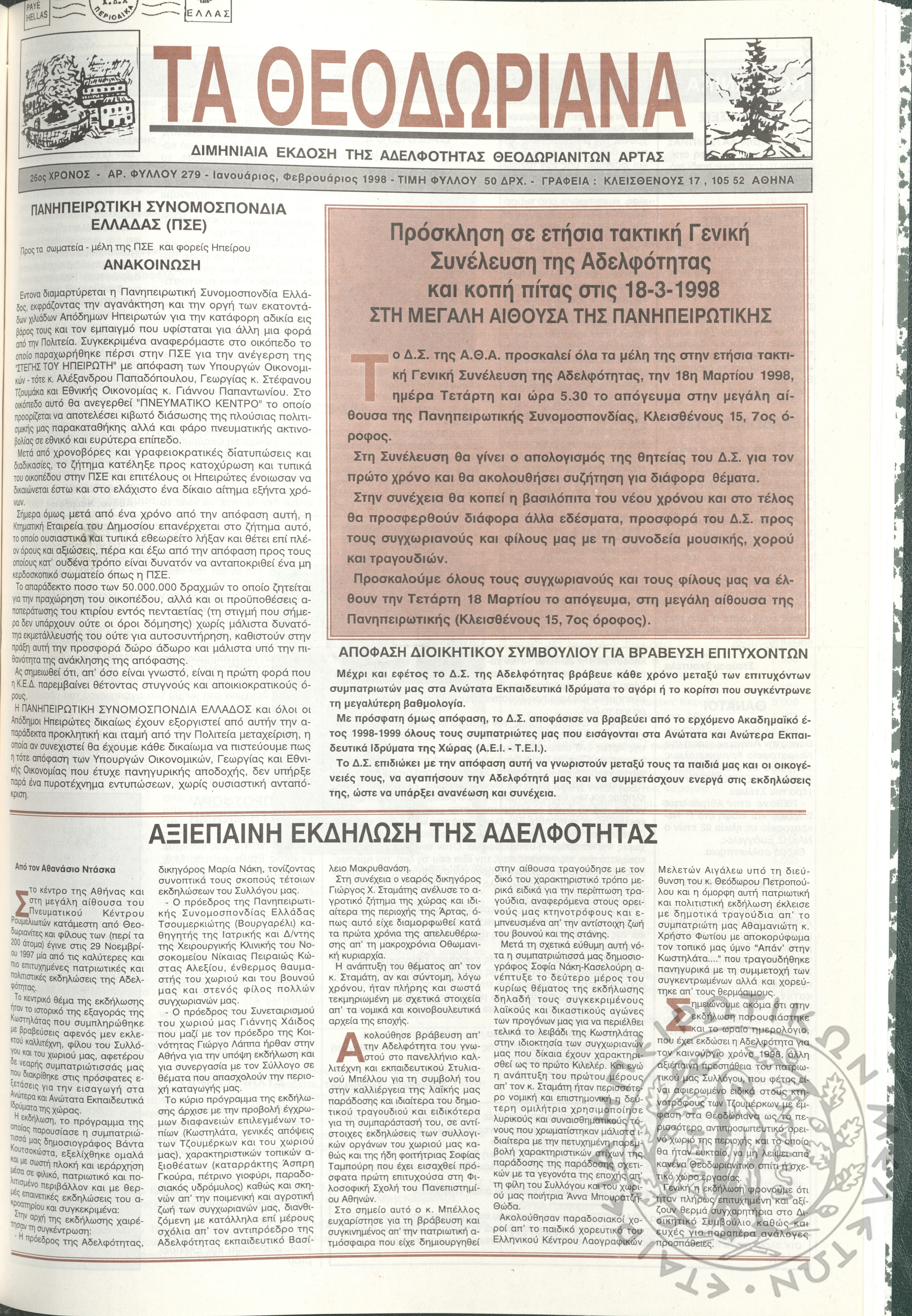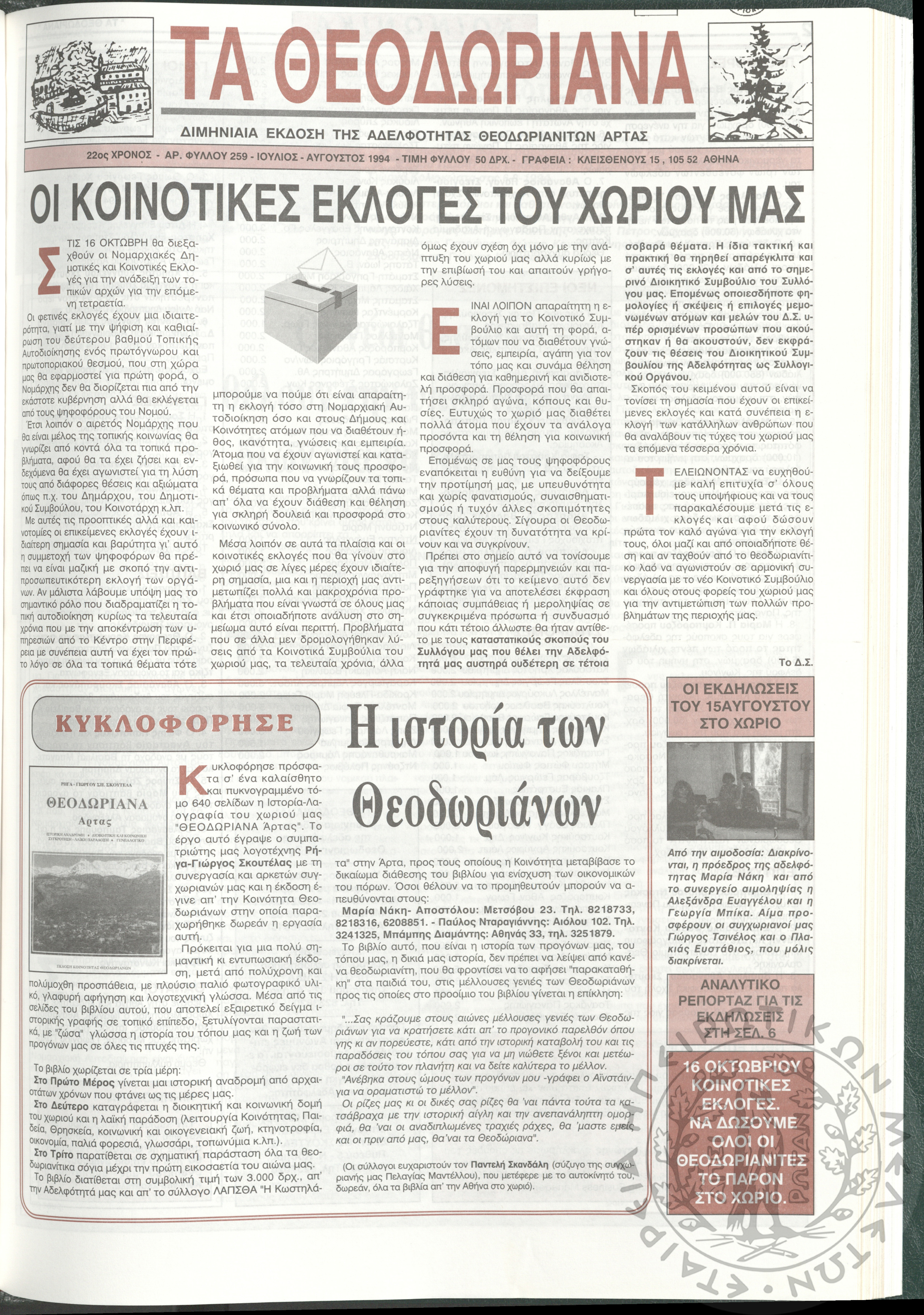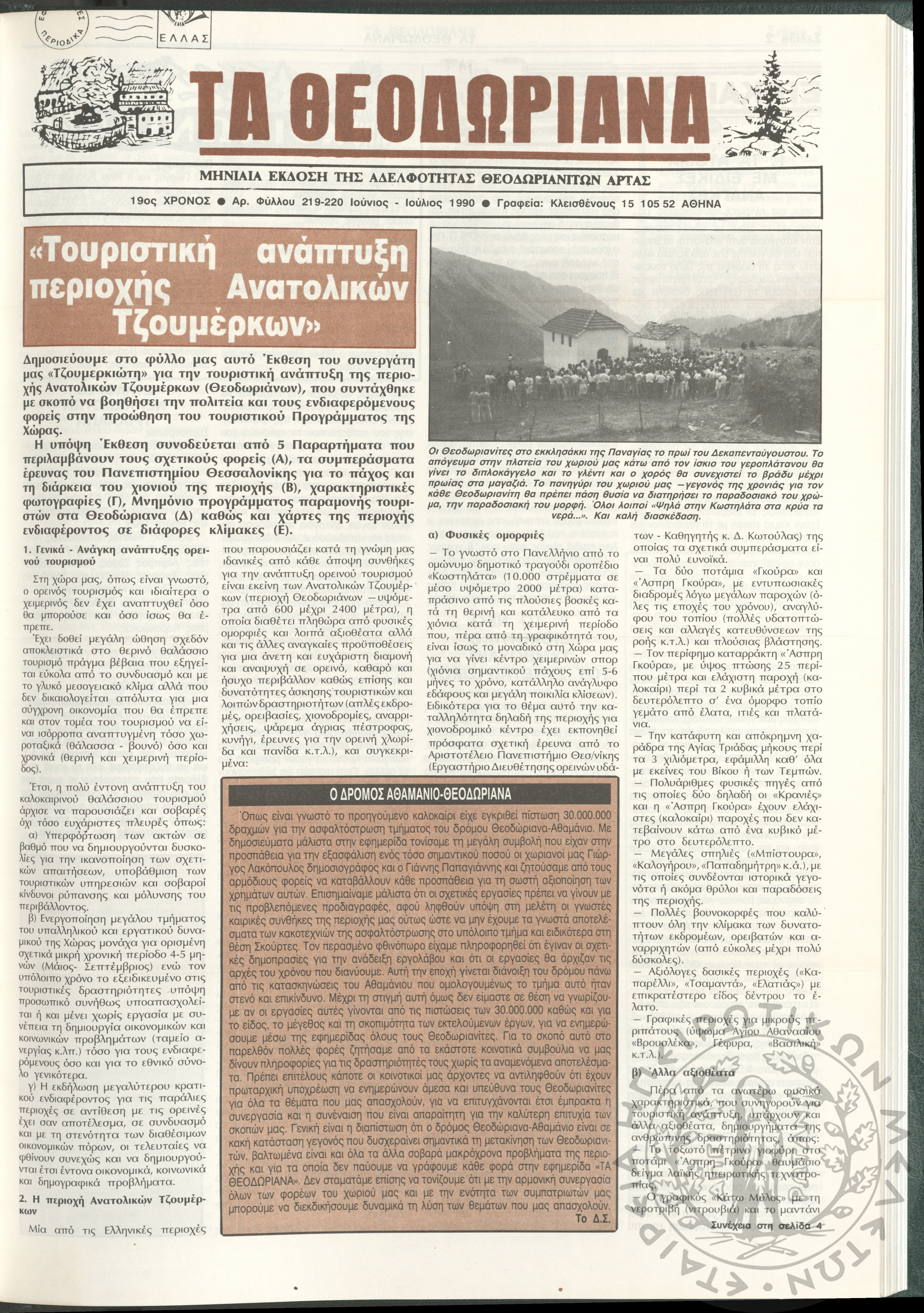 Τα Θεοδώριανα: Μηνιαία έκδοση της αδελφότητας Θεοδωριανιτών Άρτας, 1990, φ. 219-220Έτος 19, φ. 219-220...