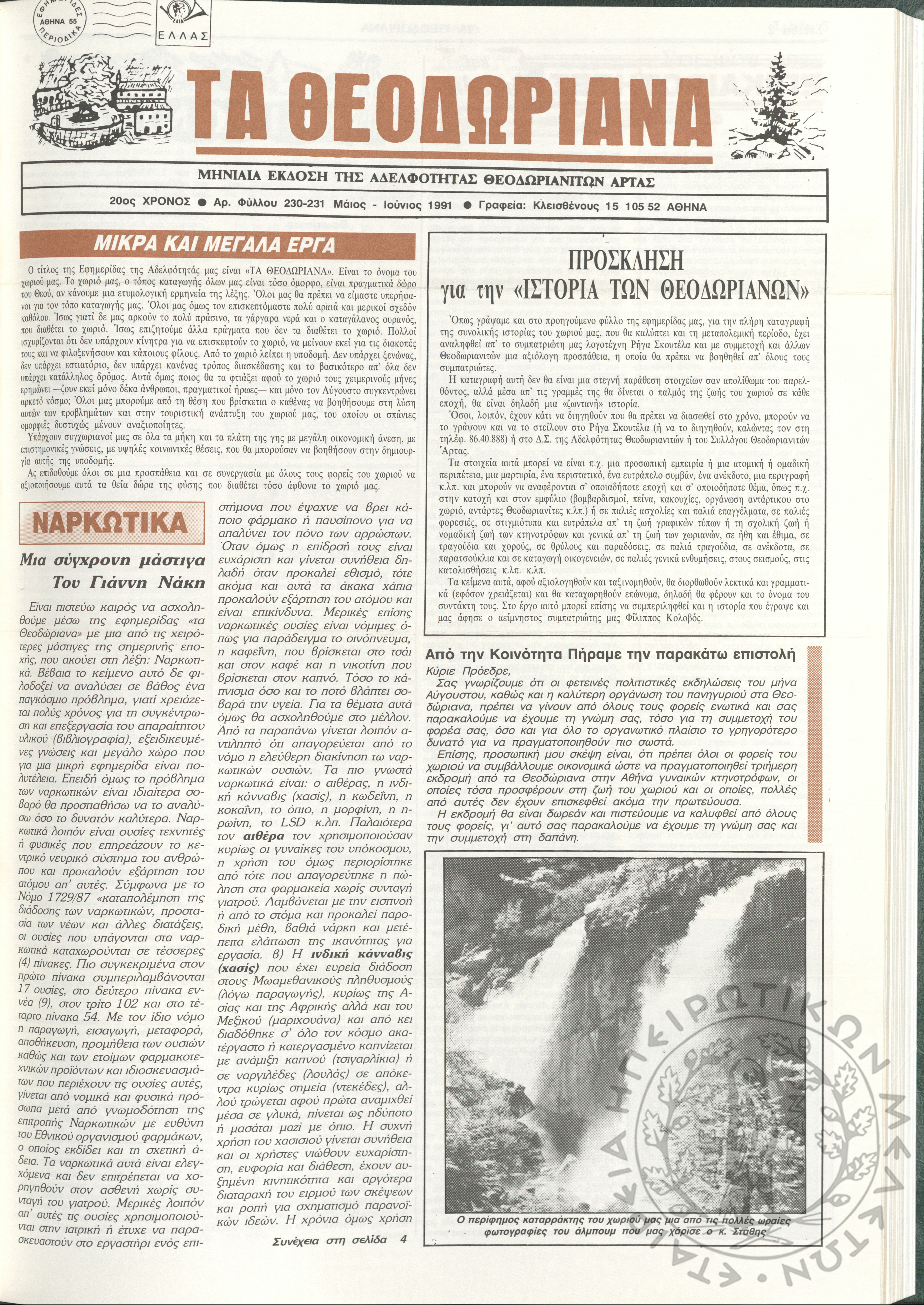 Τα Θεοδώριανα: Μηνιαία έκδοση της αδελφότητας Θεοδωριανιτών Άρτας, 1991, φ. 230-231Έτος 20, φ. 230-231...