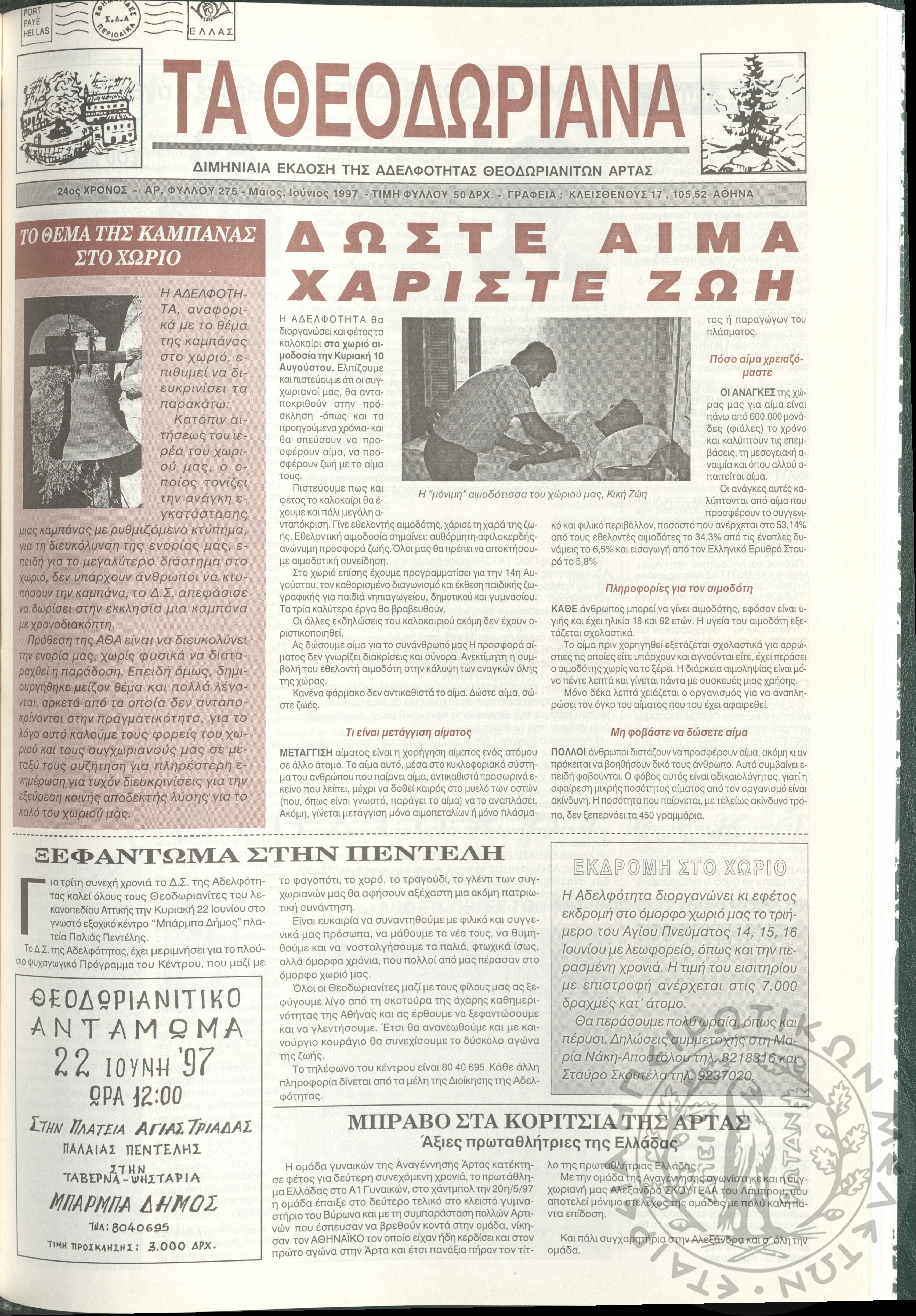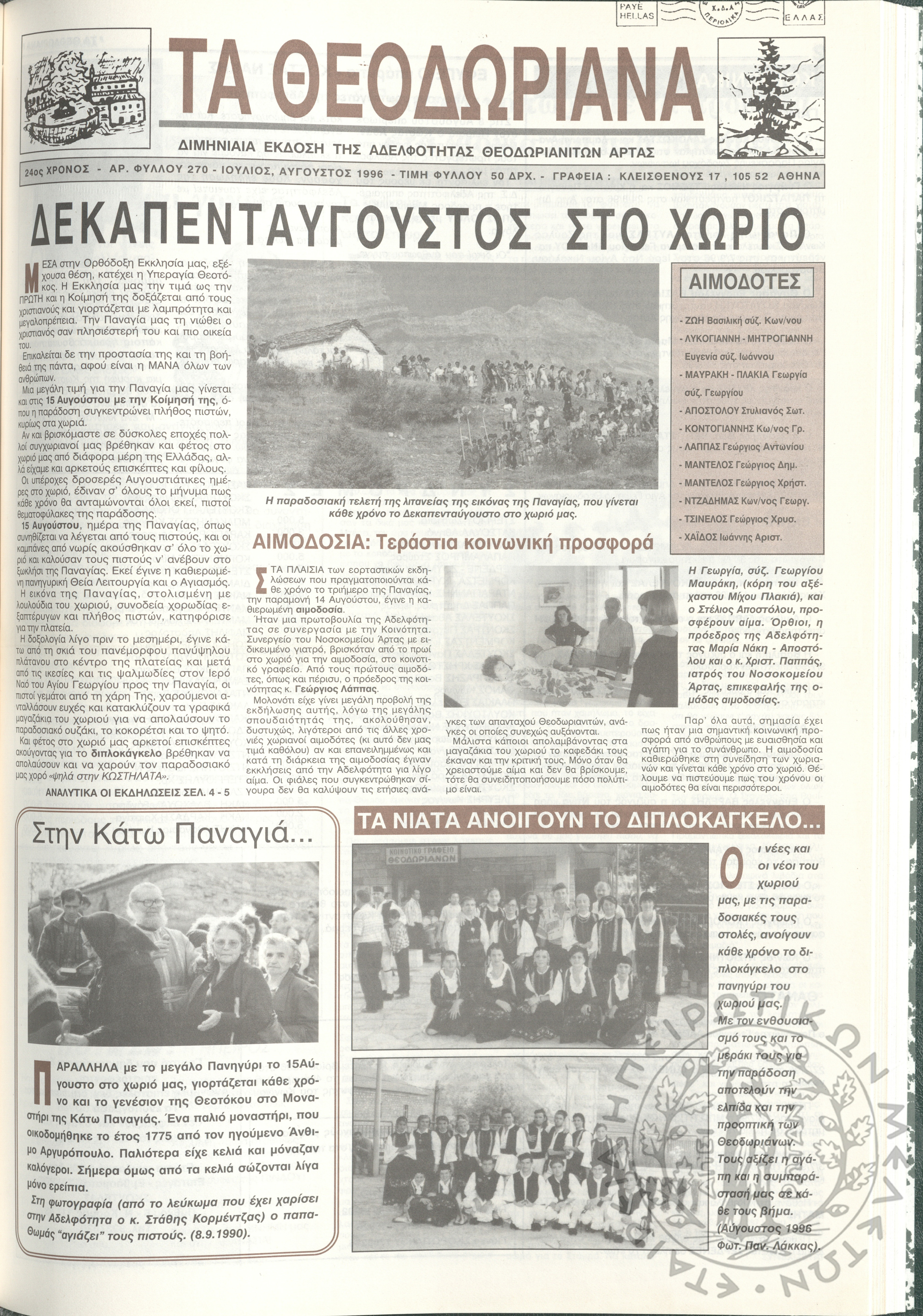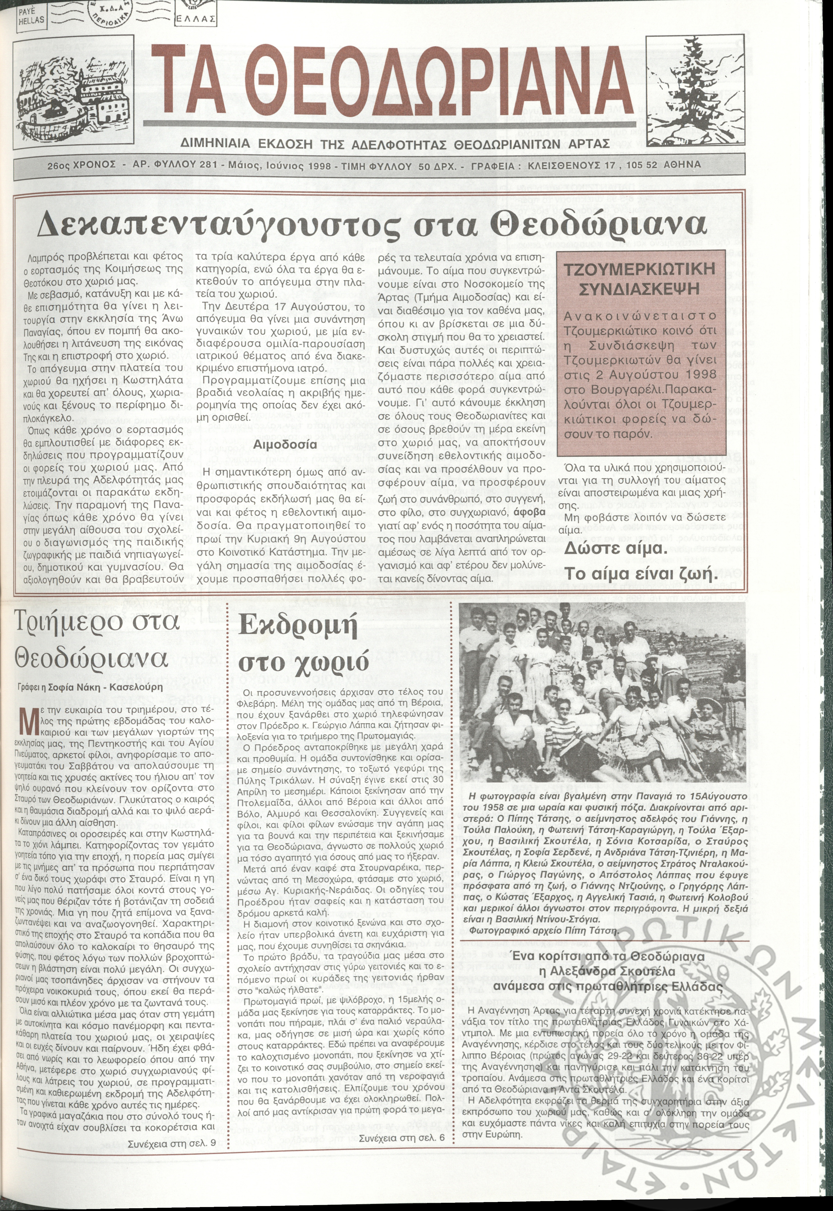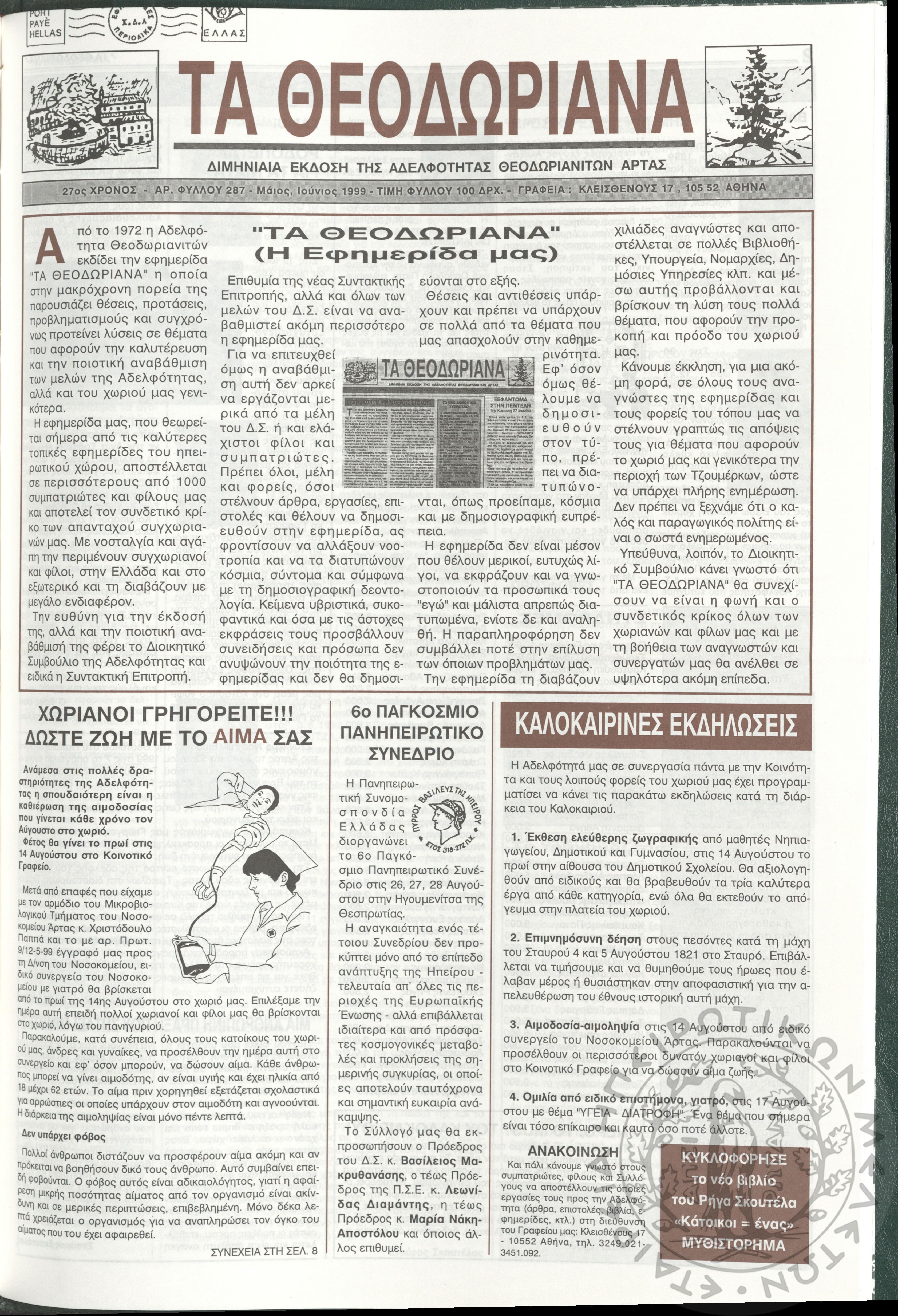 Τα Θεοδώριανα: Μηνιαία έκδοση της αδελφότητας Θεοδωριανιτών Άρτας, 1991, φ. 242-243Έτος 21, φ. 242-243...
