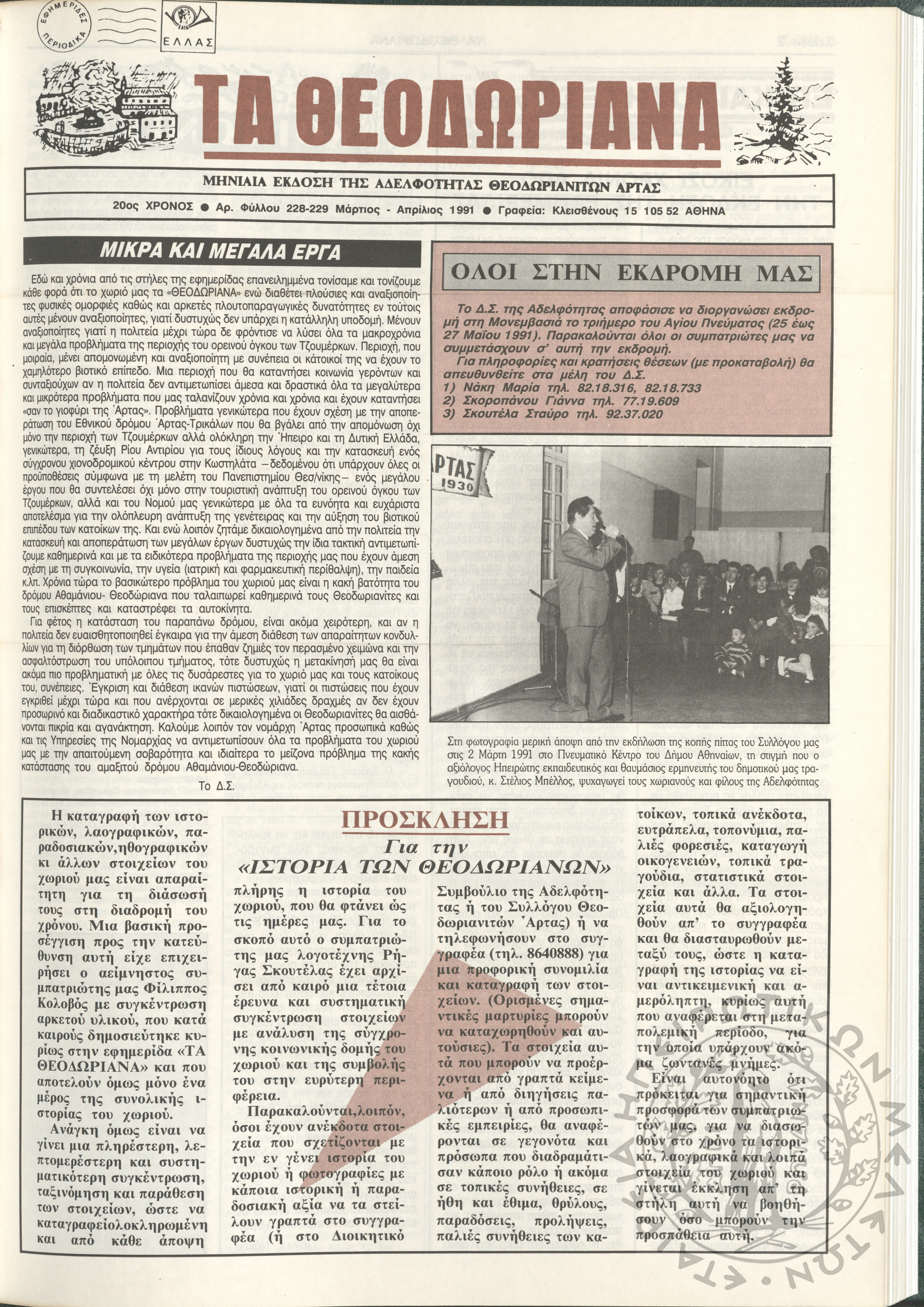 Τα Θεοδώριανα: Μηνιαία έκδοση της αδελφότητας Θεοδωριανιτών Άρτας, 1991, φ. 228-229Έτος 20, φ. 228-229...
