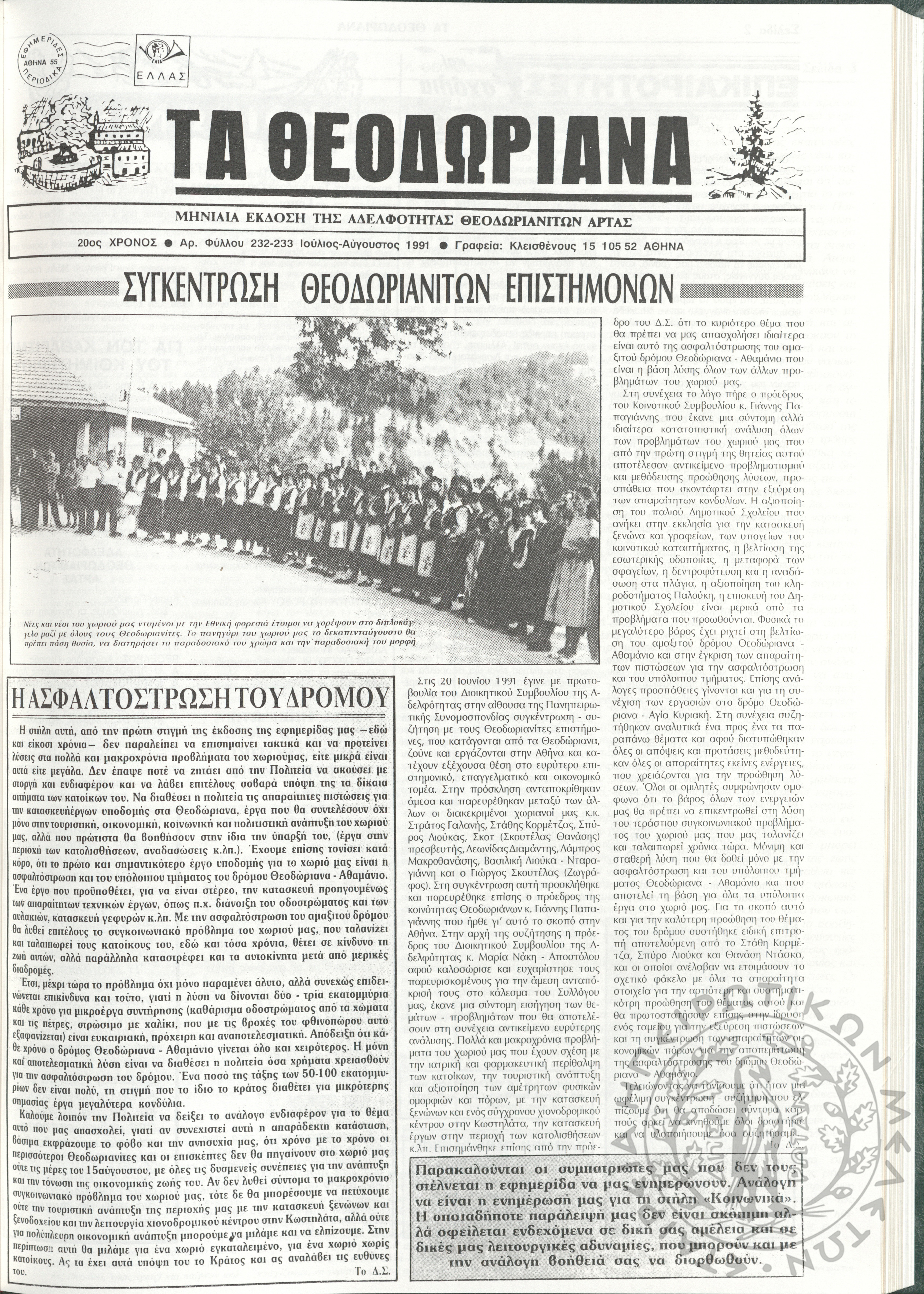 Τα Θεοδώριανα: Διμηνιαία έκδοση της αδελφότητας Θεοδωριανιτών Άρτας, 1991, φ. 232-233Έτος 20, φ. 232-233...