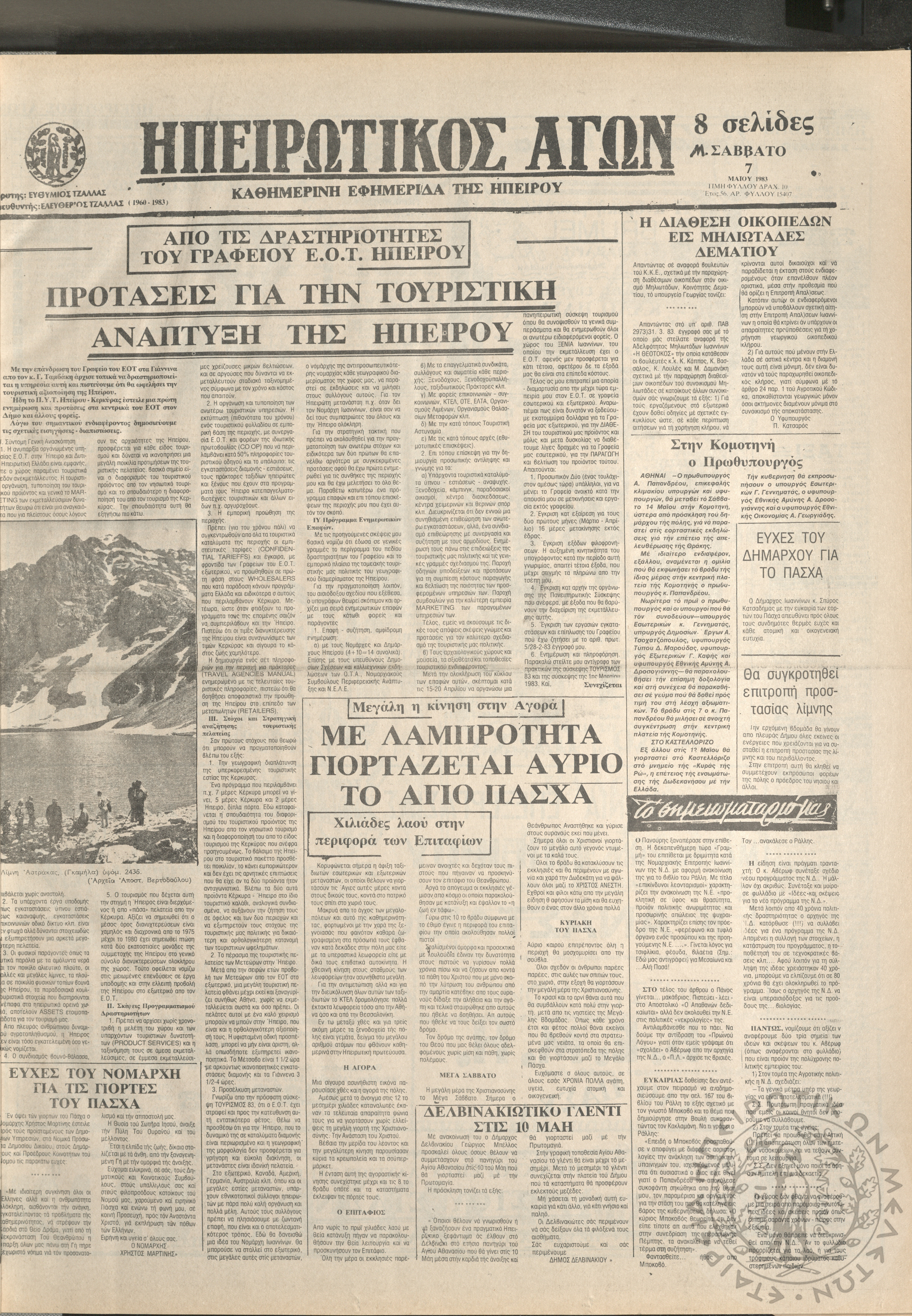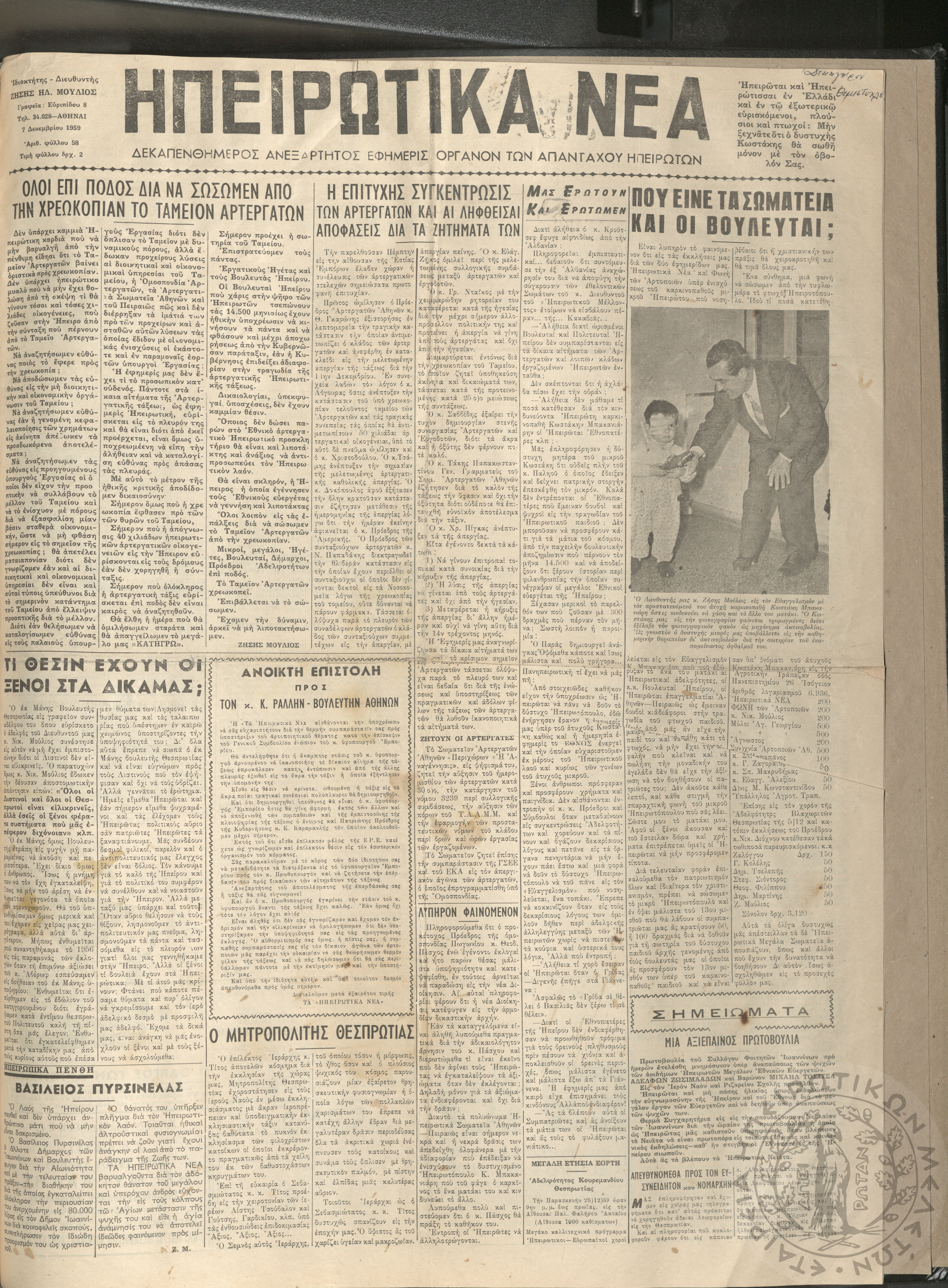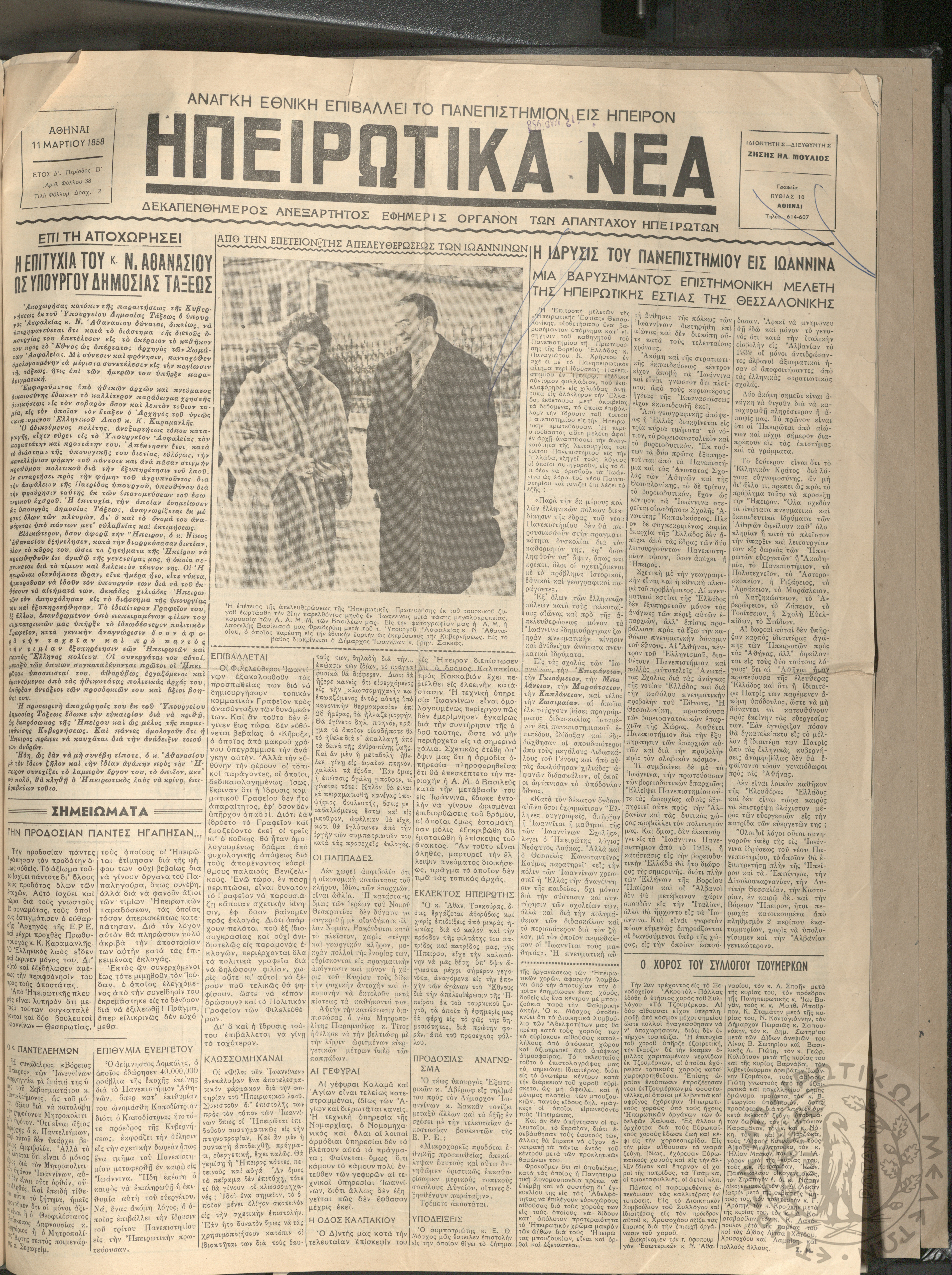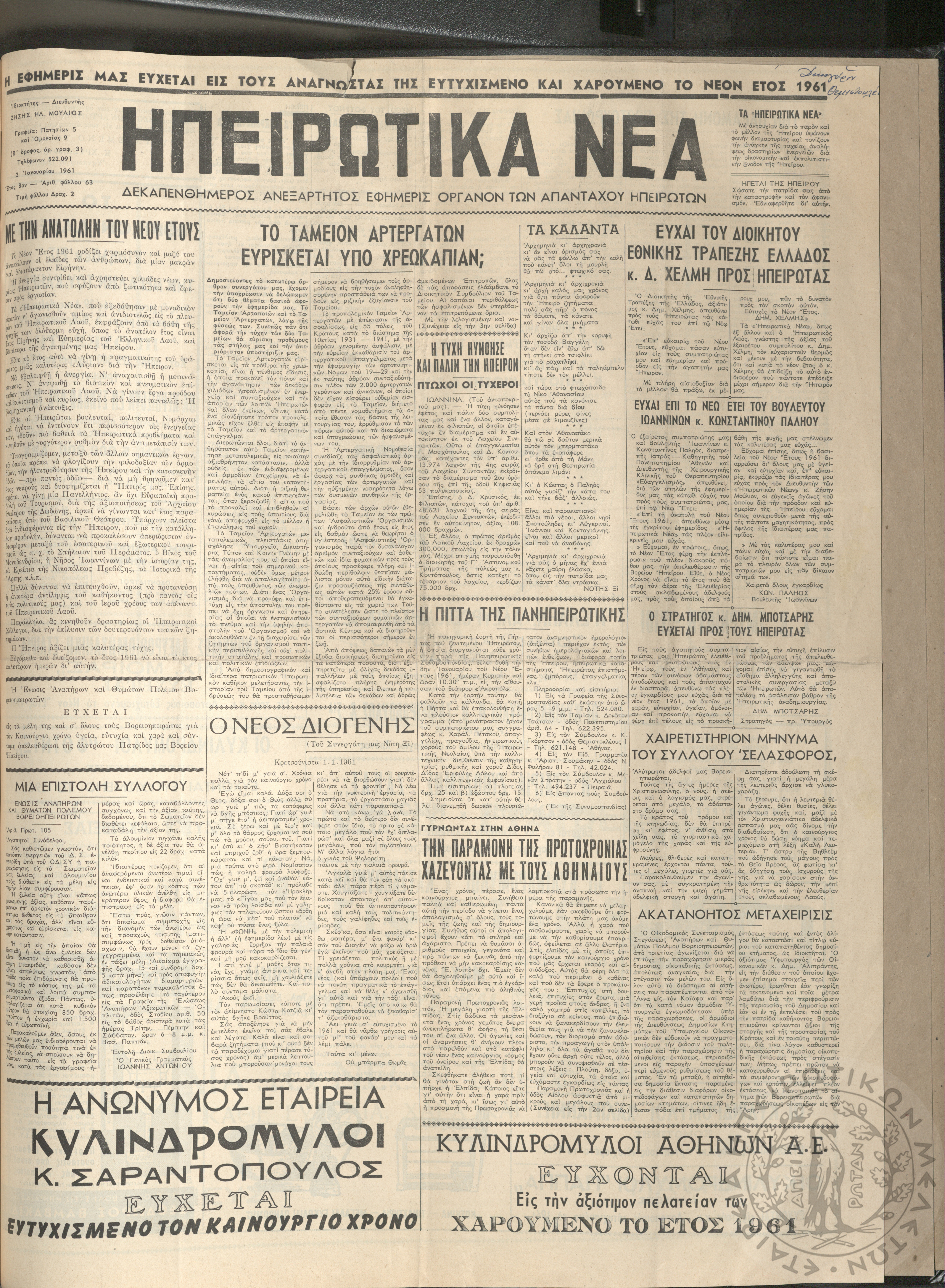Ηπειρωτικά Νέα: Δεκαπενθήμερος ανεξάρτητος εφημερίς, όργανον των απανταχού Ηπειρωτών, 1961, φ. 63Έτος 8, φ. 63...