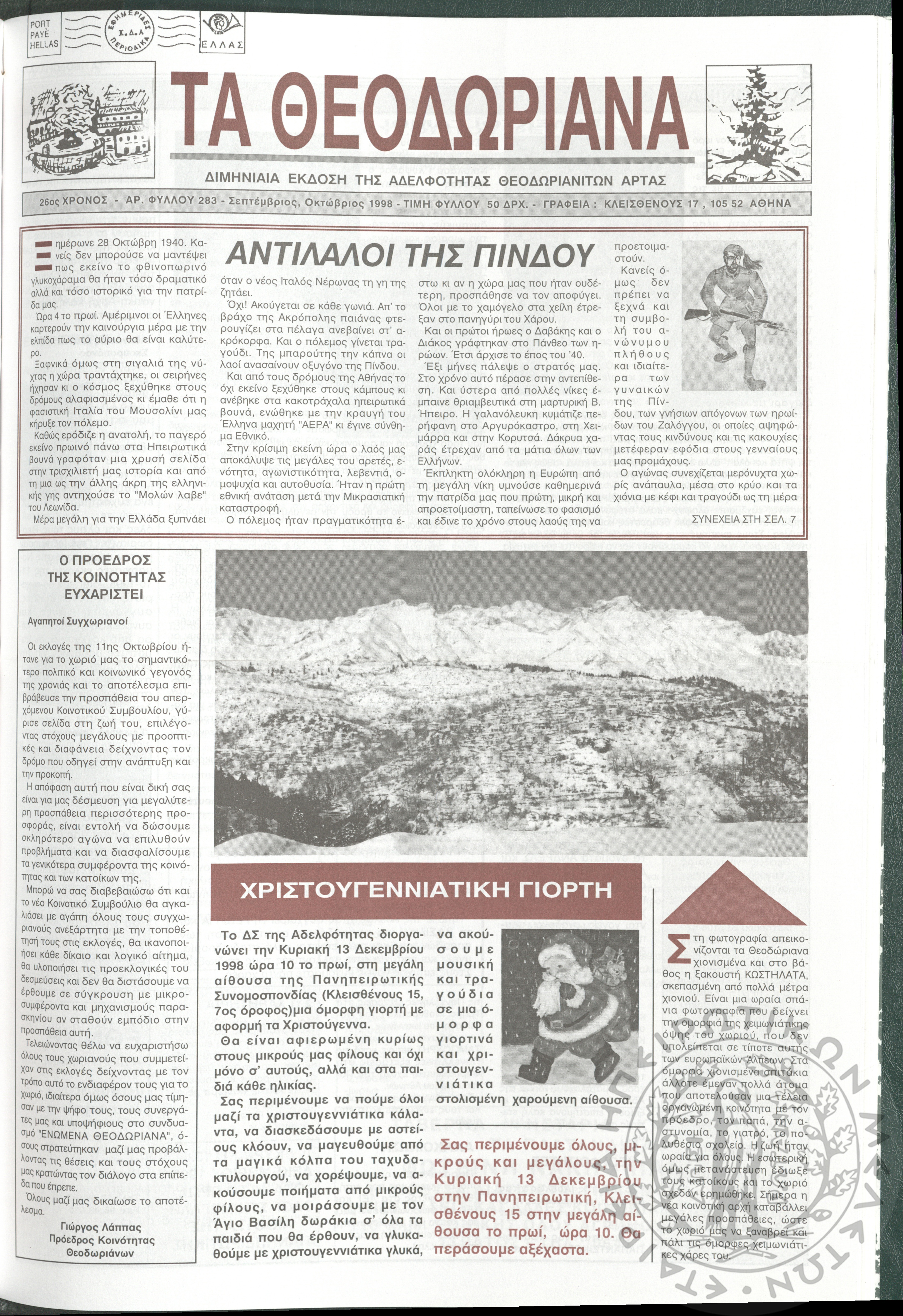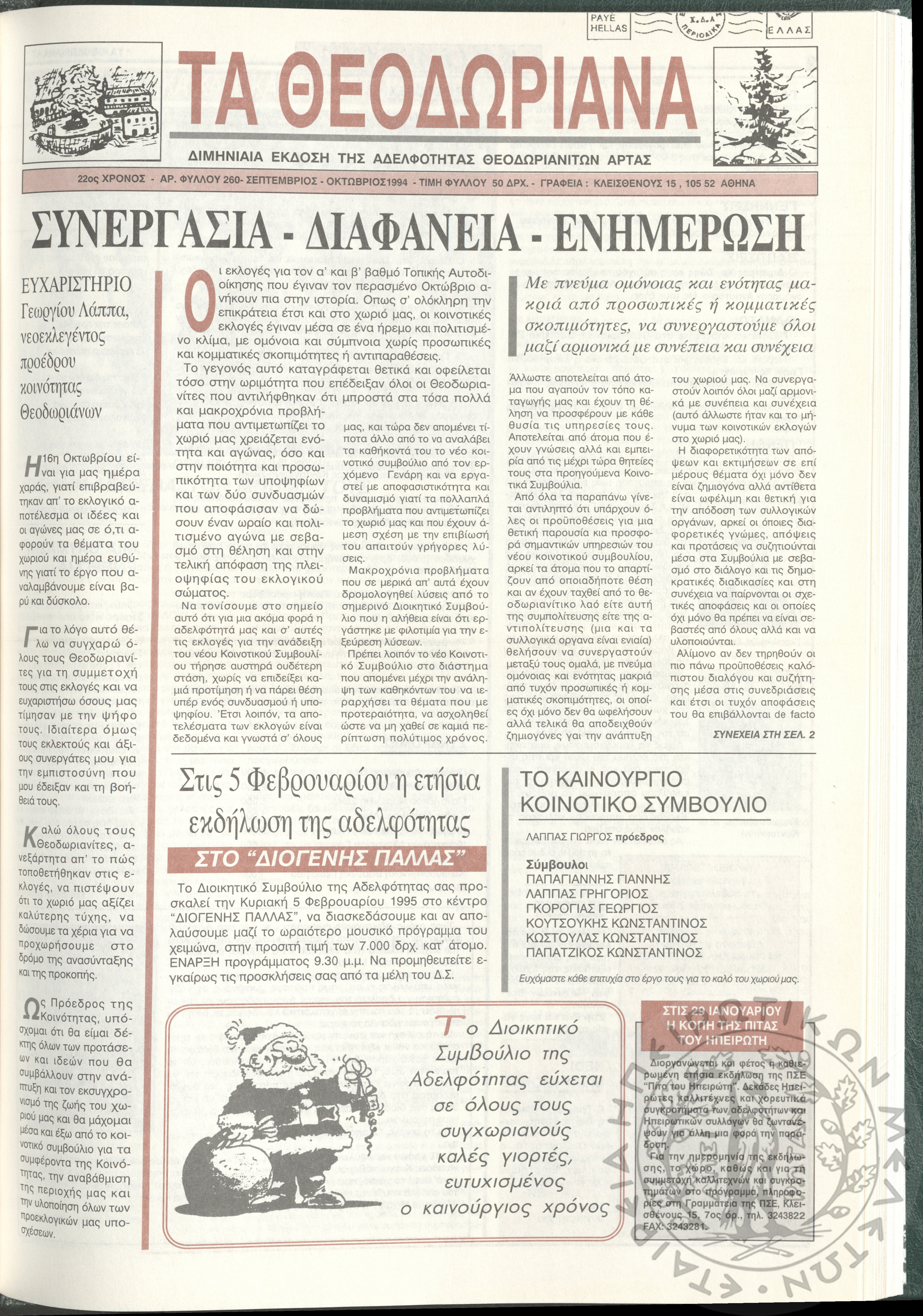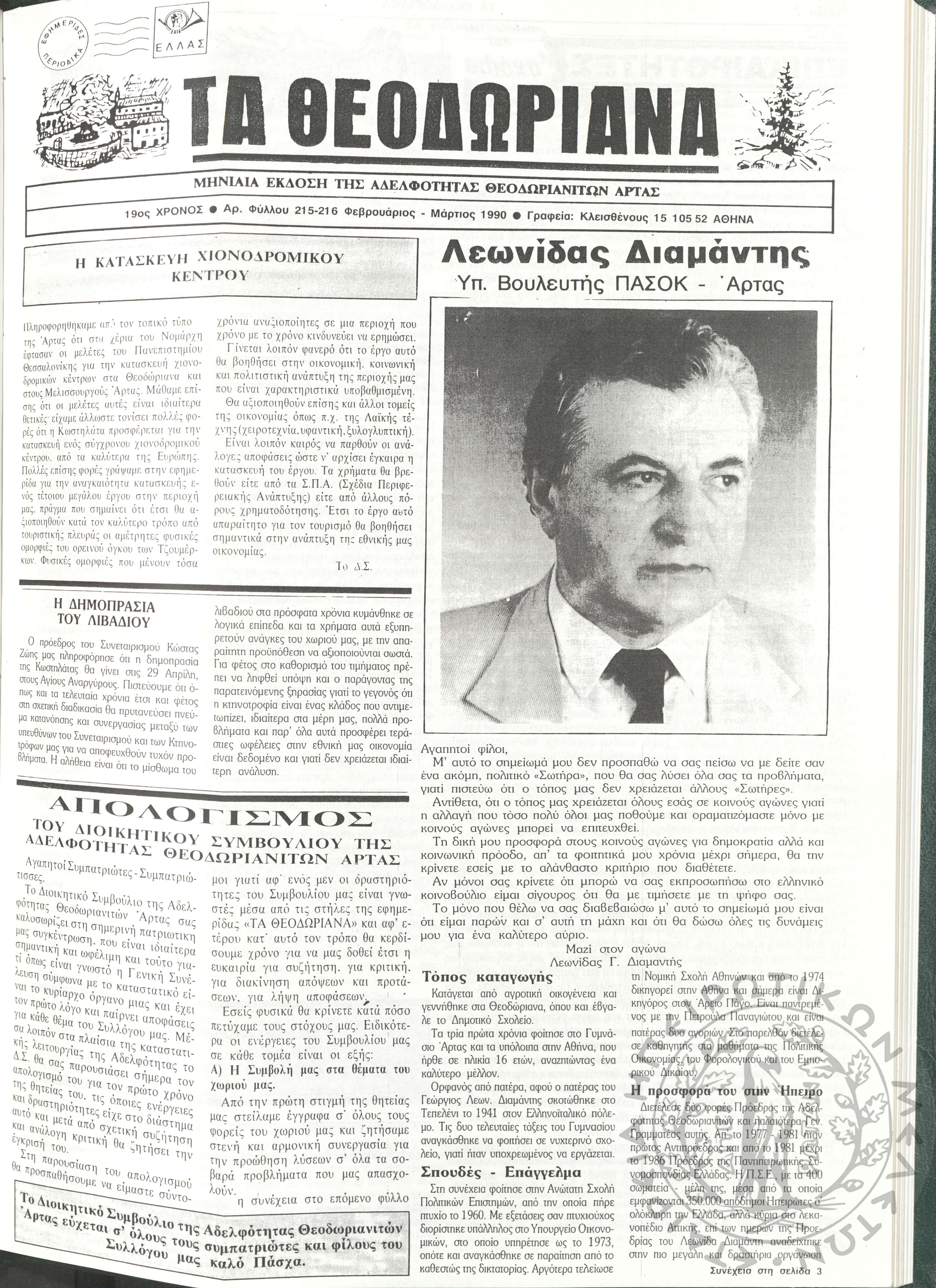 Τα Θεοδώριανα: Διμηνιαία έκδοση της αδελφότητας Θεοδωριανιτών Άρτας, 1990, φ. 215-216Έτος 19, φ. 215-216...