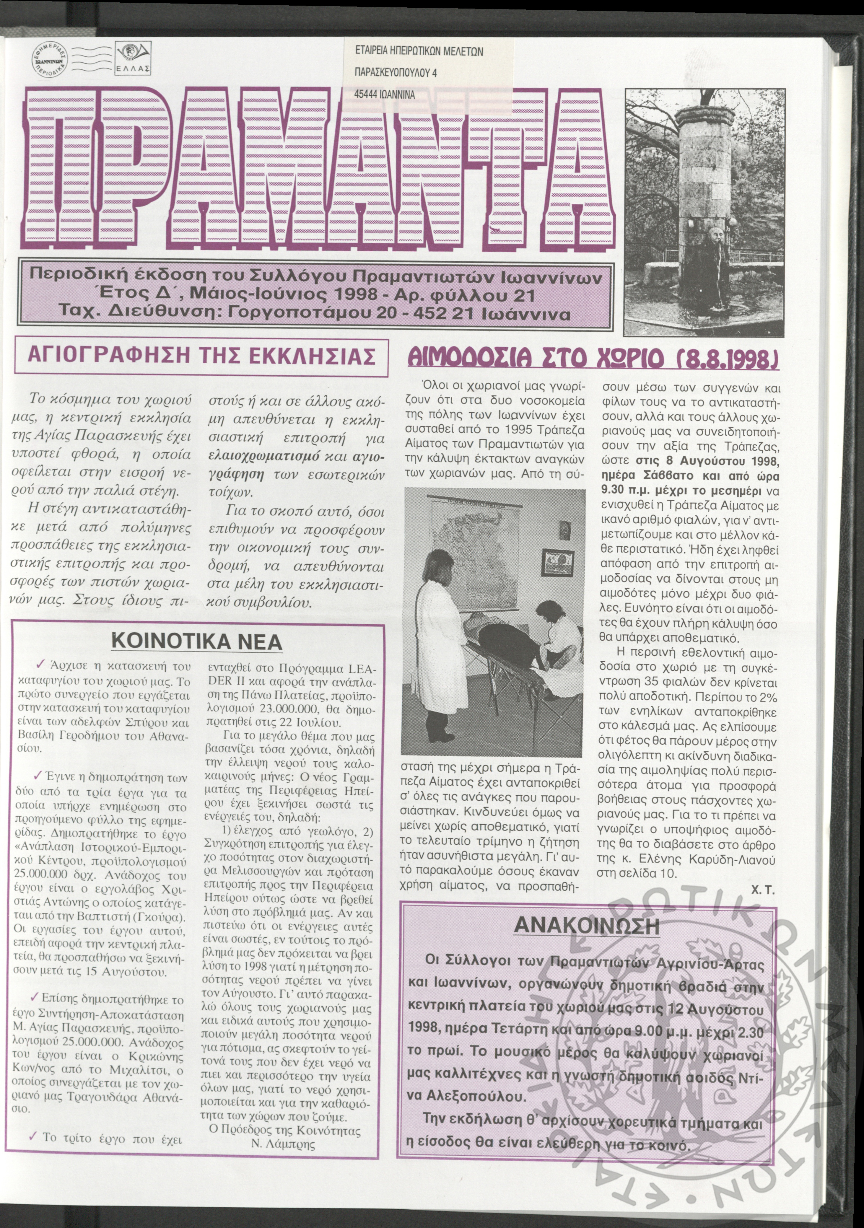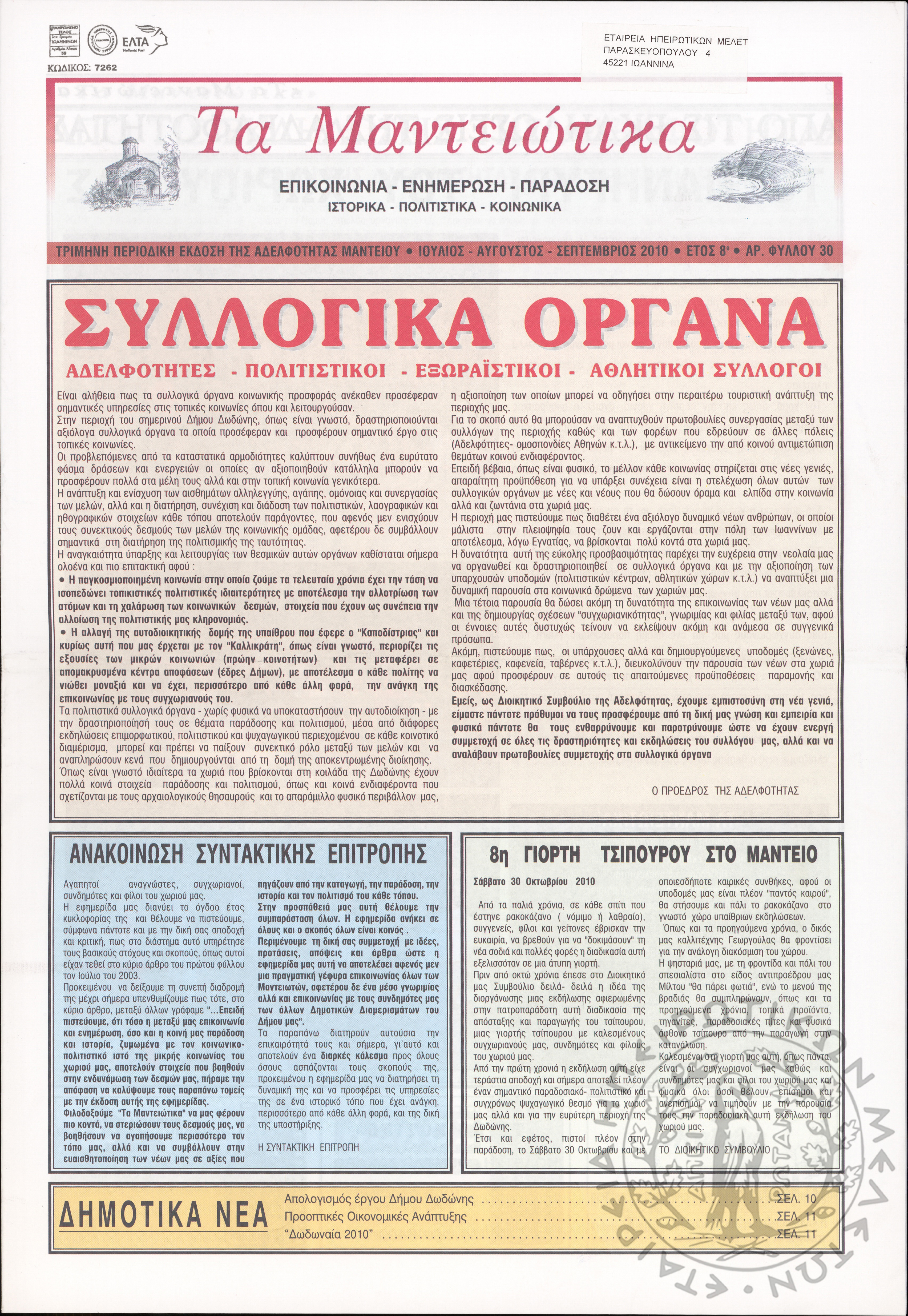 Τα Μαντειώτικα: επικοινωνία-ενημέρωση-παράδοση-ιστορικά-πολιτιστικά-κοινωνικά: τρίμηνη περιοδική έκδοση της Αδελφότητας Μαντείου, 2010, φ. 30Έτος 8ο, αρ. φ. 30...