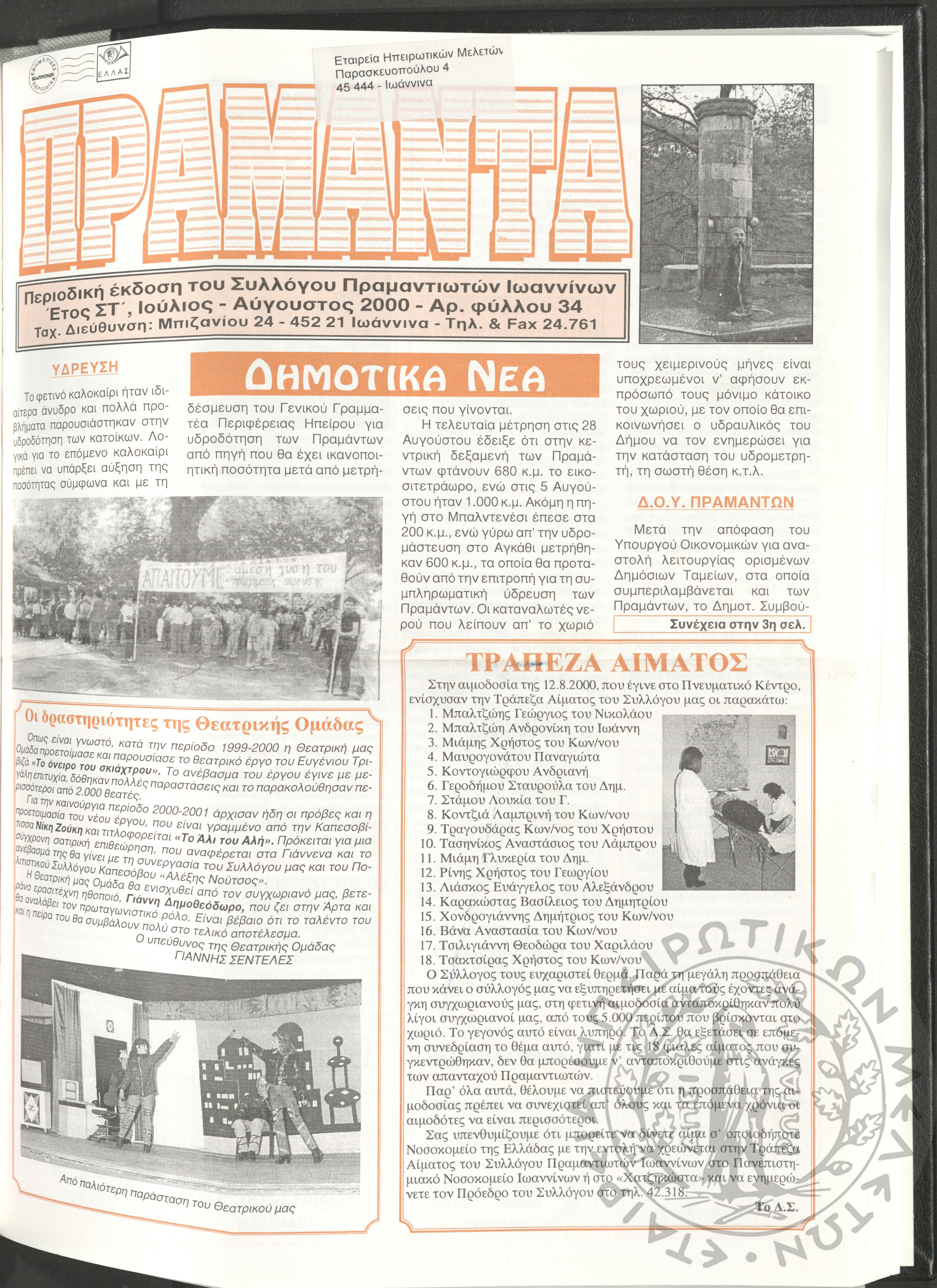 Τα Μαντειώτικα: επικοινωνία-ενημέρωση-παράδοση-ιστορικά-πολιτιστικά-κοινωνικά: τρίμηνη περιοδική έκδοση της Αδελφότητας Μαντείου, 2011, φ. 34Έτος 9ο, αρ. φ. 34...