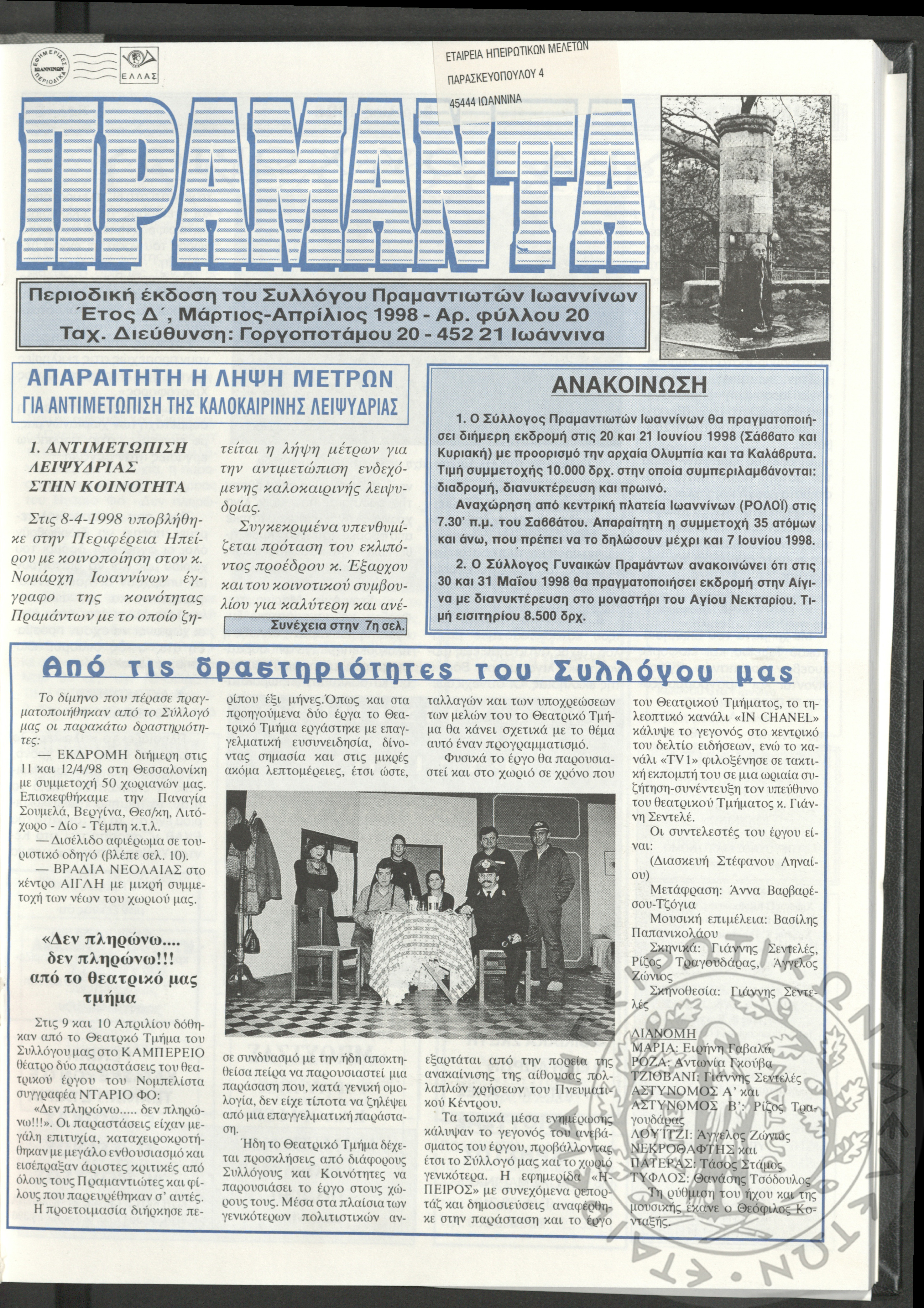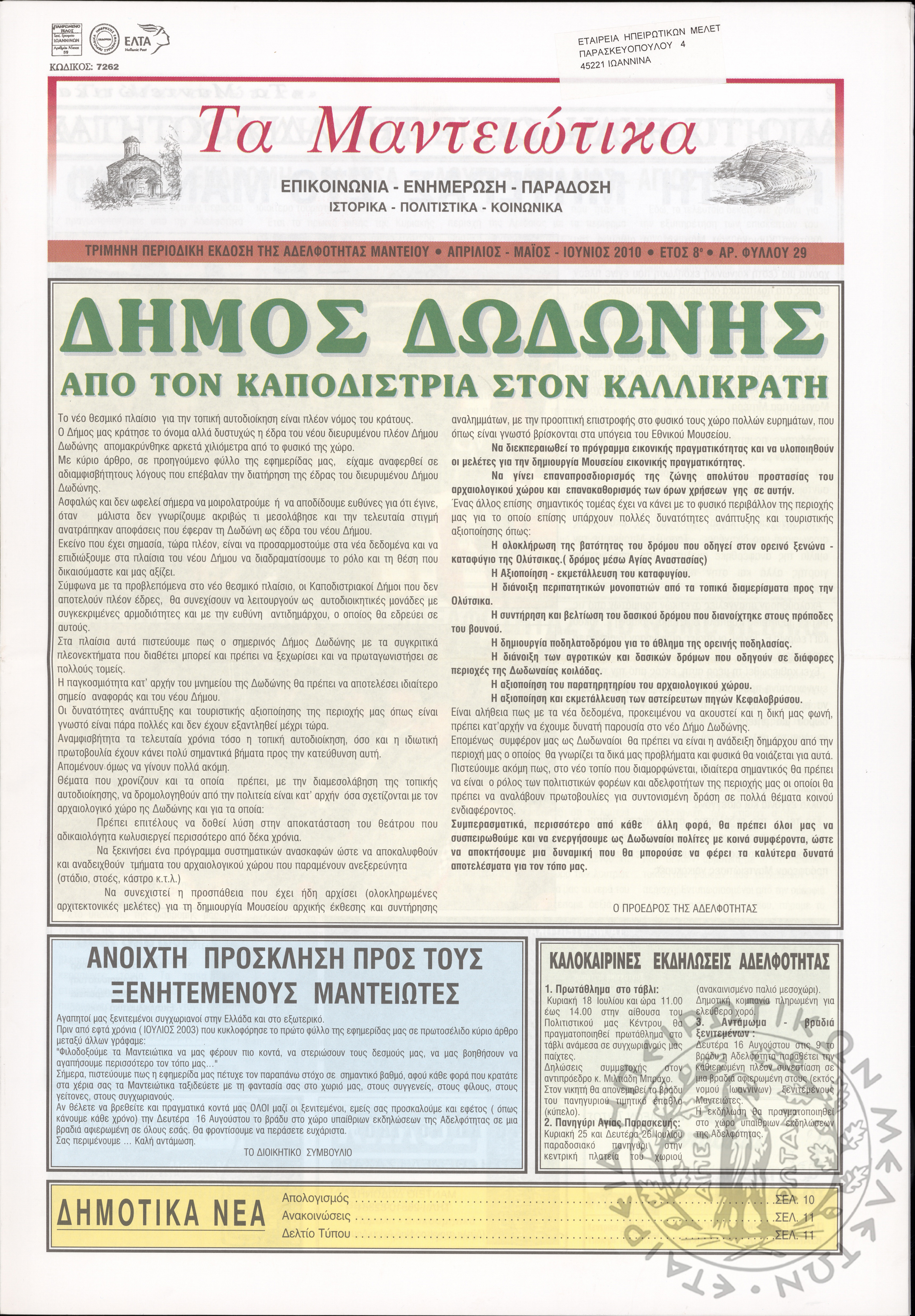 Τα Μαντειώτικα: επικοινωνία-ενημέρωση-παράδοση-ιστορικά-πολιτιστικά-κοινωνικά: τρίμηνη περιοδική έκδοση της Αδελφότητας Μαντείου, 2010, φ. 29Έτος 8ο, αρ. φ. 29...