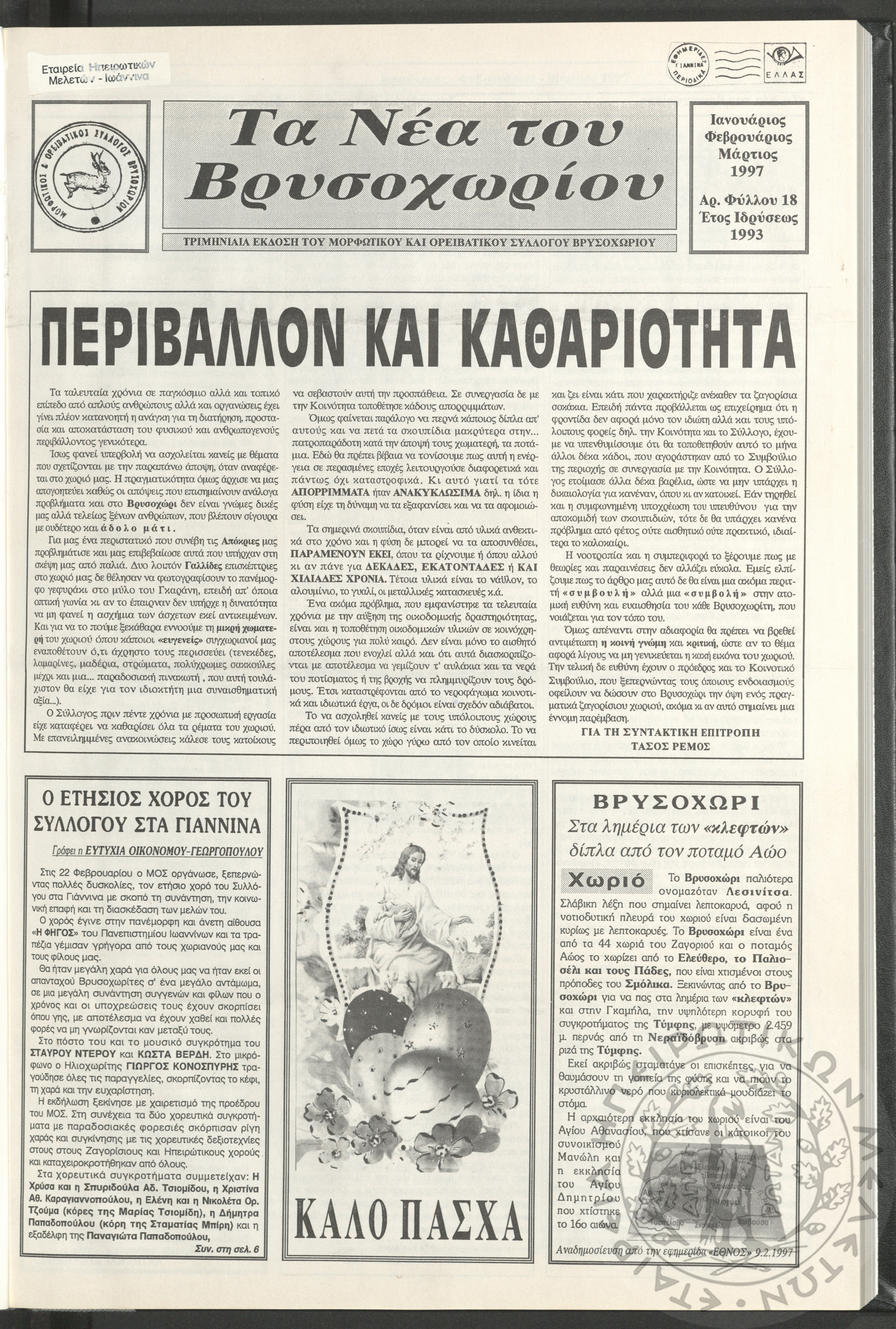 Τα Νέα του Βρυσοχωρίου: τριμηνιαία περιοδική έκδοση του Μορφωτικού και Ορειβατικού Συλλόγου Βρυσοχωρίου (τεύχ. 18)...