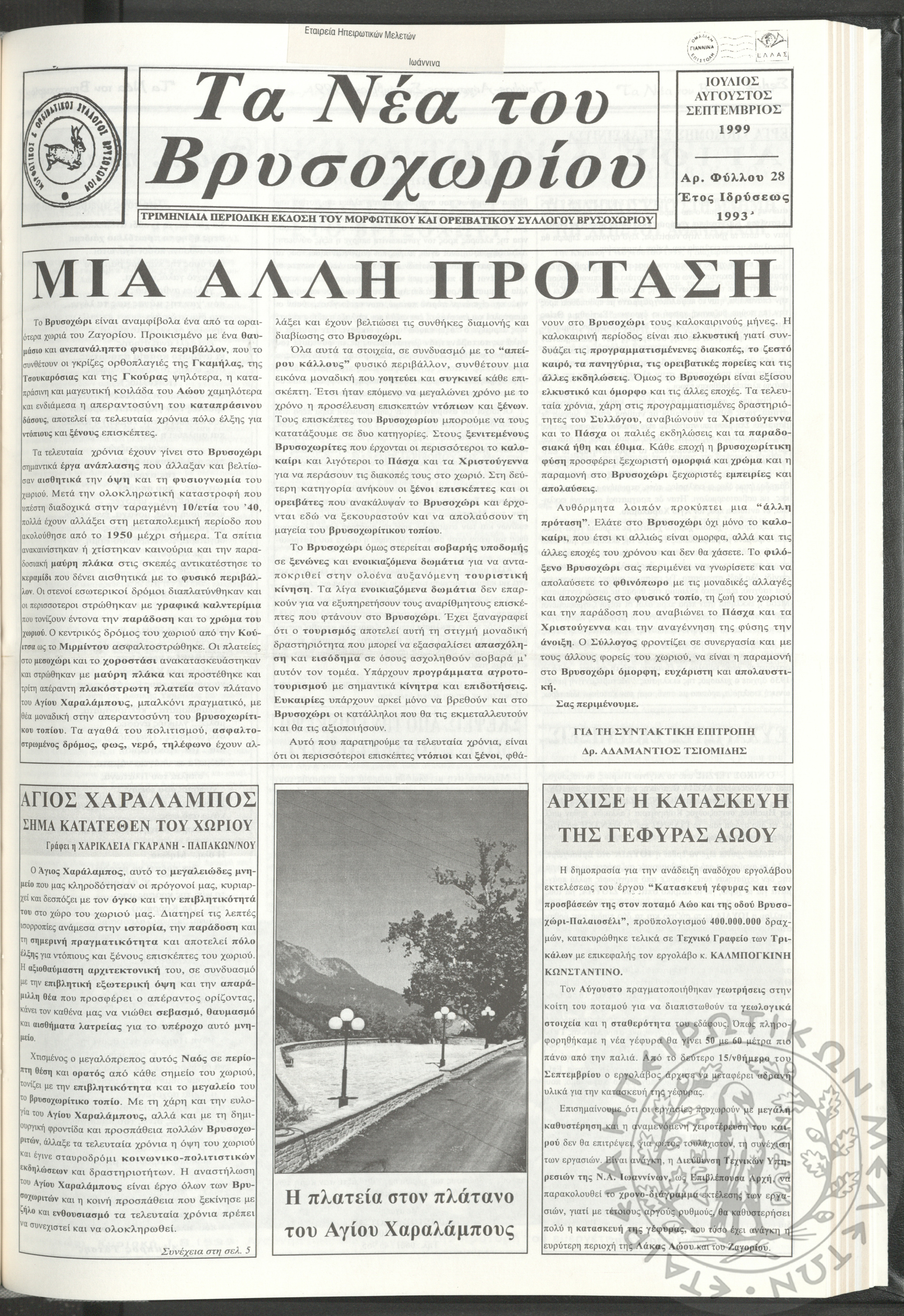 Τα Νέα του Βρυσοχωρίου: τριμηνιαία περιοδική έκδοση του Μορφωτικού και Ορειβατικού Συλλόγου Βρυσοχωρίου, 1999, φ. 28...
