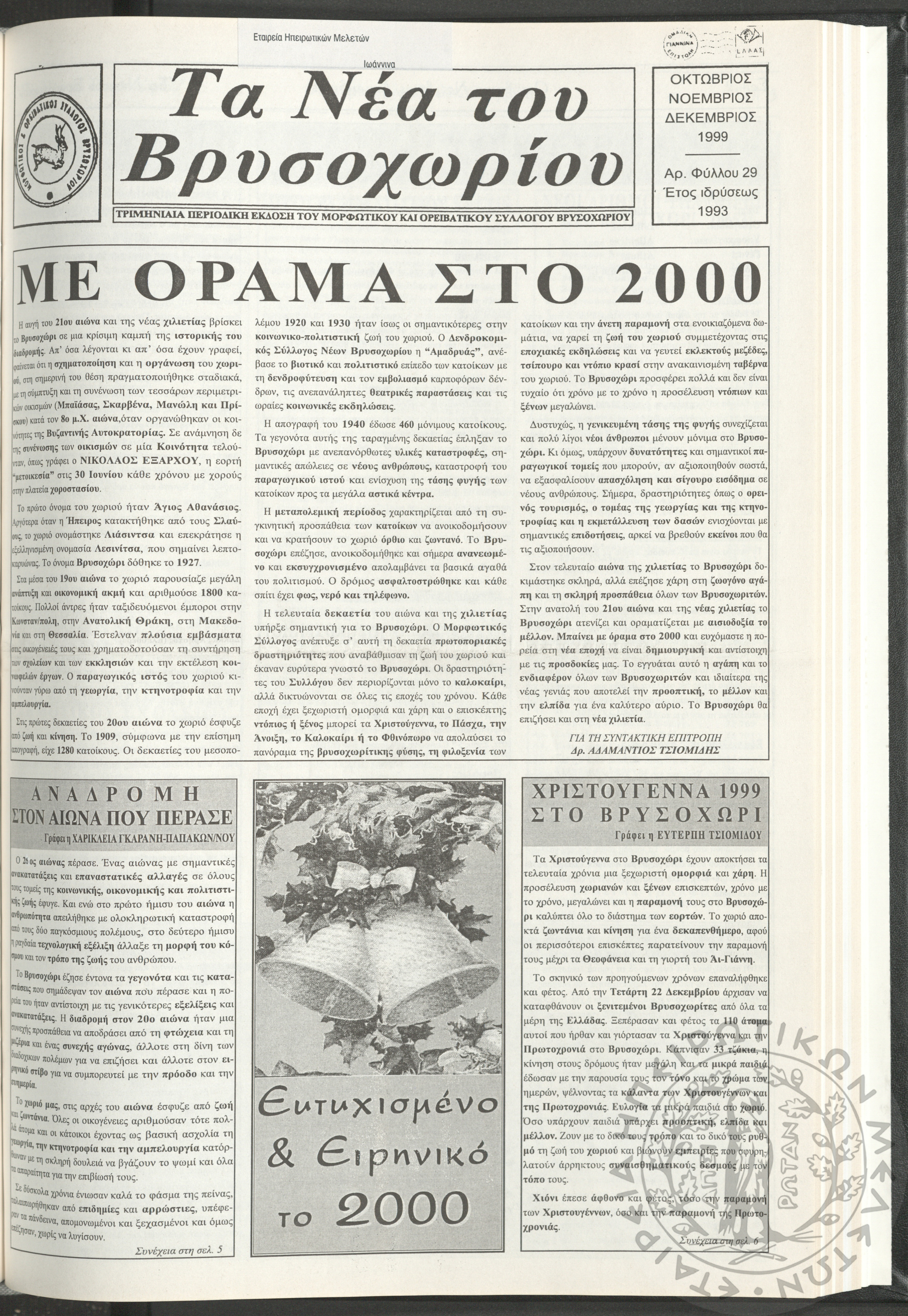 Τα Νέα του Βρυσοχωρίου: τριμηνιαία περιοδική έκδοση του Μορφωτικού και Ορειβατικού Συλλόγου Βρυσοχωρίου, 1999, φ. 29...
