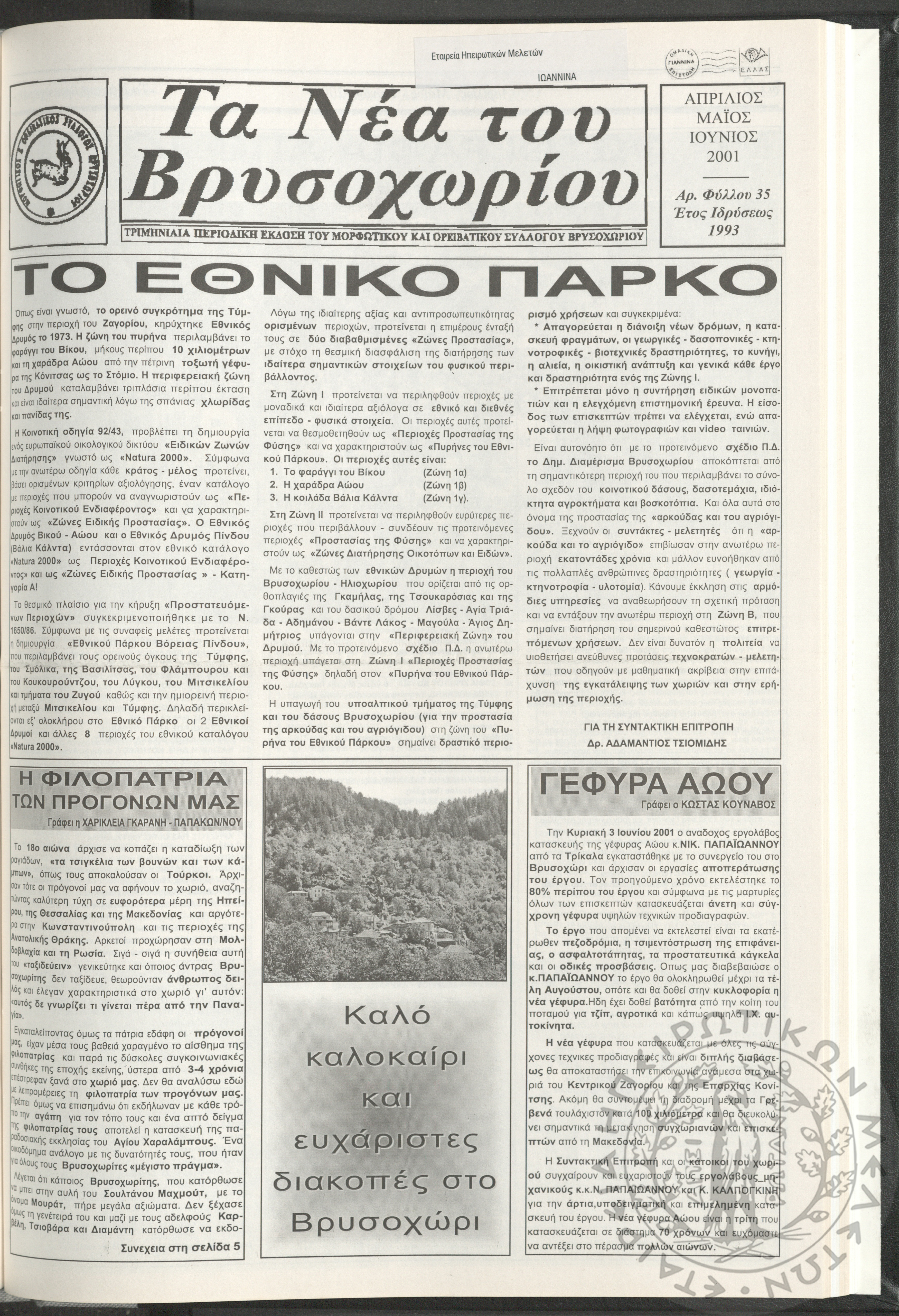 Τα Νέα του Βρυσοχωρίου: τριμηνιαία περιοδική έκδοση του Μορφωτικού και Ορειβατικού Συλλόγου Βρυσοχωρίου, 2001, φ. 35...
