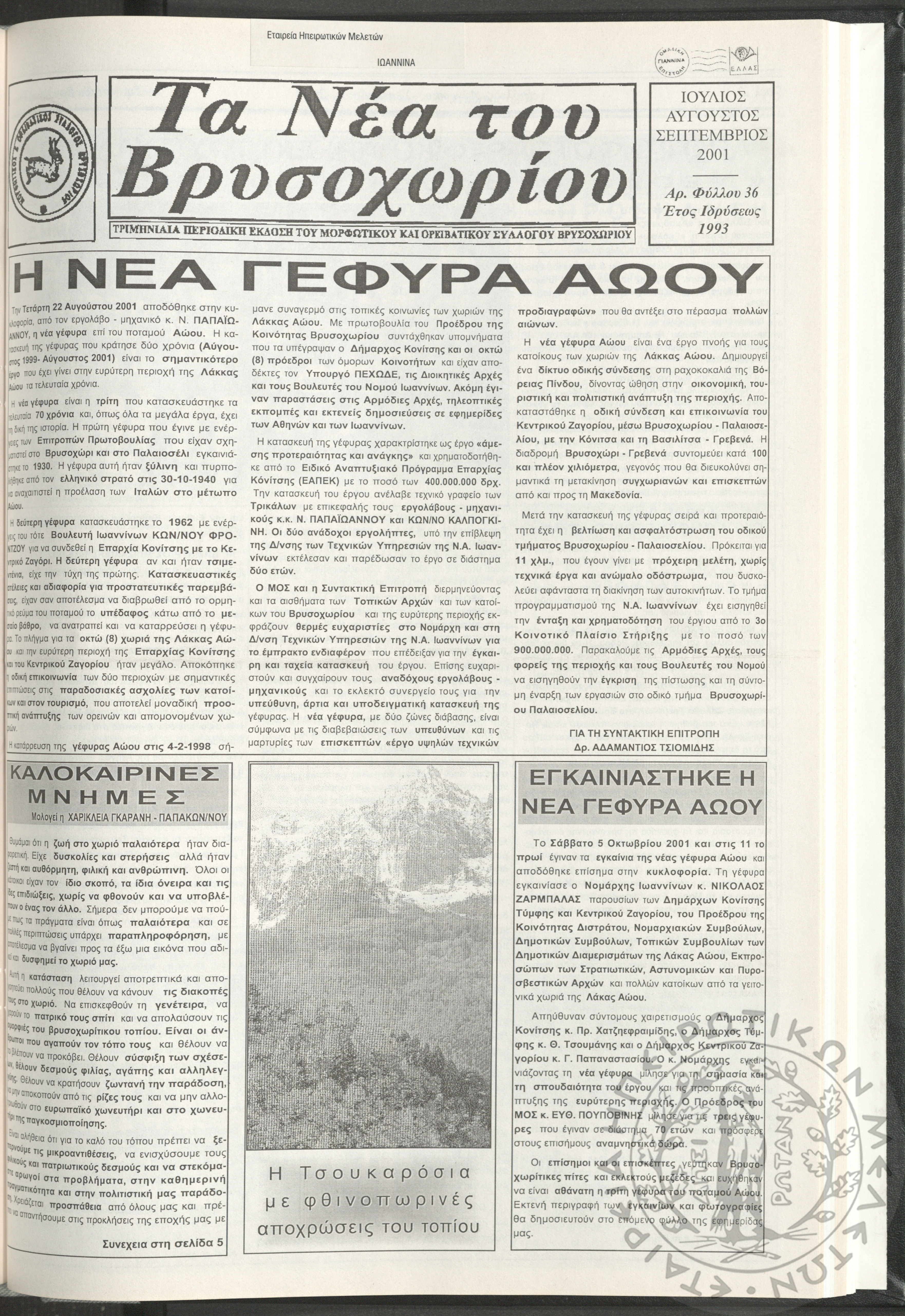 Τα Νέα του Βρυσοχωρίου: τριμηνιαία περιοδική έκδοση του Μορφωτικού και Ορειβατικού Συλλόγου Βρυσοχωρίου, 2001, φ. 36...