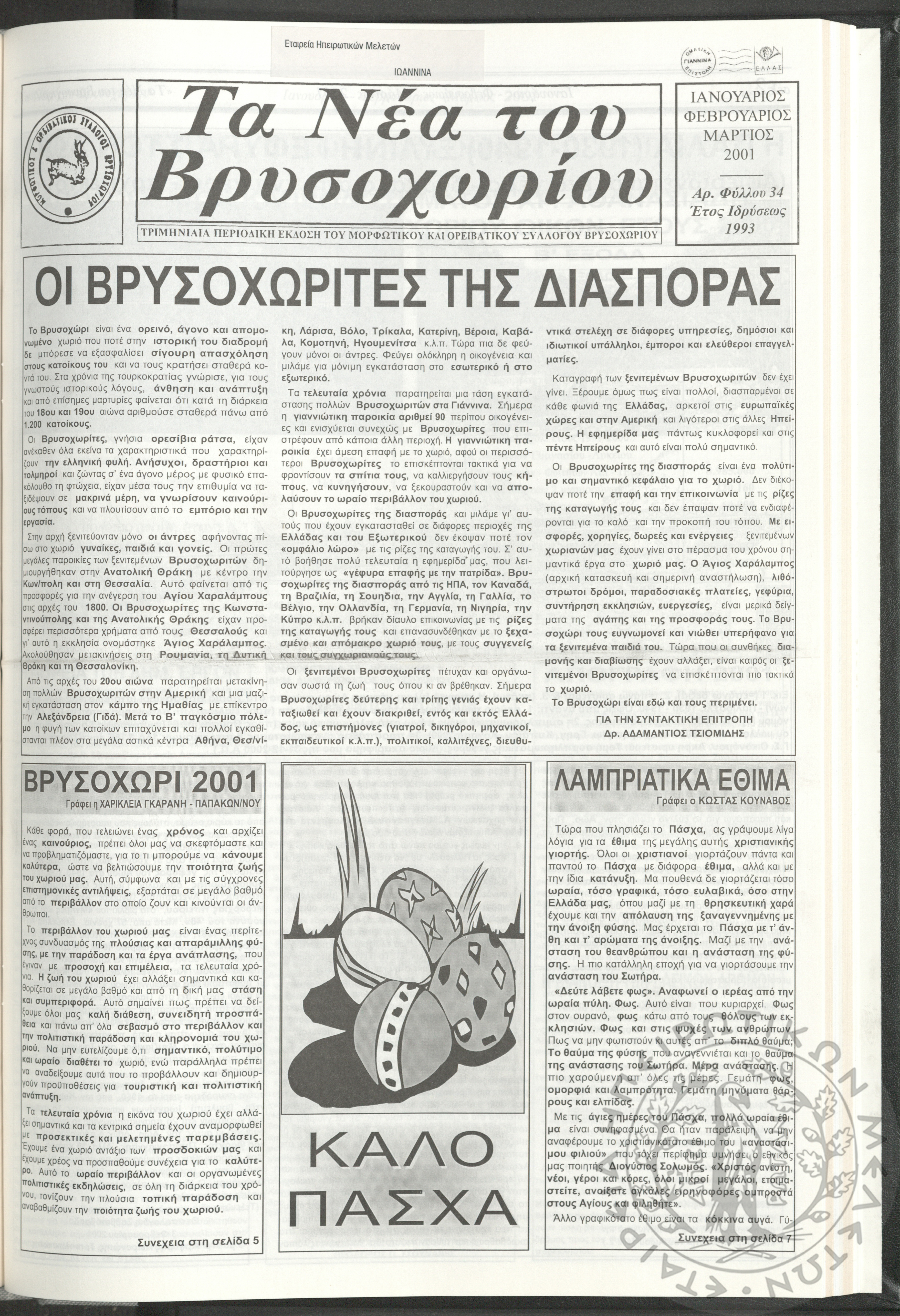 Τα Νέα του Βρυσοχωρίου: τριμηνιαία περιοδική έκδοση του Μορφωτικού και Ορειβατικού Συλλόγου Βρυσοχωρίου, 2001, φ. 34...
