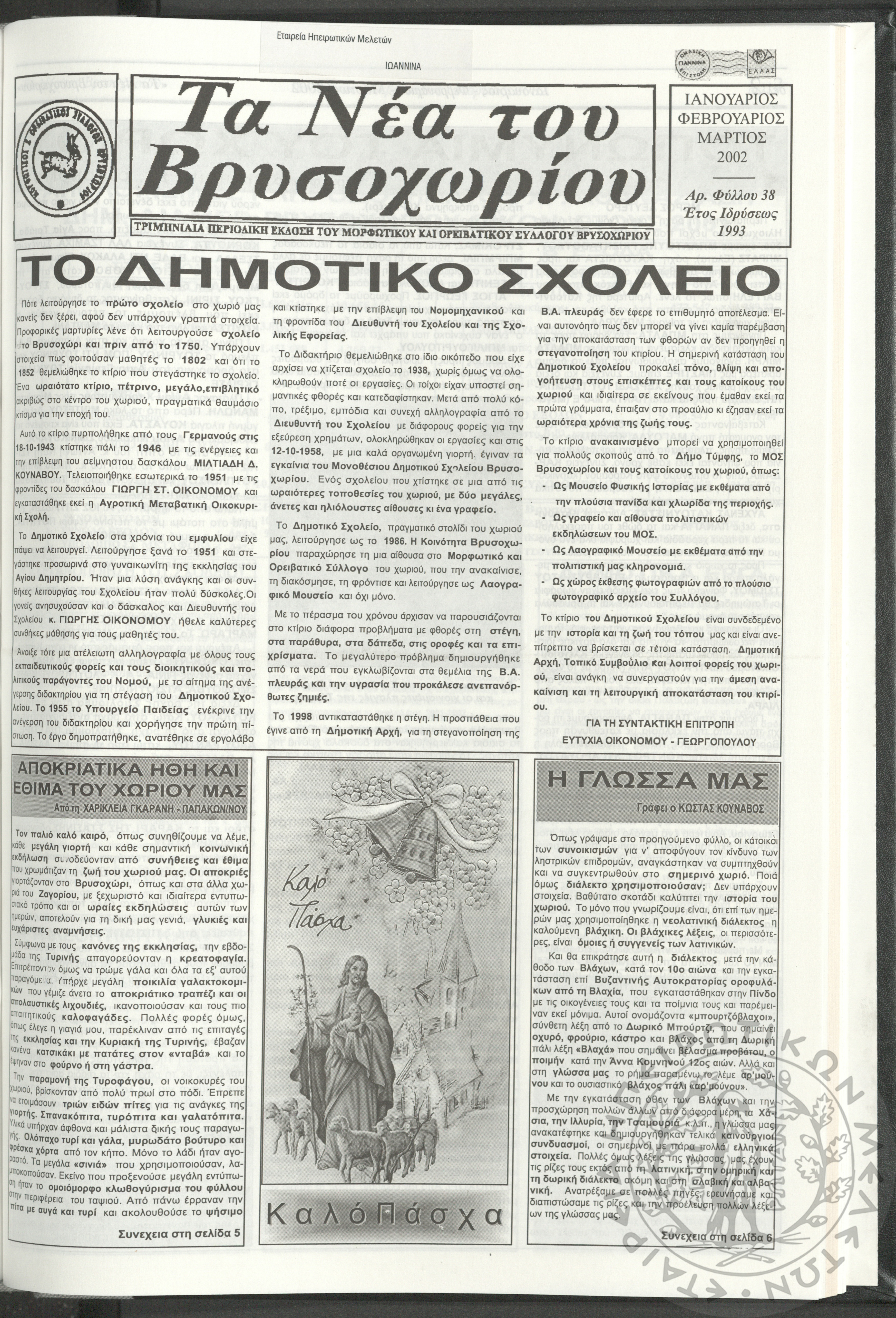 Τα Νέα του Βρυσοχωρίου: τριμηνιαία περιοδική έκδοση του Μορφωτικού και Ορειβατικού Συλλόγου Βρυσοχωρίου, 2002, φ. 38...