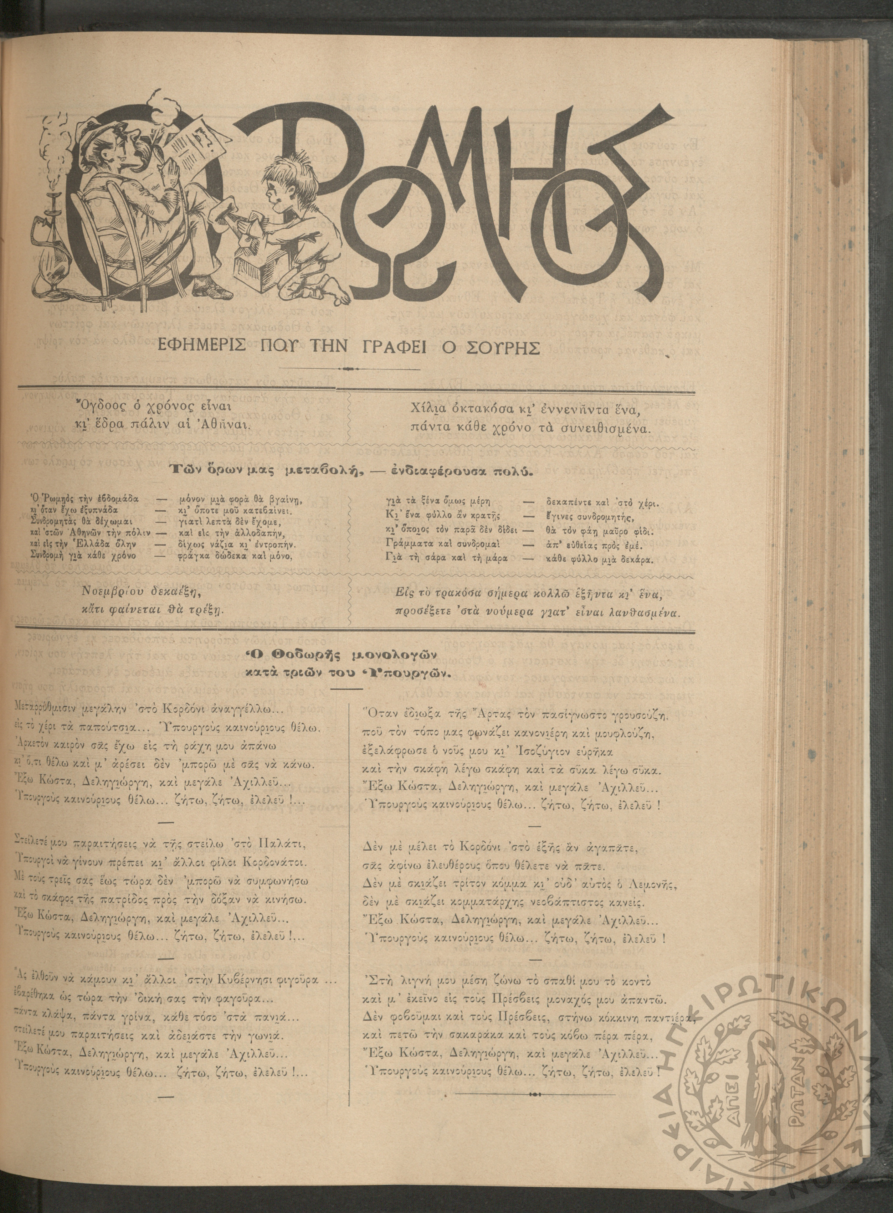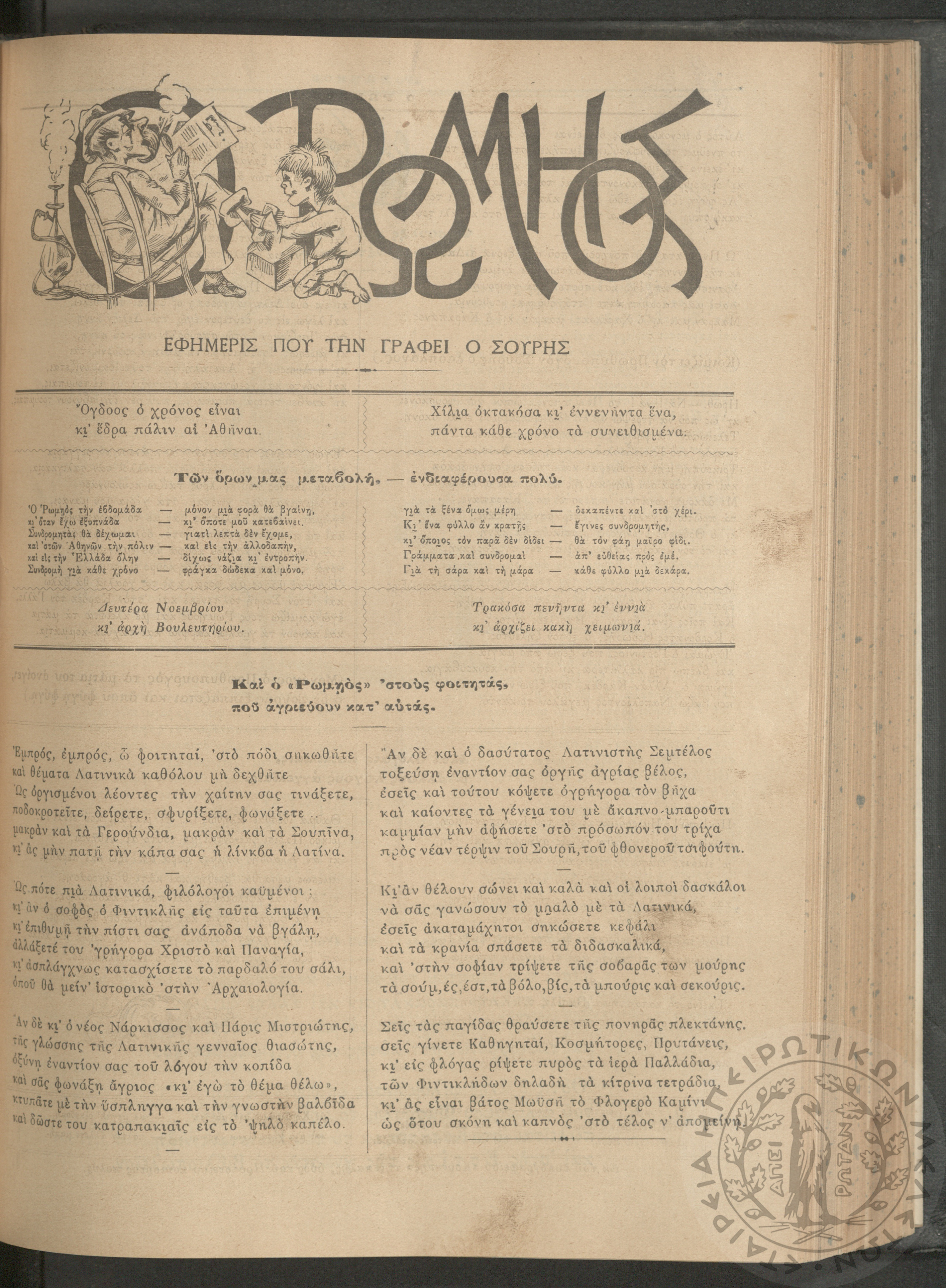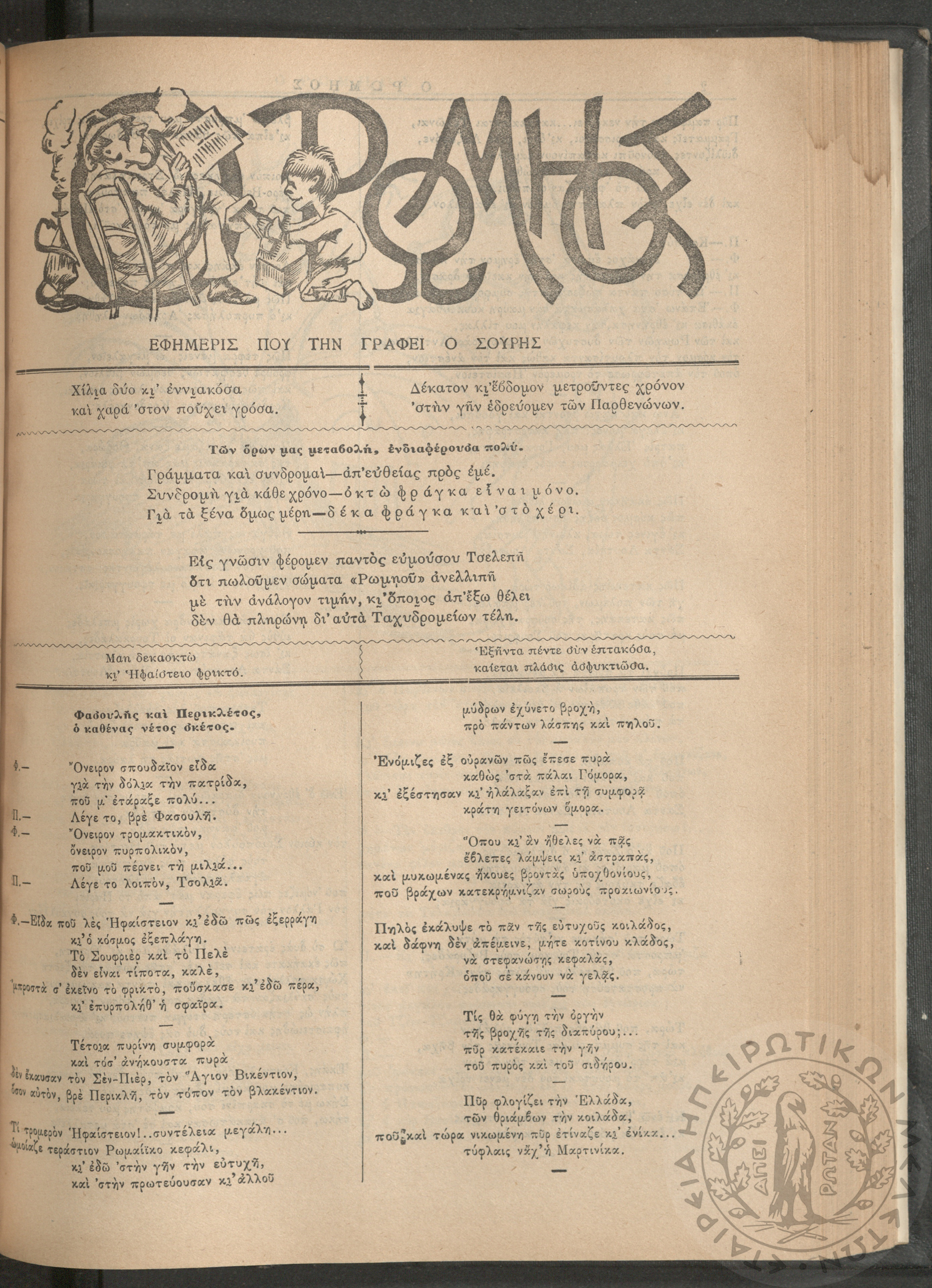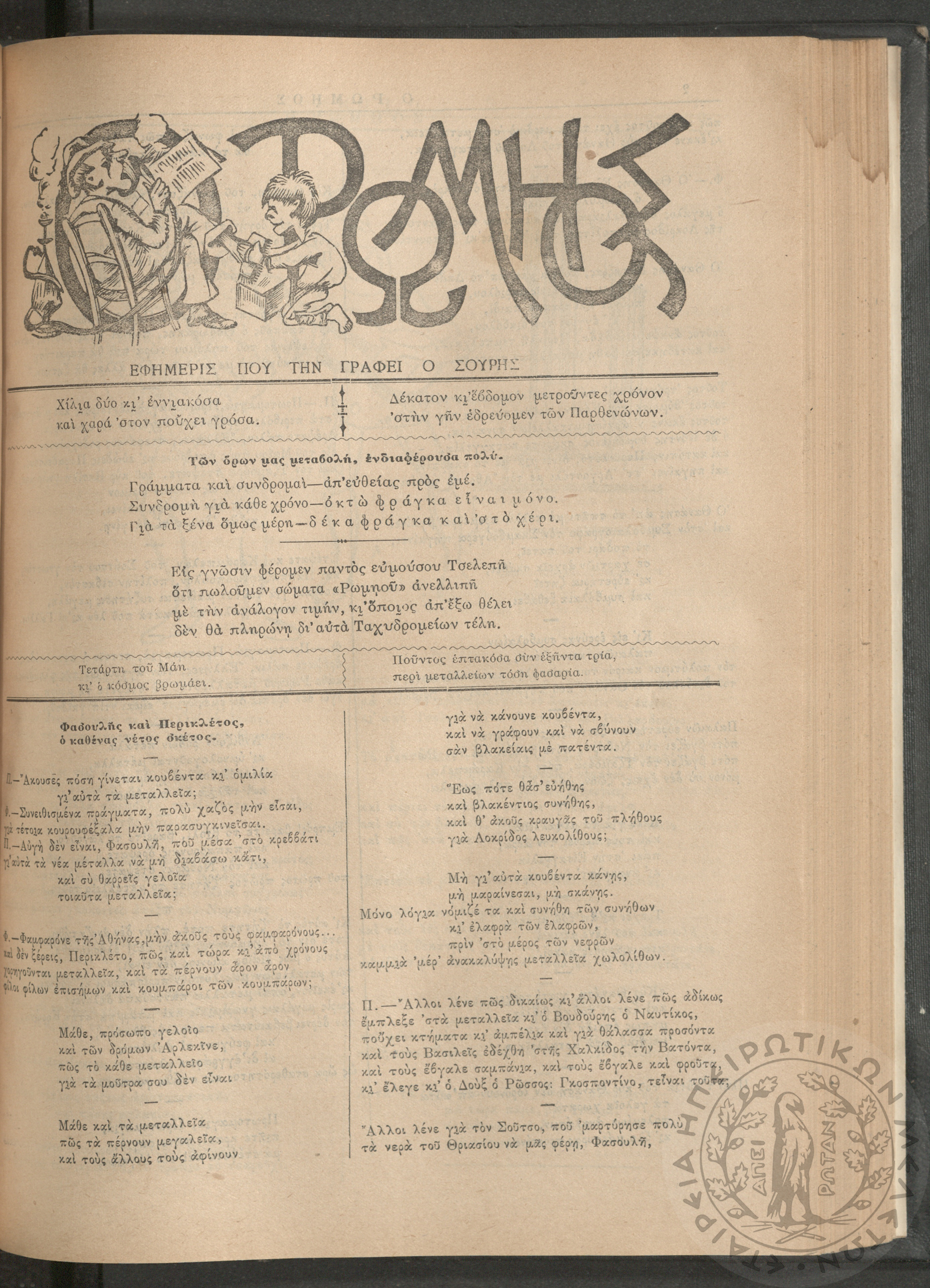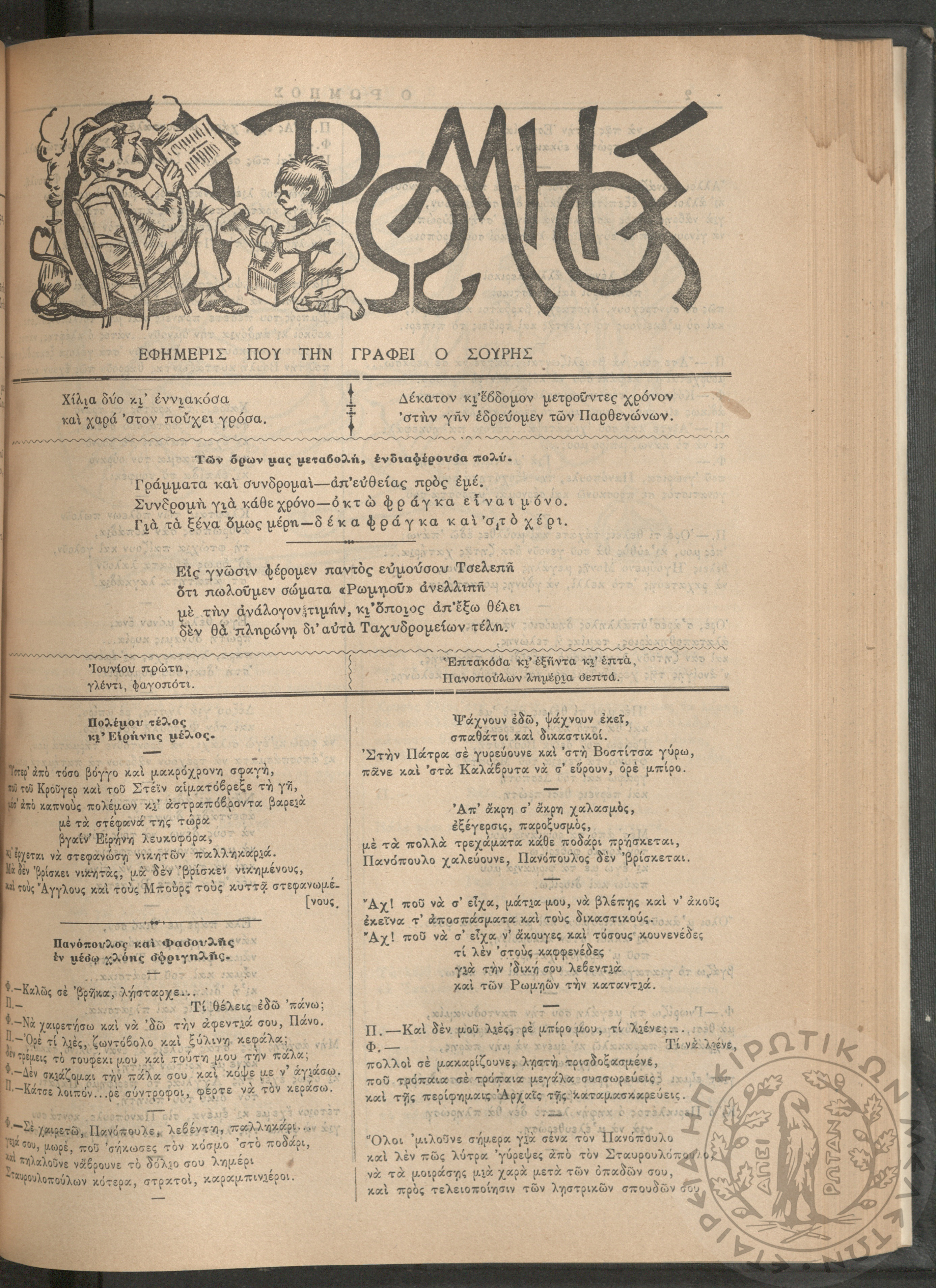 Ο Ρωμηός: Εφημερίς που την γράφει ο Σουρής, 1905, φ. 875