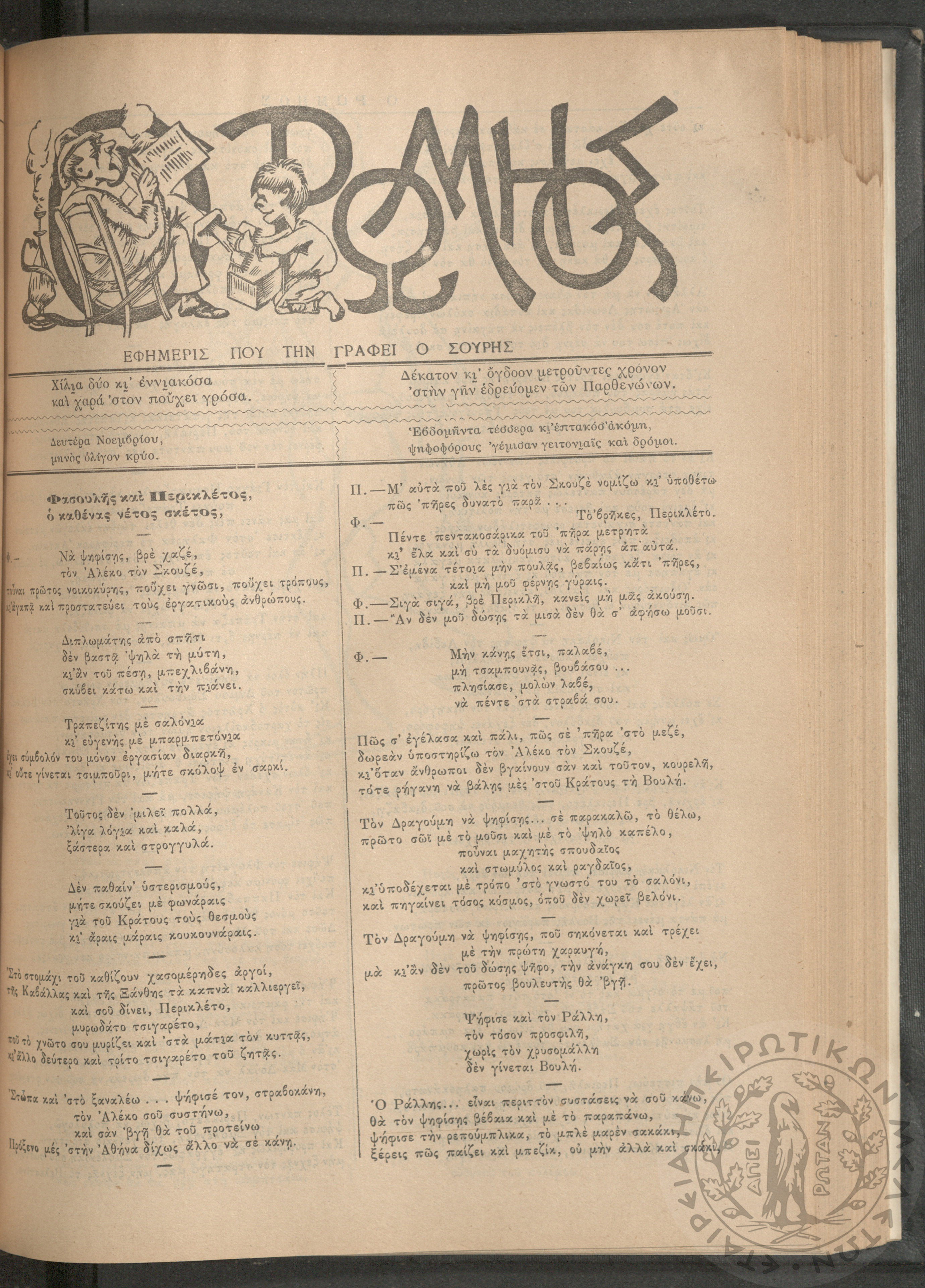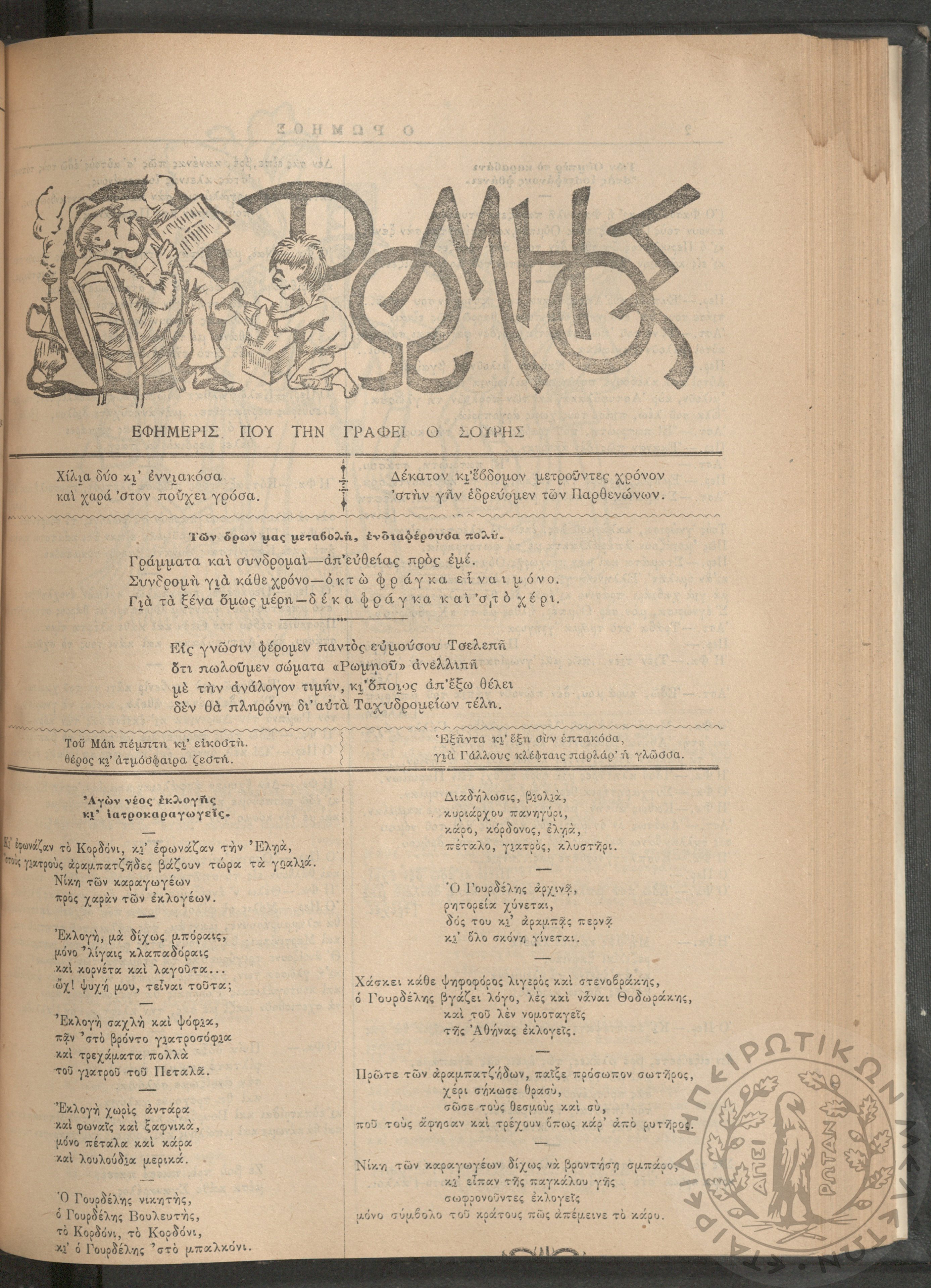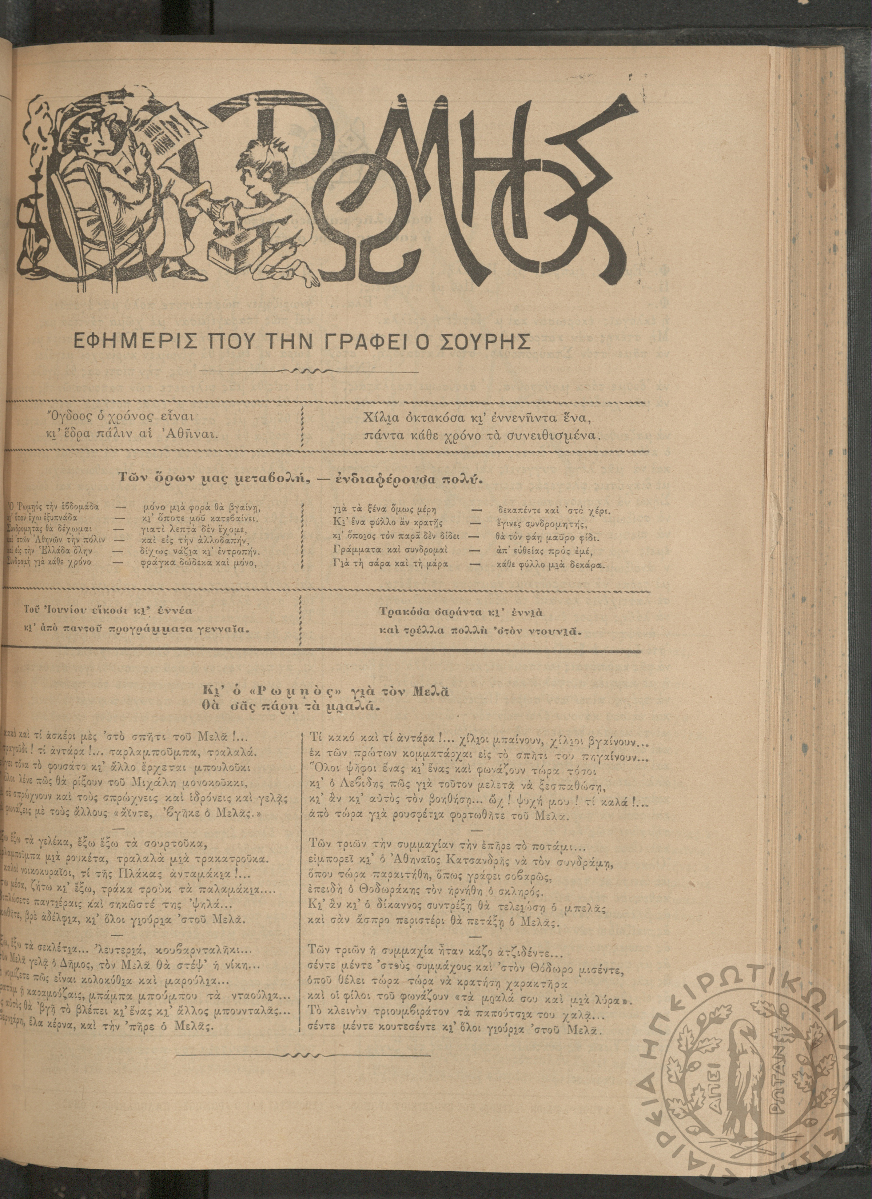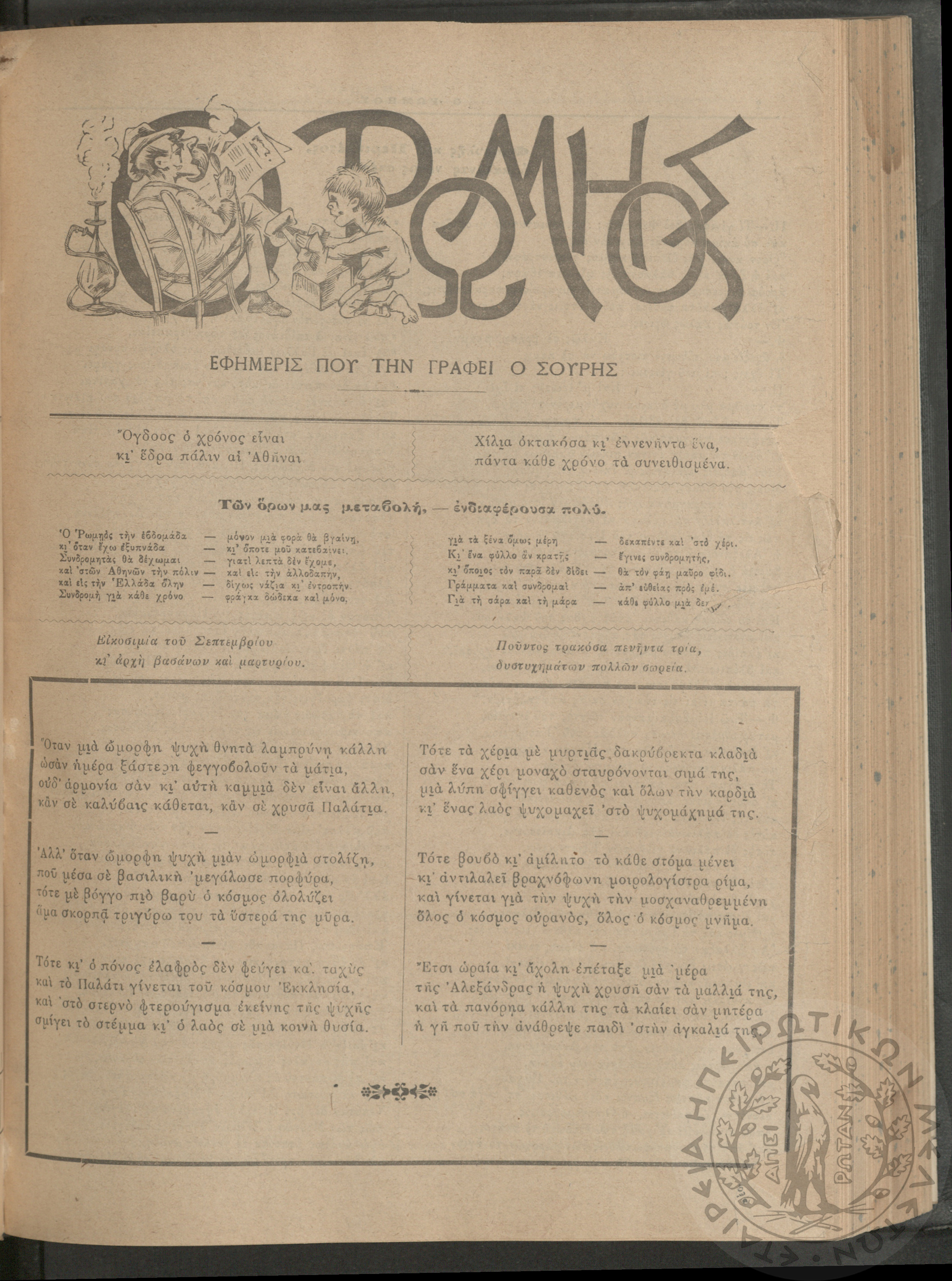 Ο Ρωμηός: Εφημερίς που την γράφει ο Σουρής, 1905, φ. 875