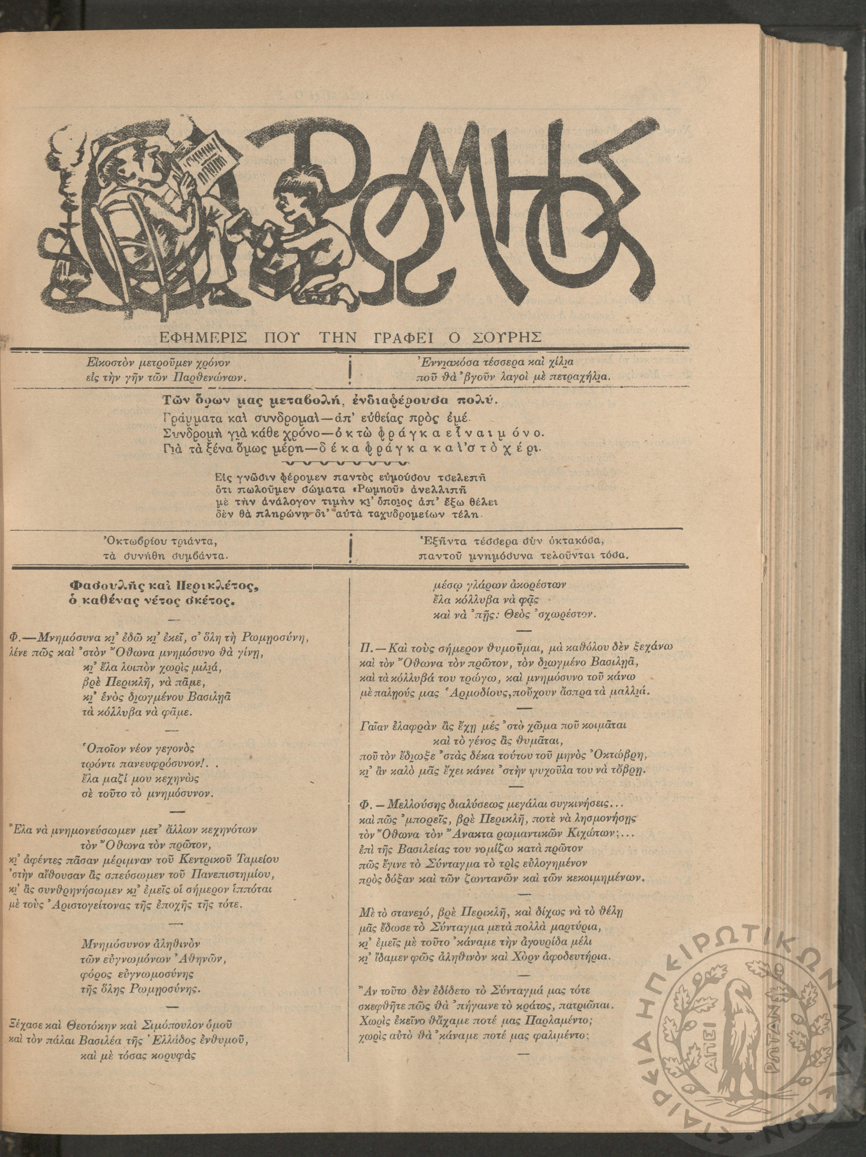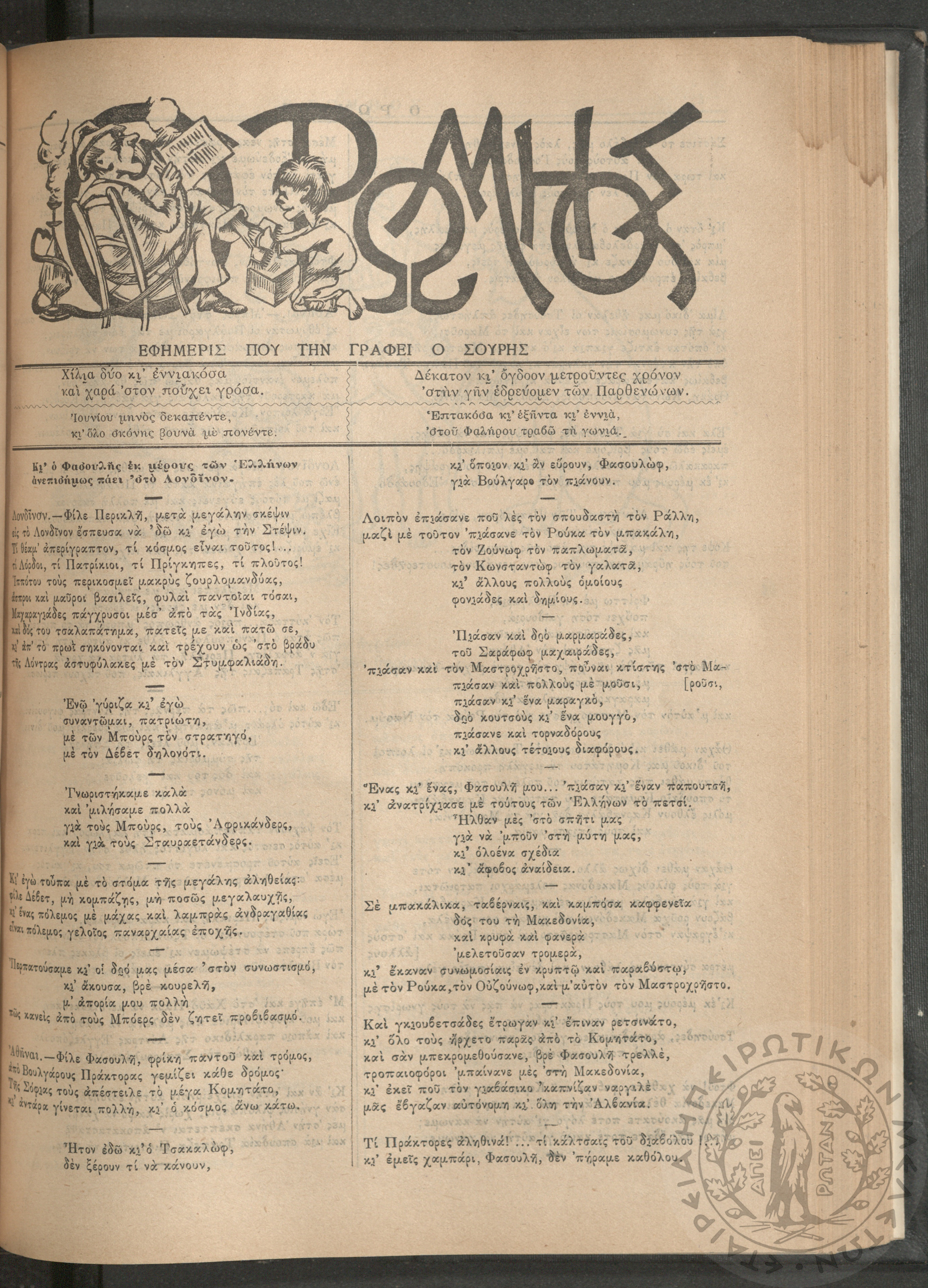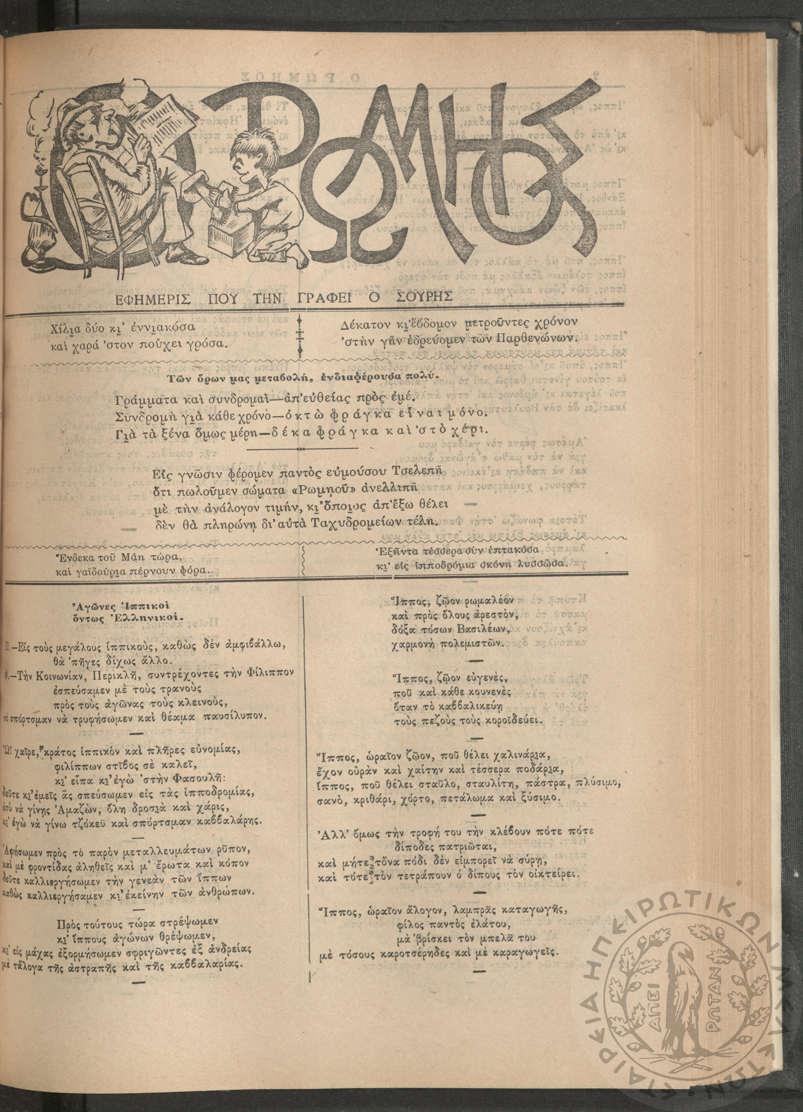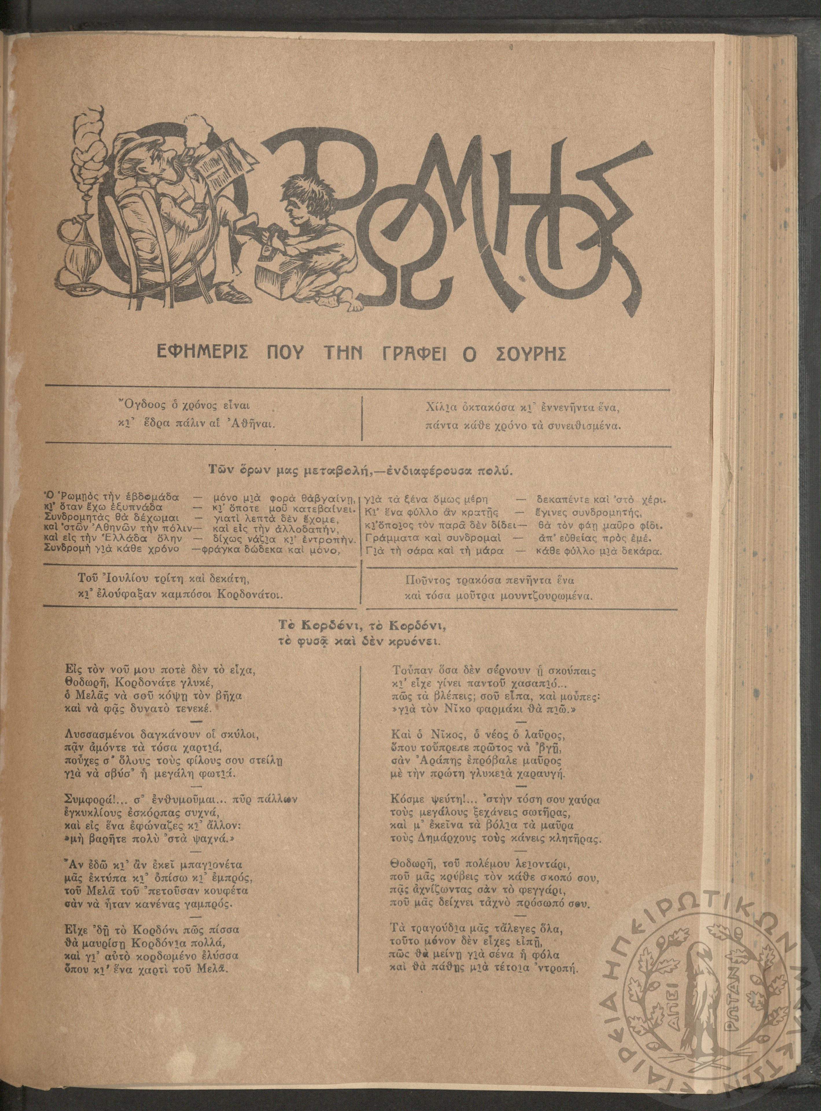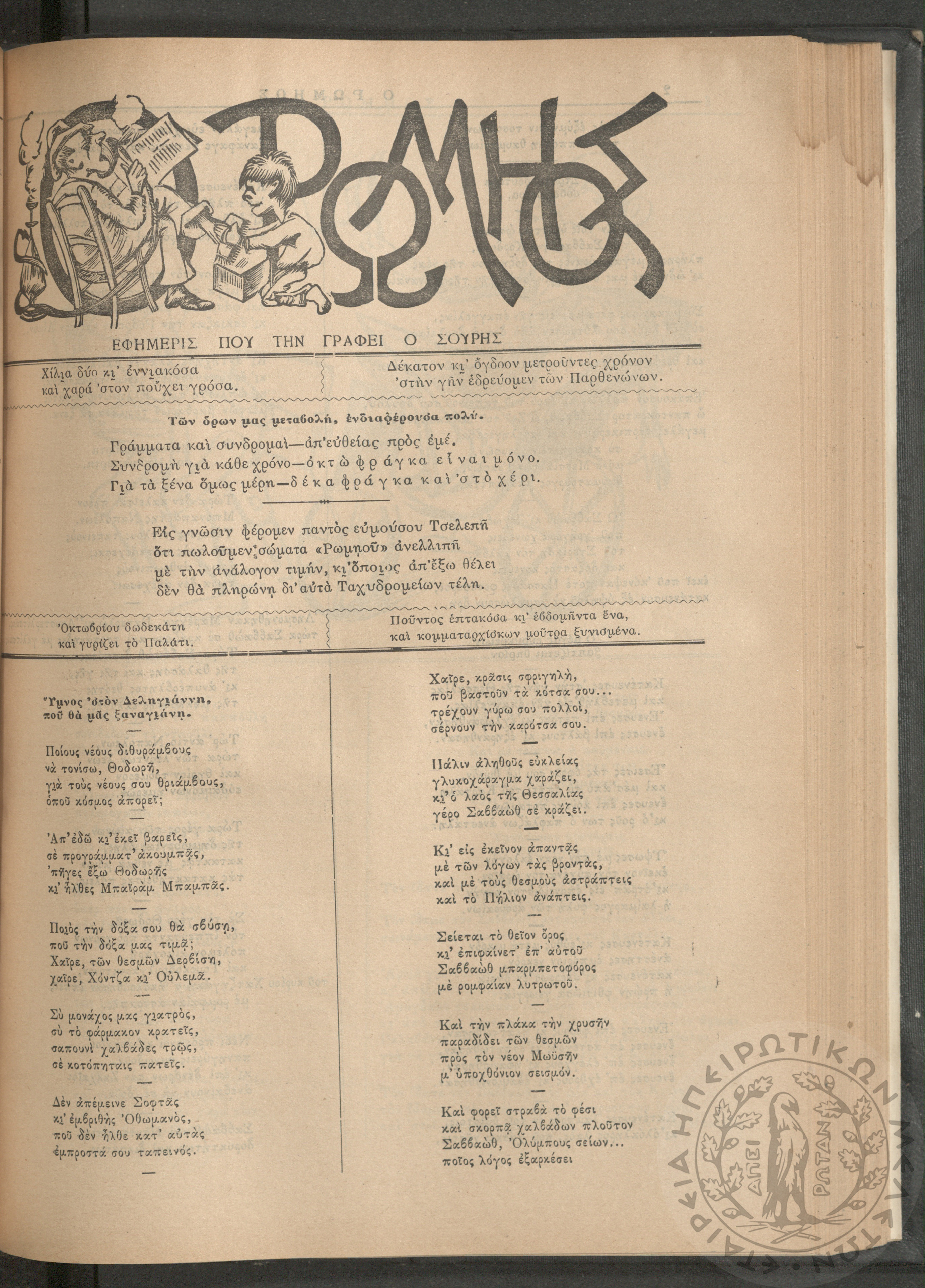 Ο Ρωμηός: Εφημερίς που την γράφει ο Σουρής, 1905, φ. 875