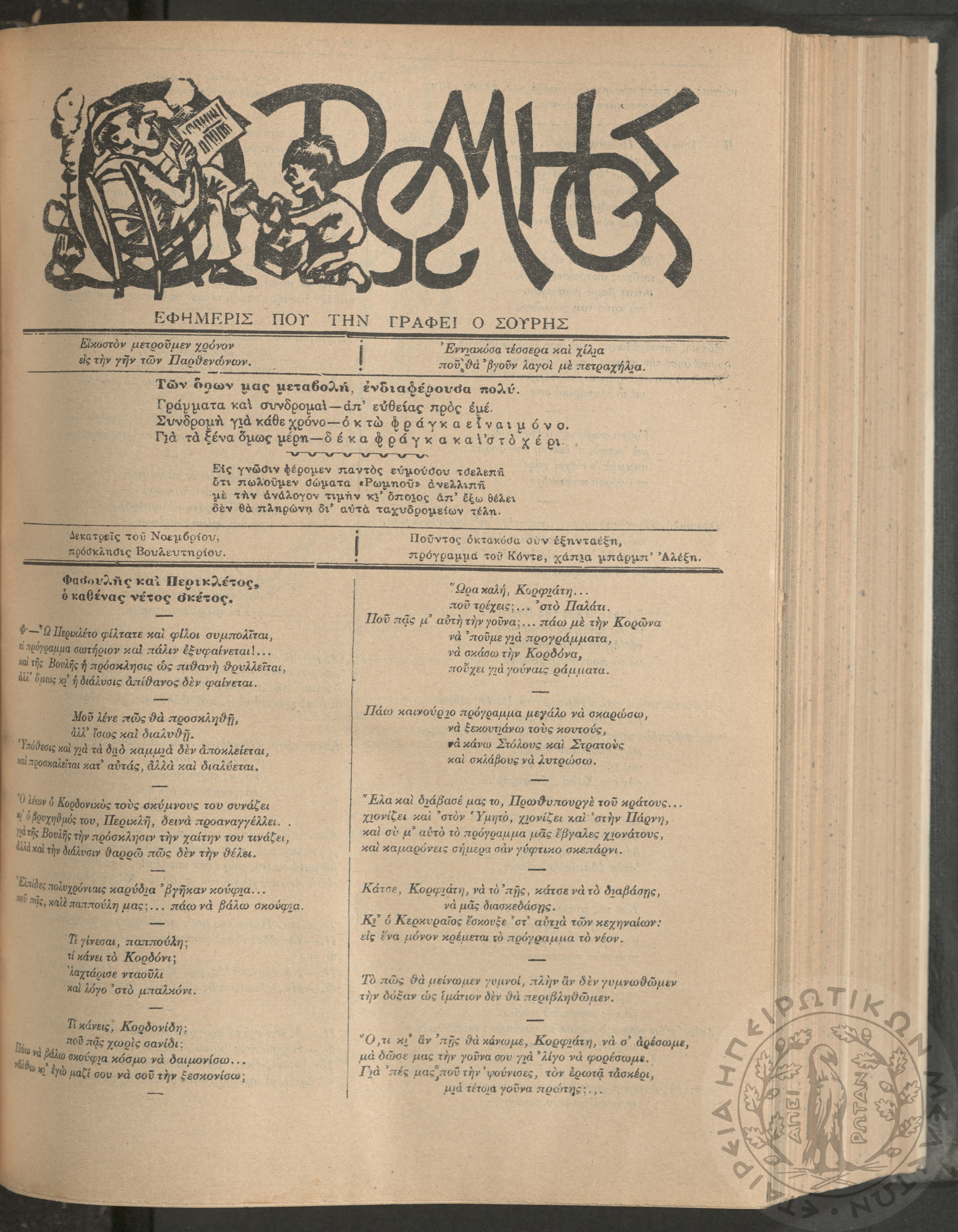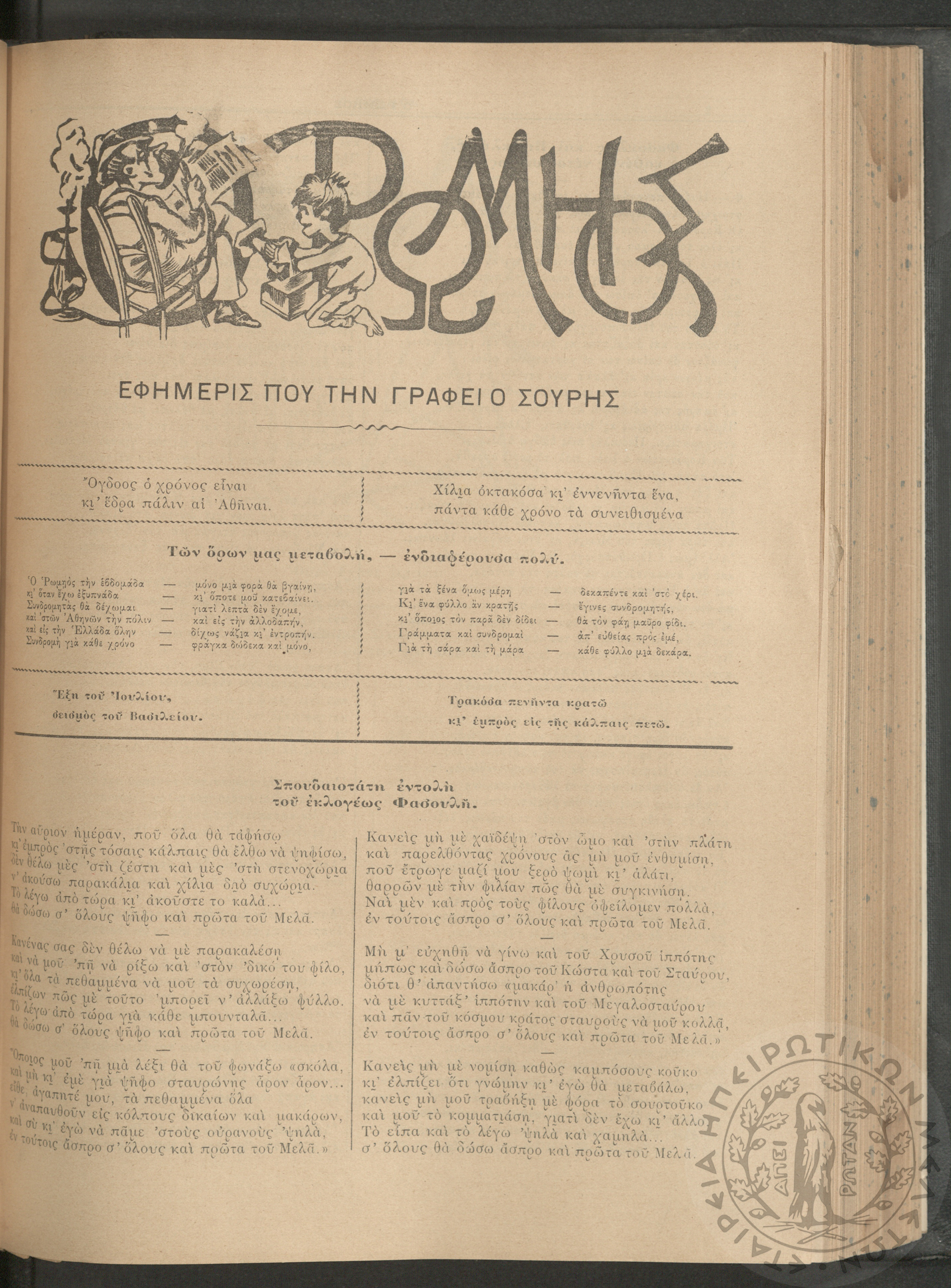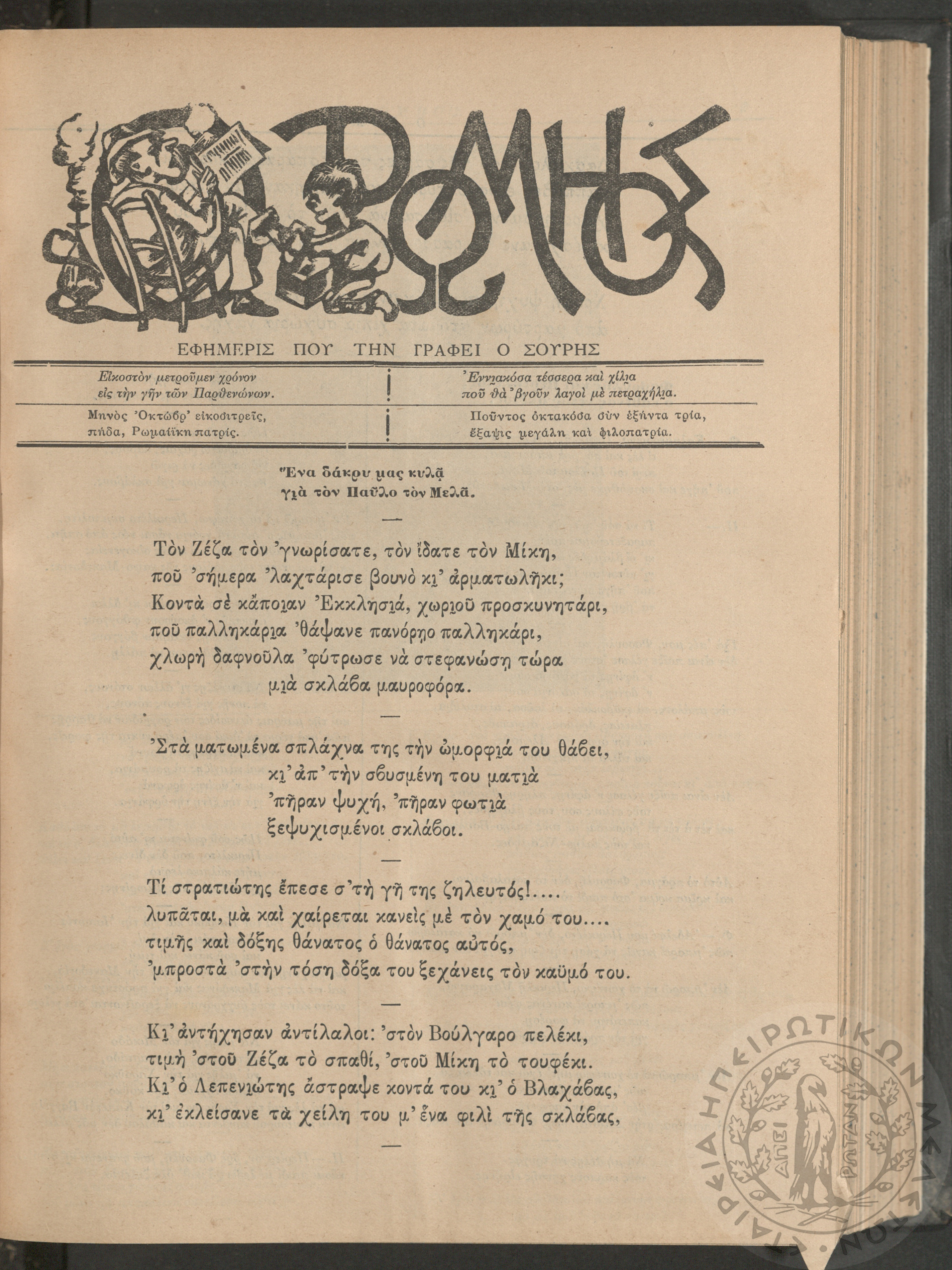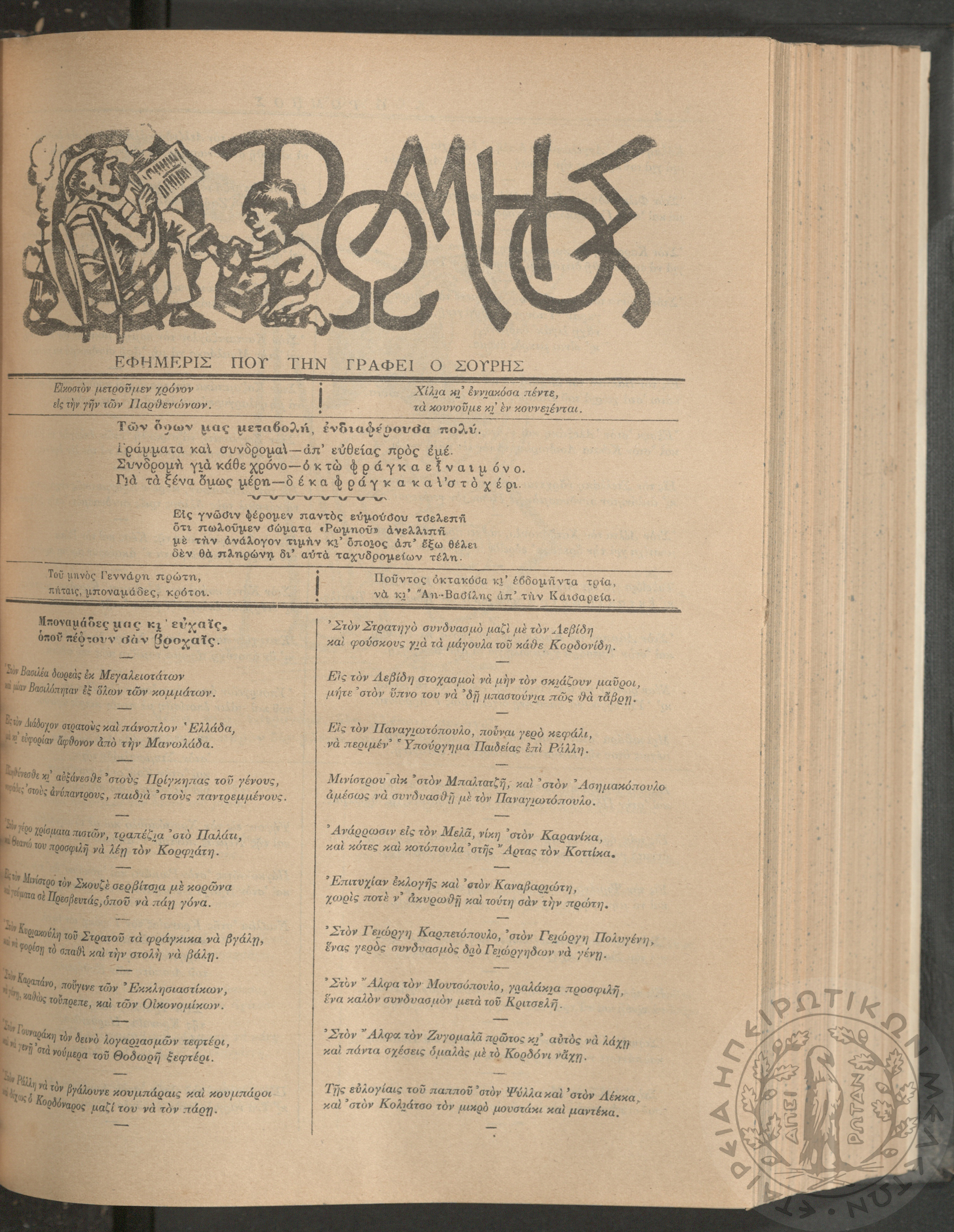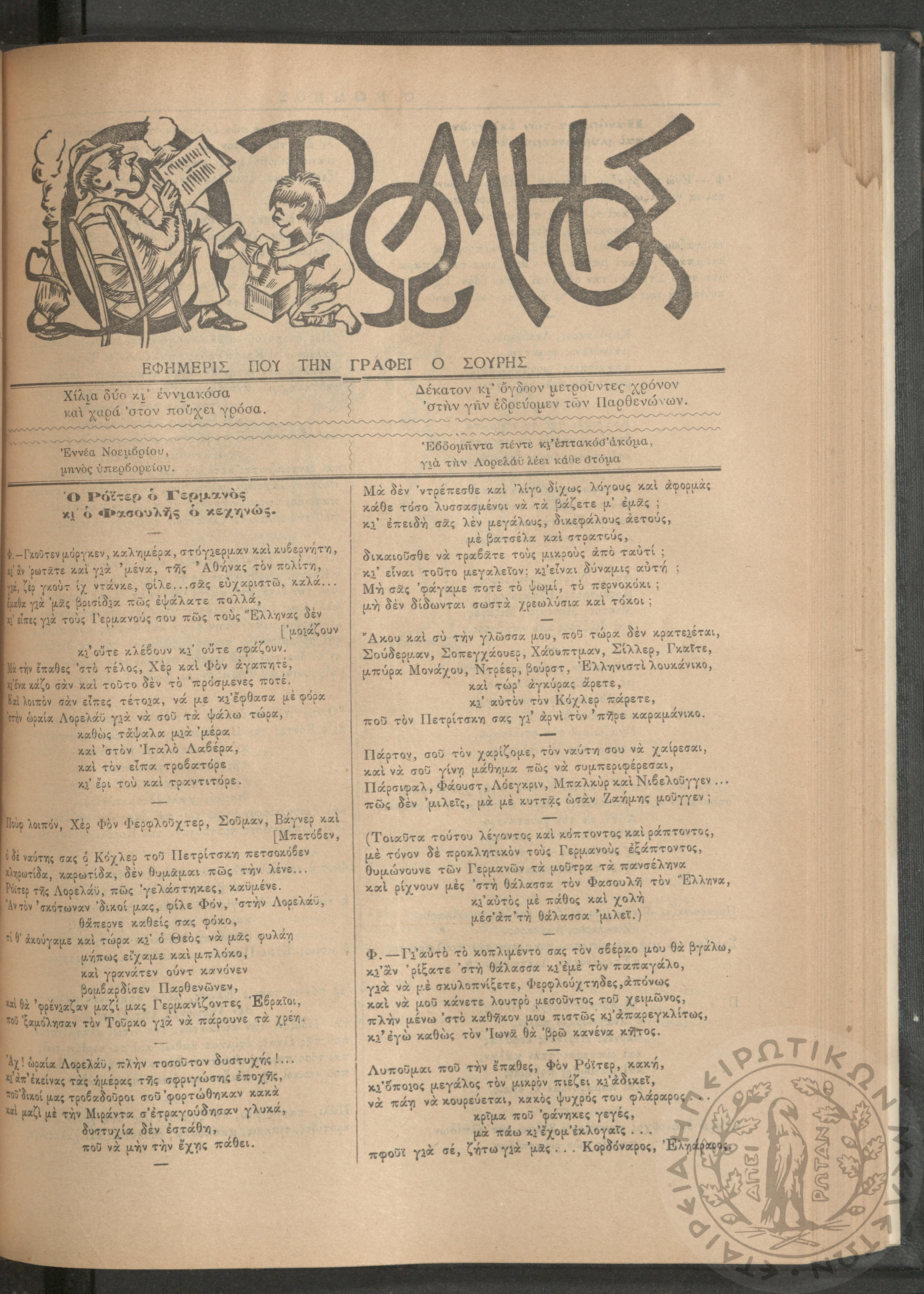 Ο Ρωμηός: Εφημερίς που την γράφει ο Σουρής, 1905, φ. 875