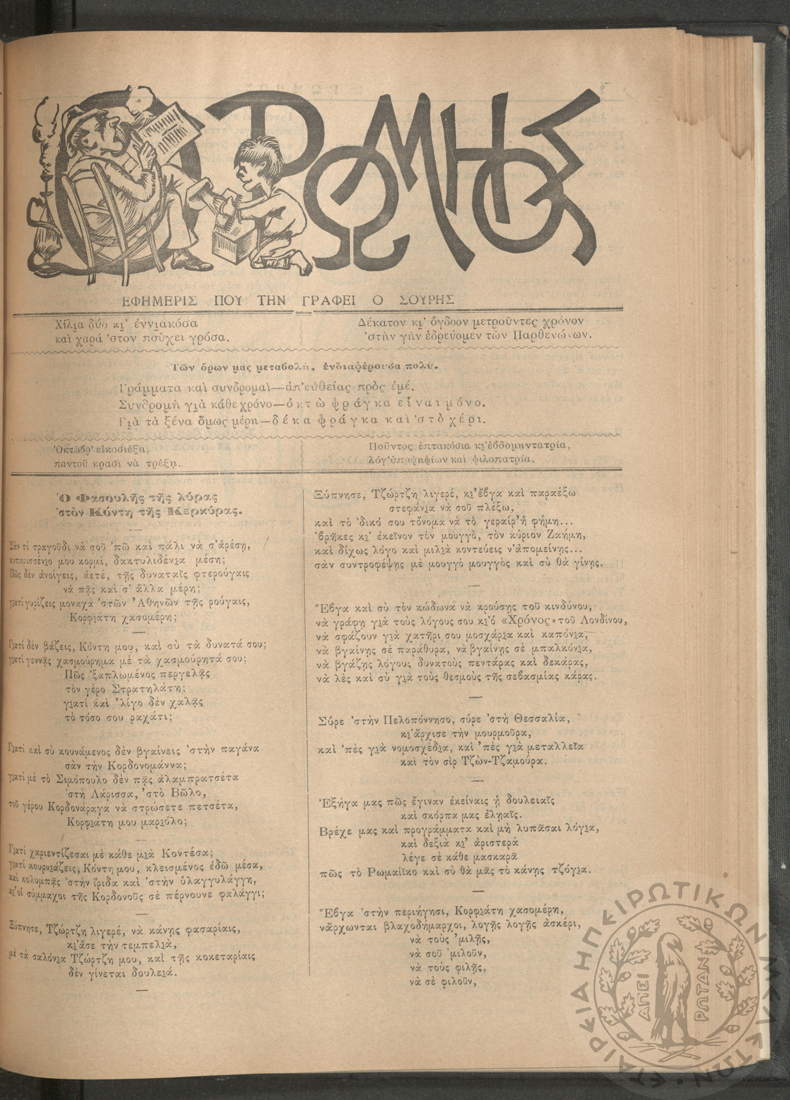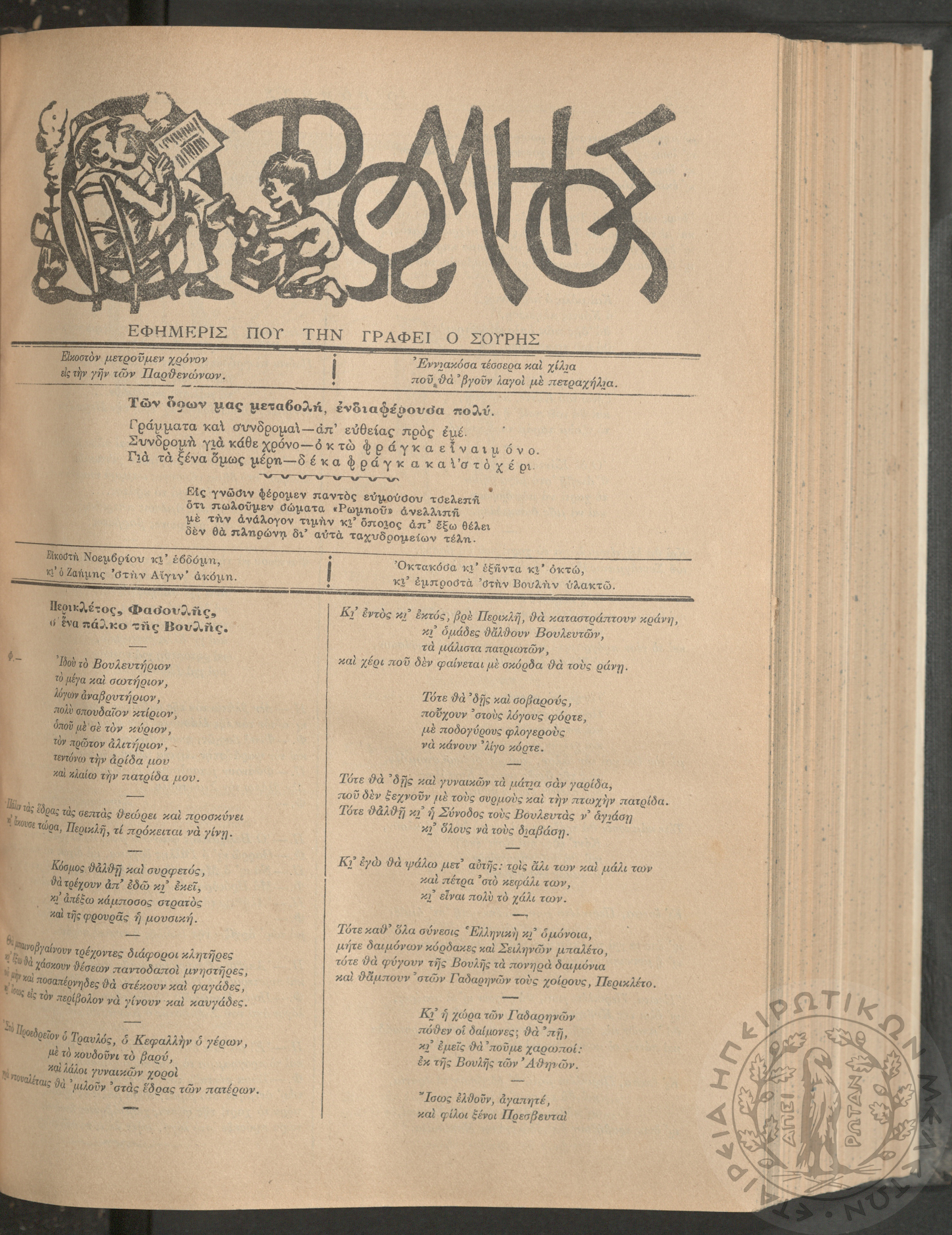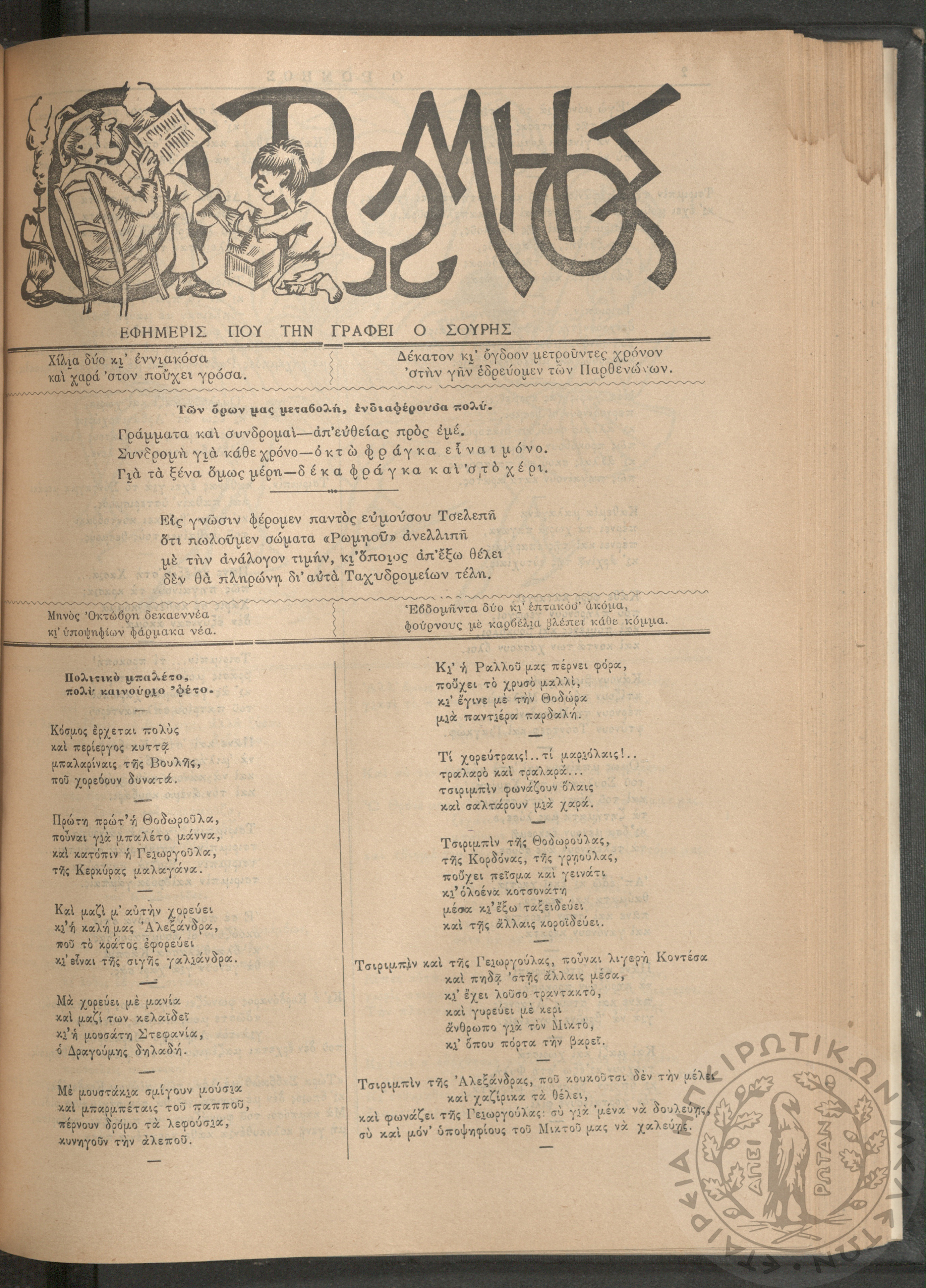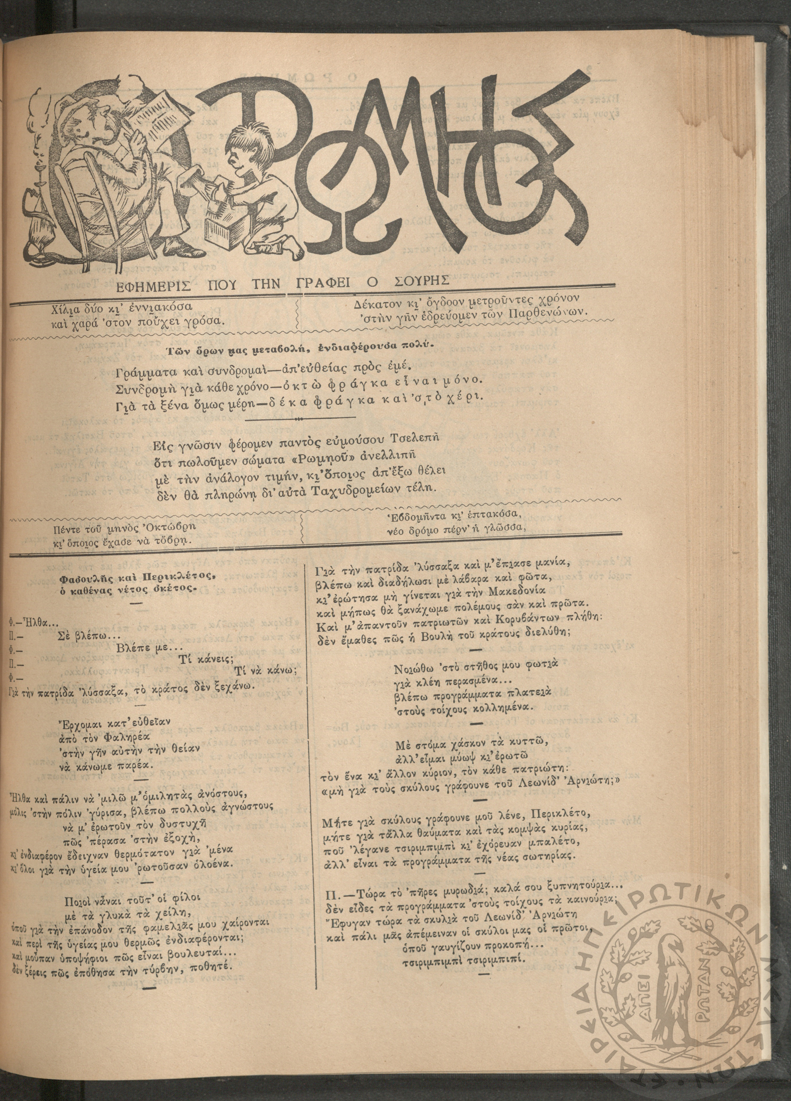 Ο Ρωμηός: Εφημερίς που την γράφει ο Σουρής, 1905, φ. 875