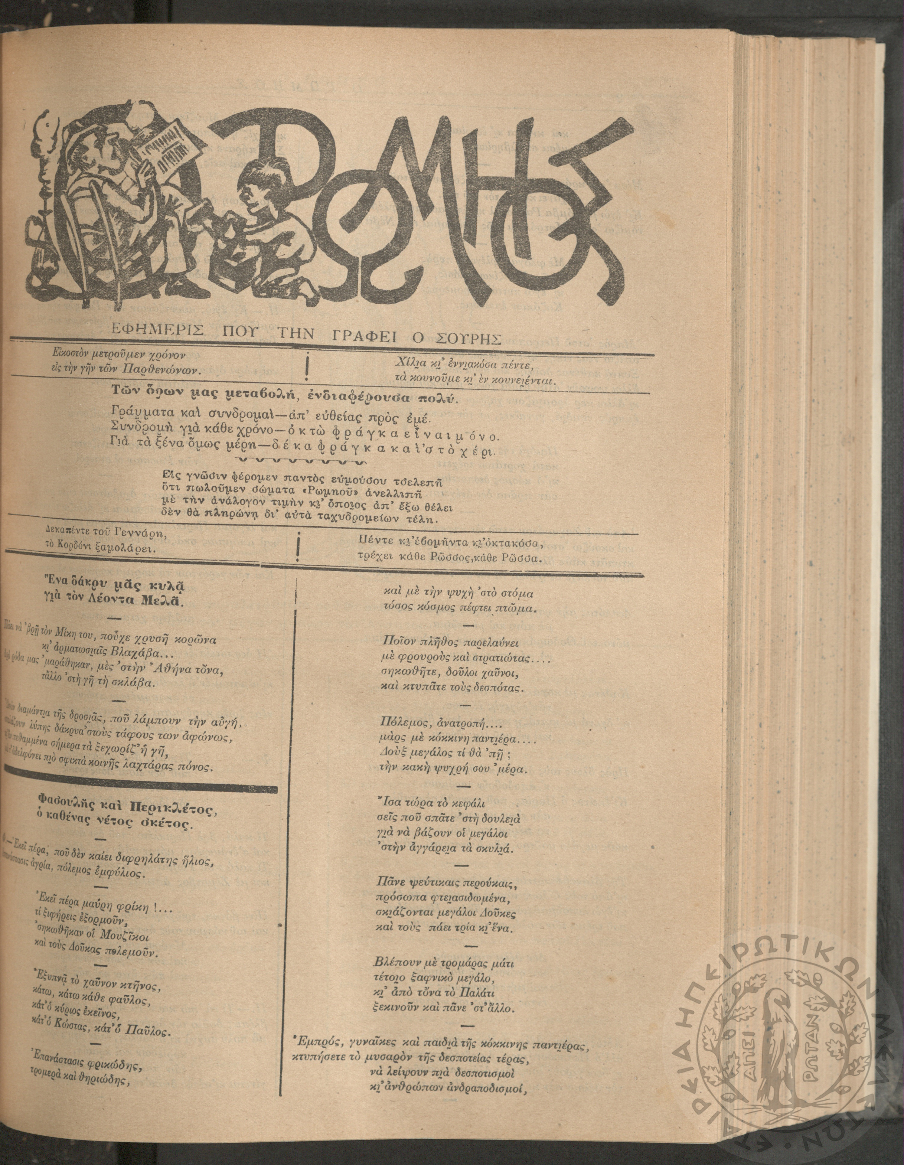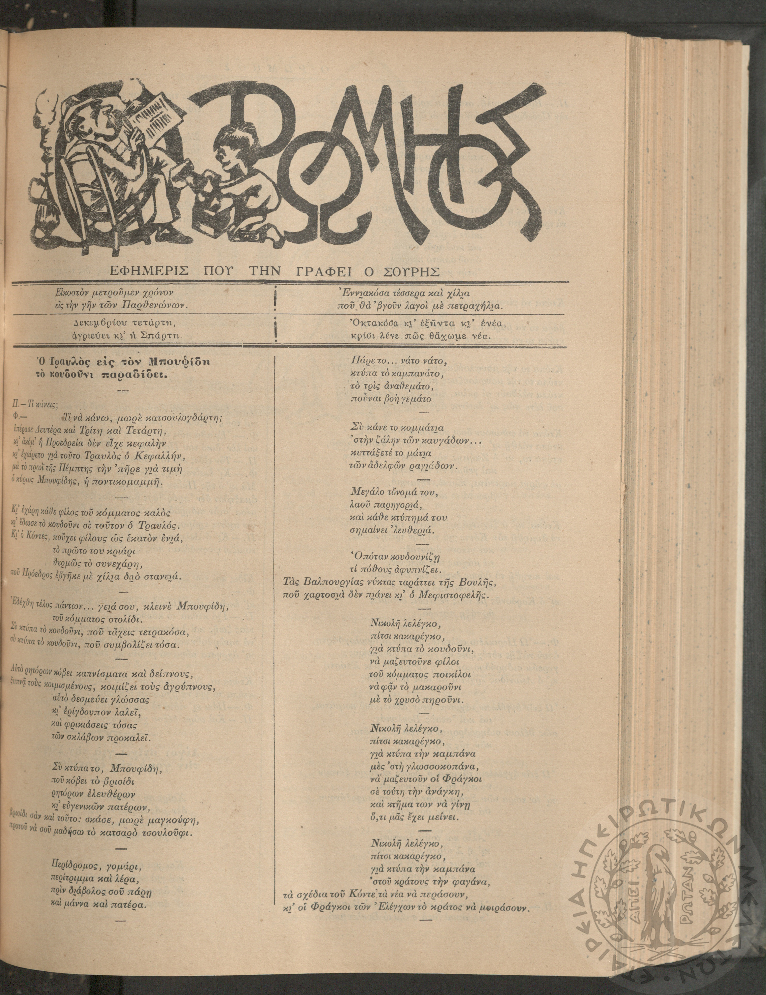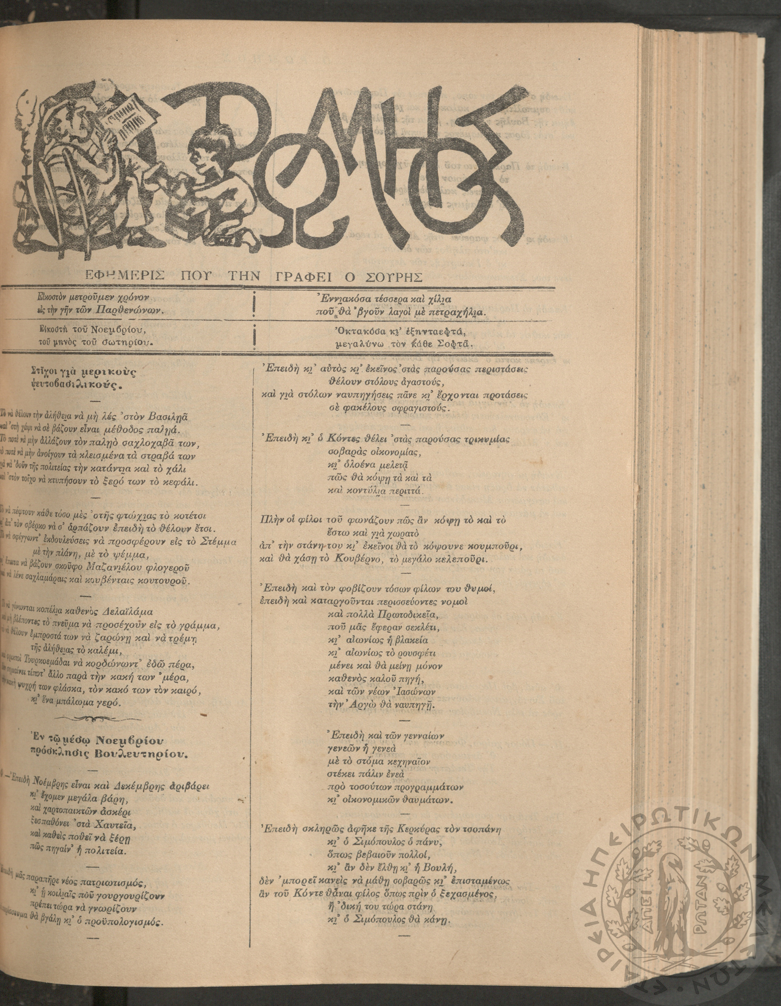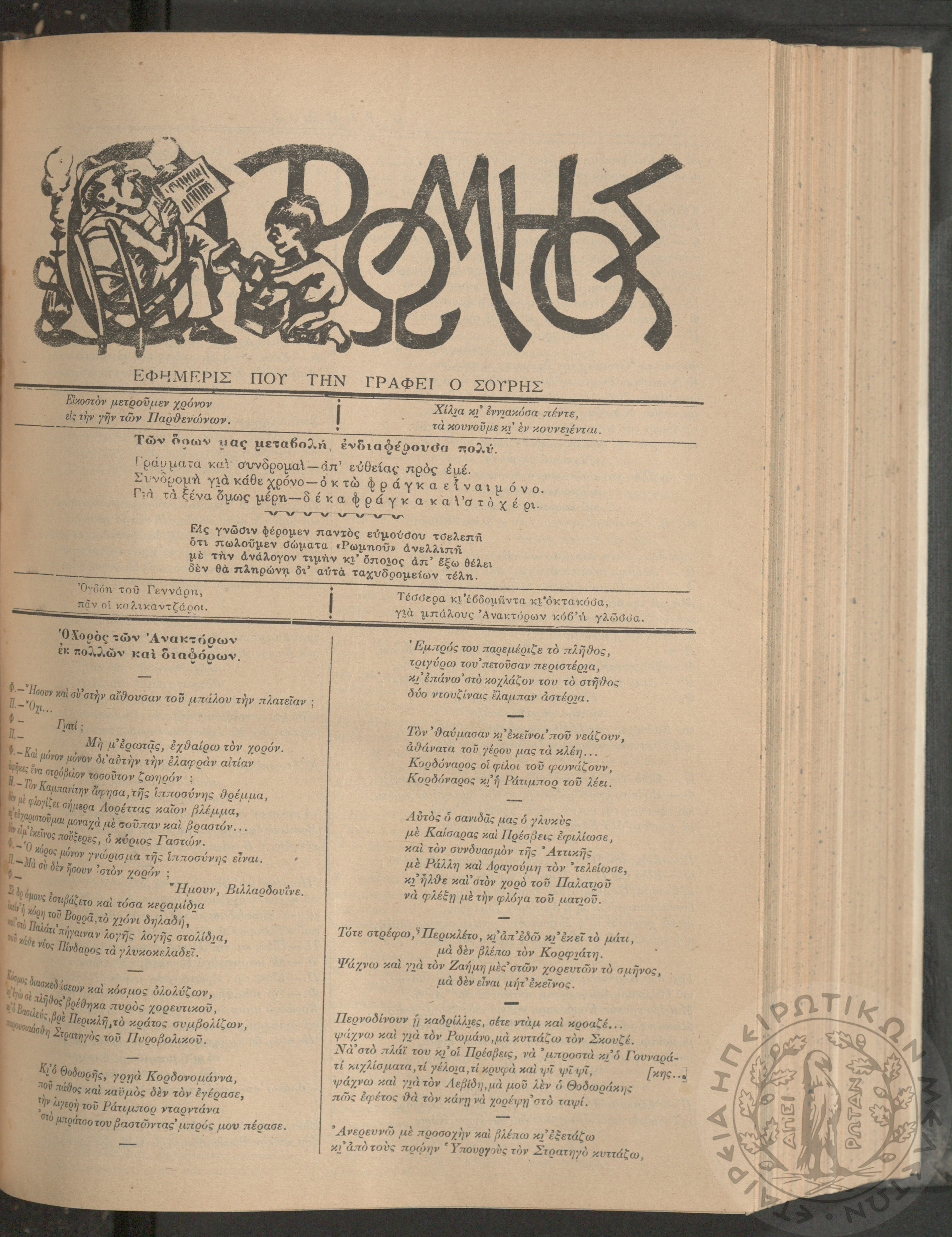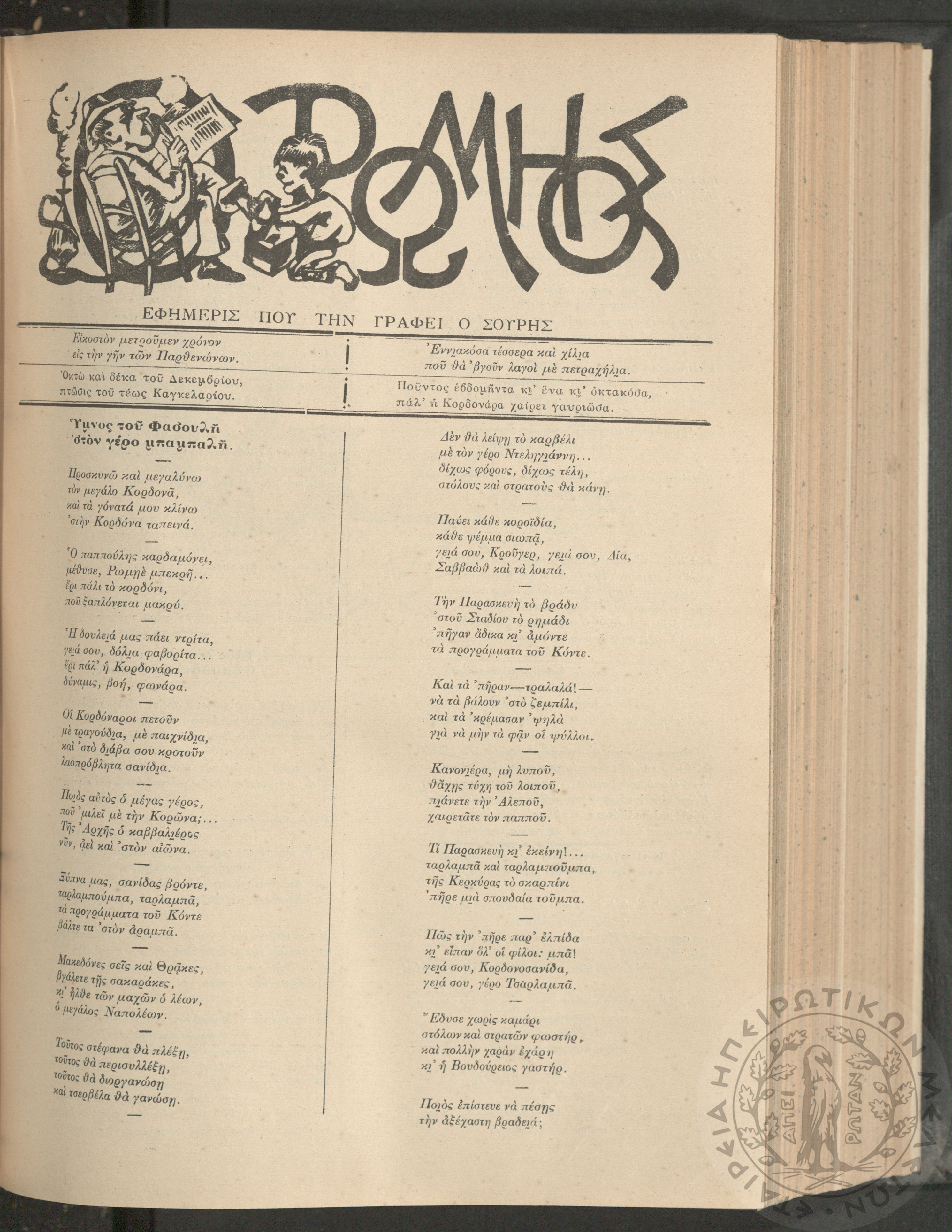 Ο Ρωμηός: Εφημερίς που την γράφει ο Σουρής, 1905, φ. 875
