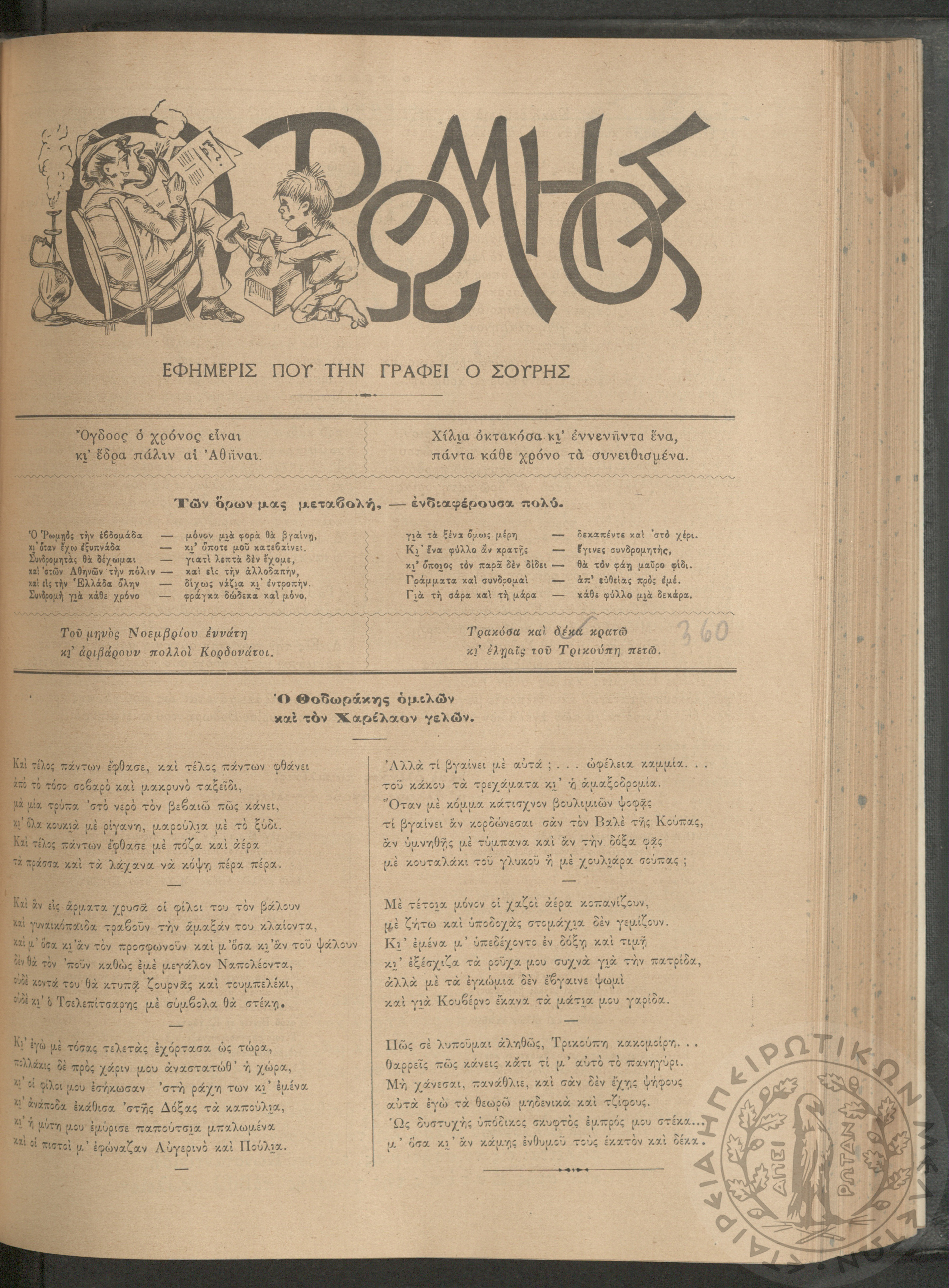 Ο Ρωμηός: Εφημερίς που την γράφει ο Σουρής, 1891, φ. 360