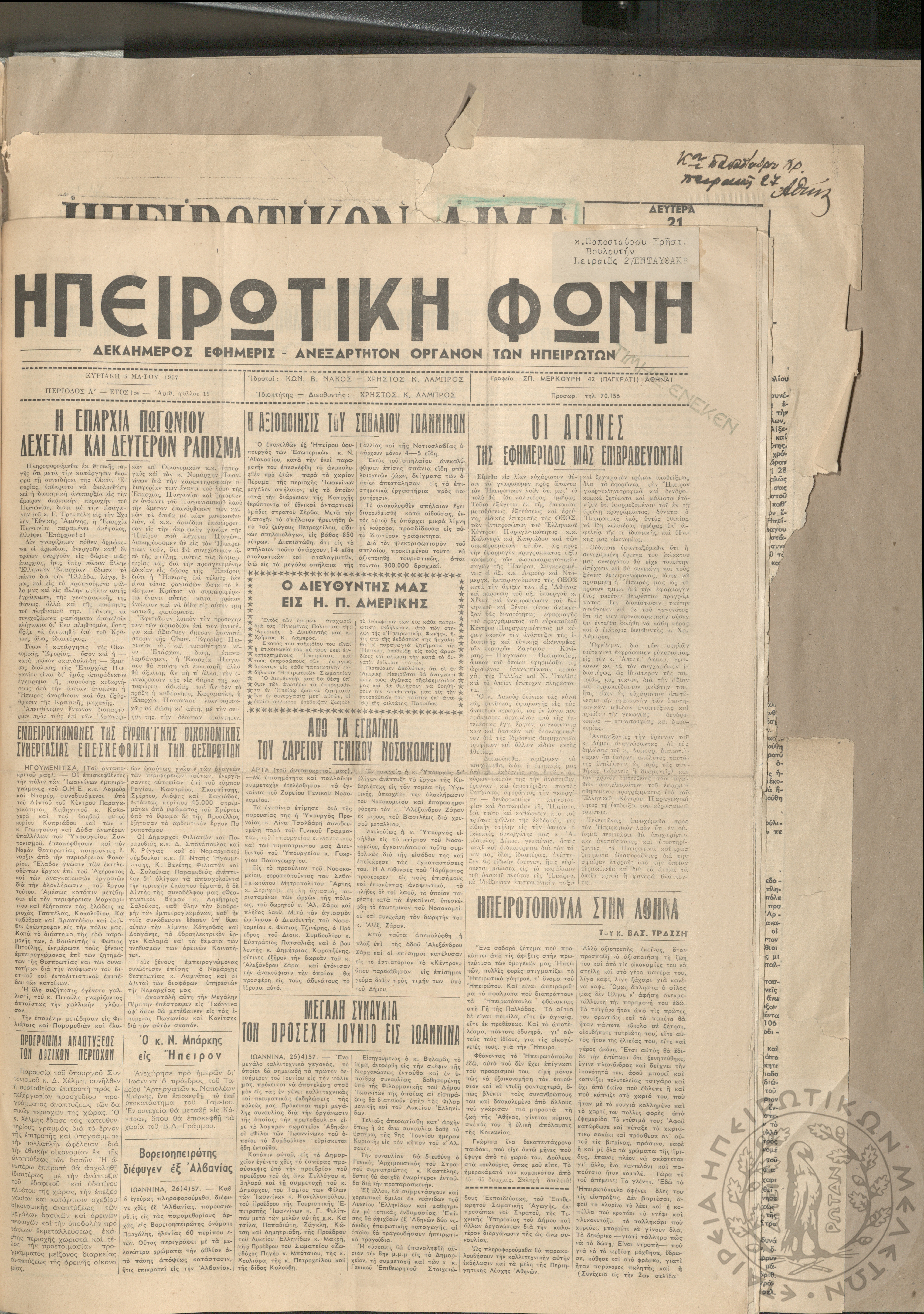 - Ψηφιακό Αποθετήριο Ανάδειξης και προβολής των ιστορικών τεκμηρίων της Εταιρείας Ηπειρωτικών Μελετών
