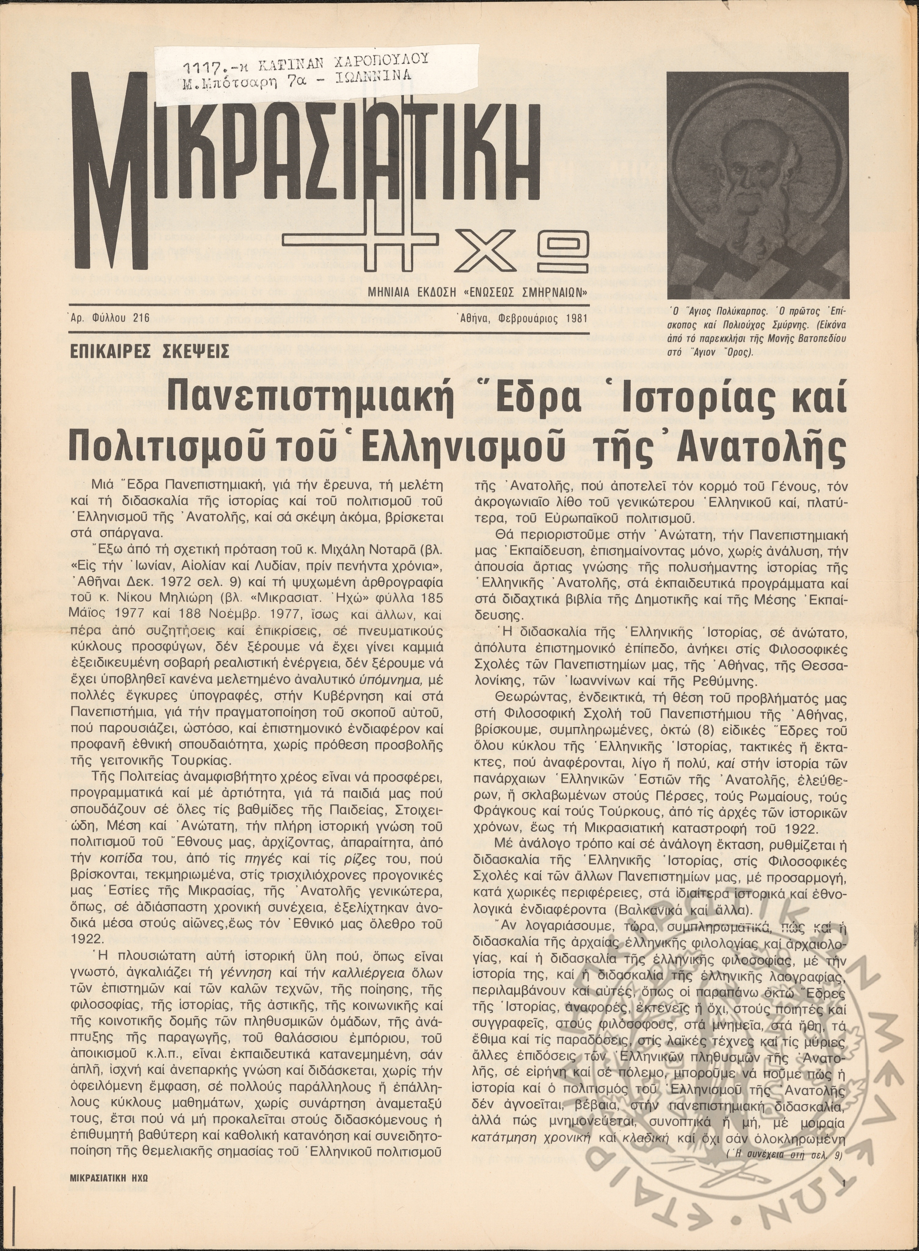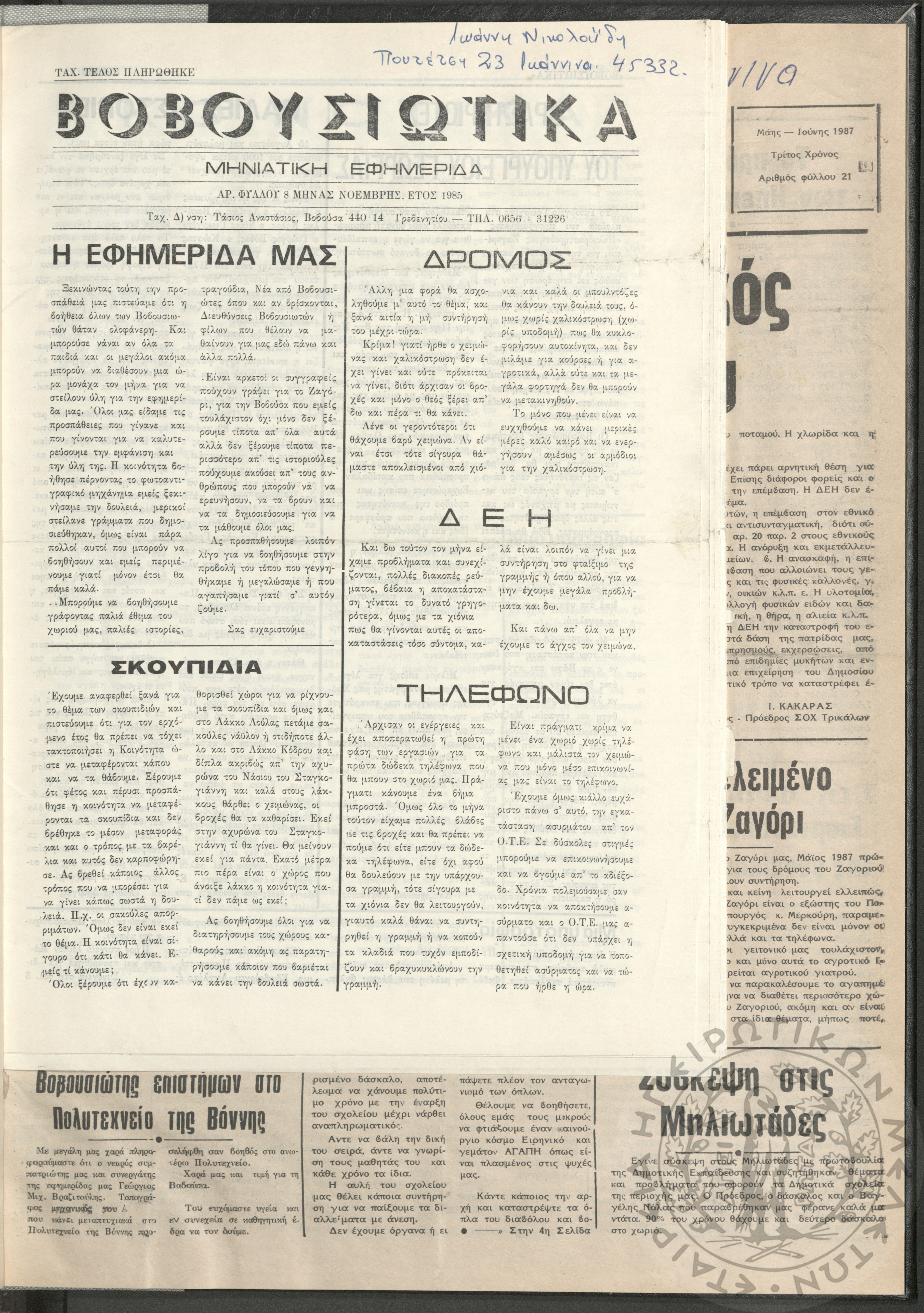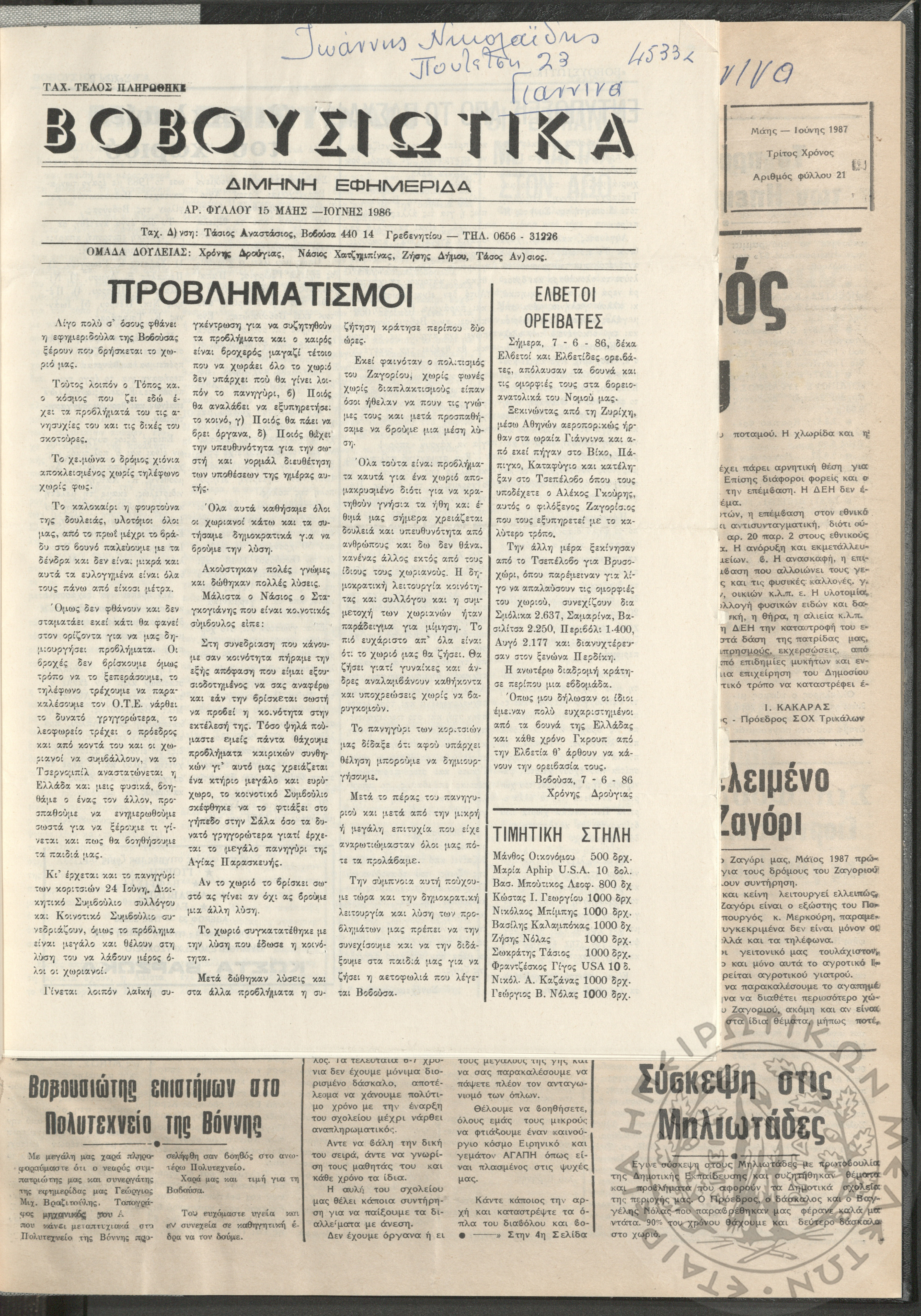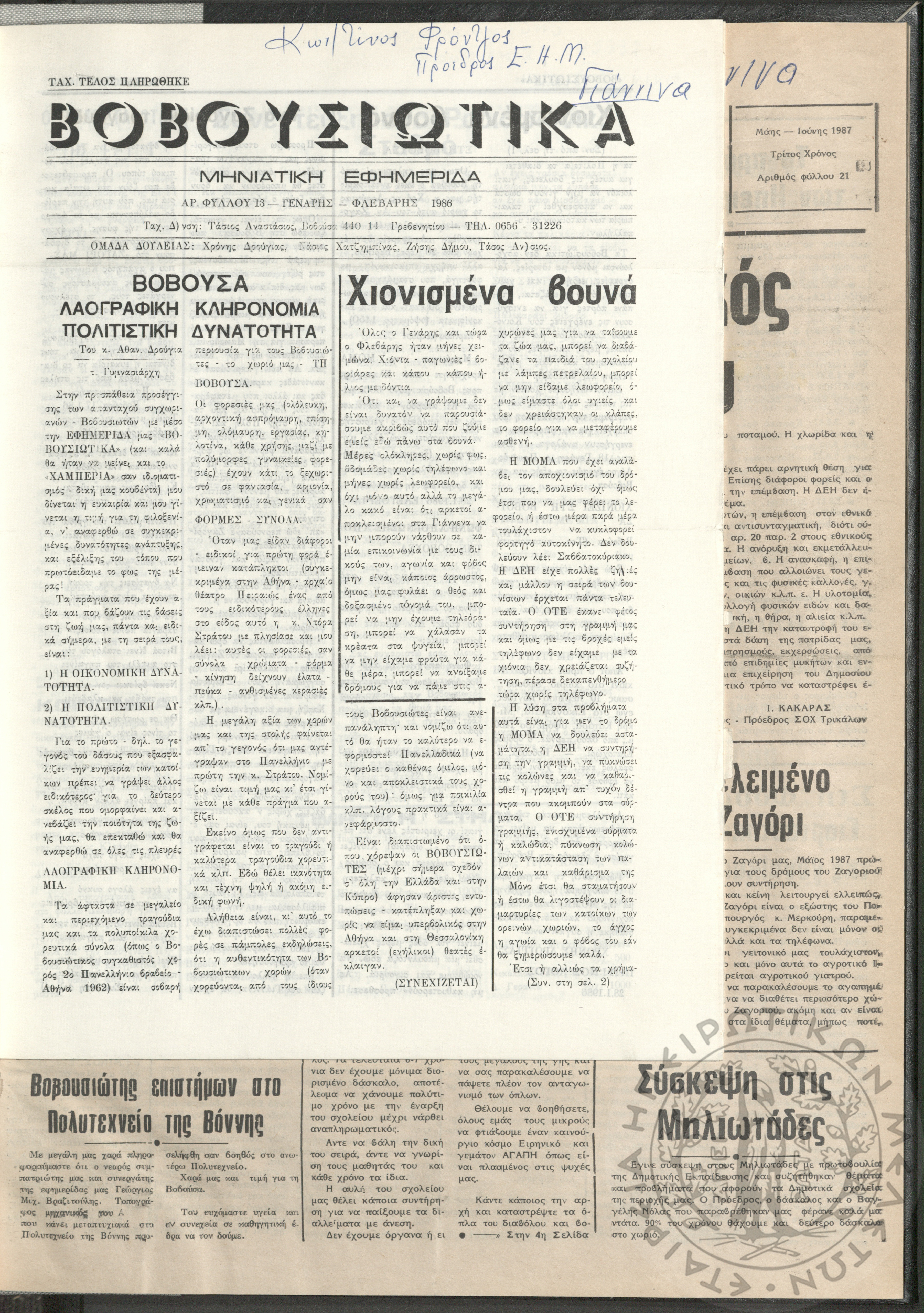 Παλμός του Άνω Καλαμά: διμηνιαίο δημοσιογραφικό όργανο της Ομοσπονδίας Αδελφοτήτων Άνω Καλαμά Ιωαννίνων, 1999, φ. 113Έτος 9ο, αρ. φ. 113...
