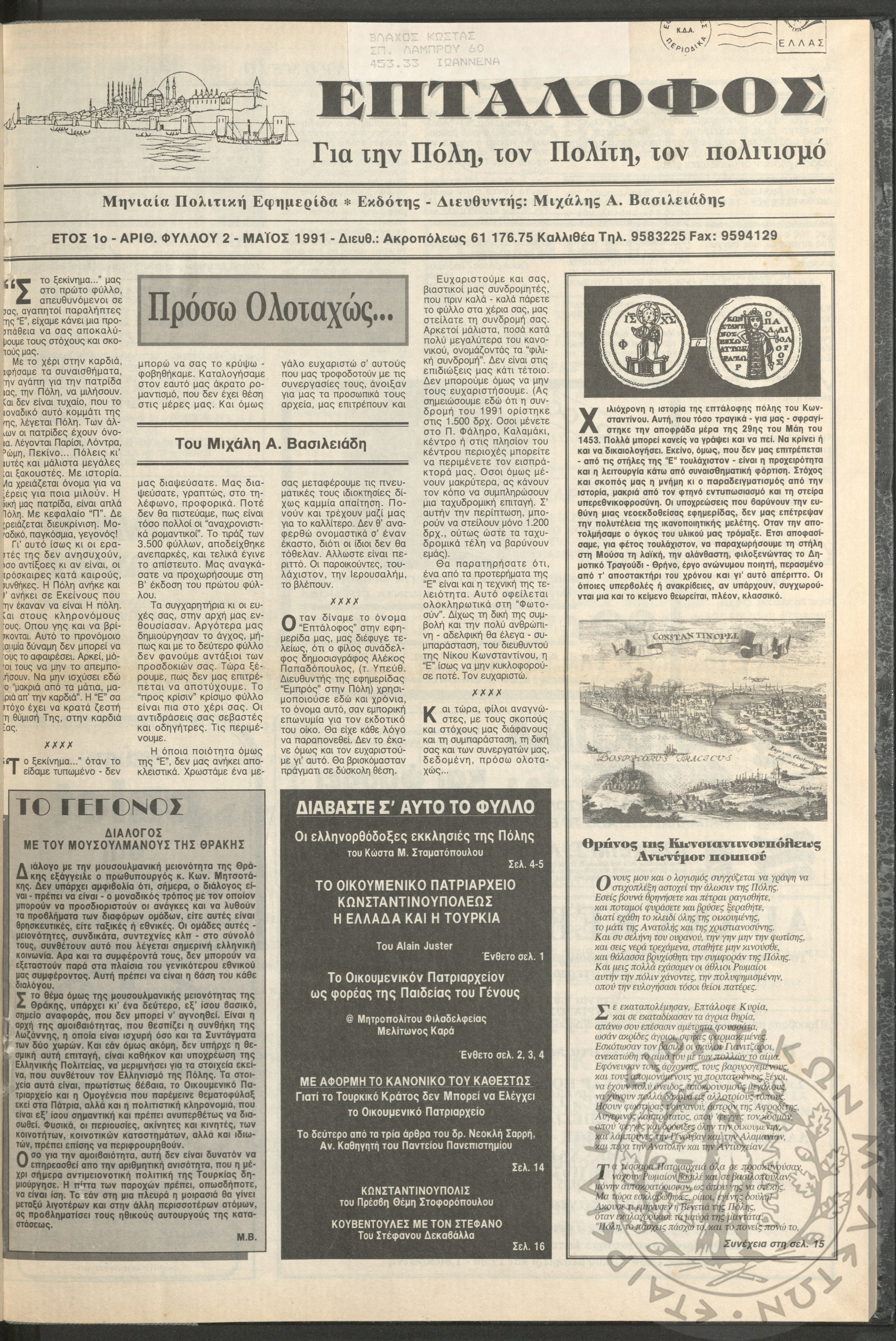 Επτάλοφος: για την Πόλη, τον πολίτη, τον πολιτισμό: μηνιαία πολιτική εφημερίδα, 1991, φ. 2Έτος 1ο, αρ. φ. 2...