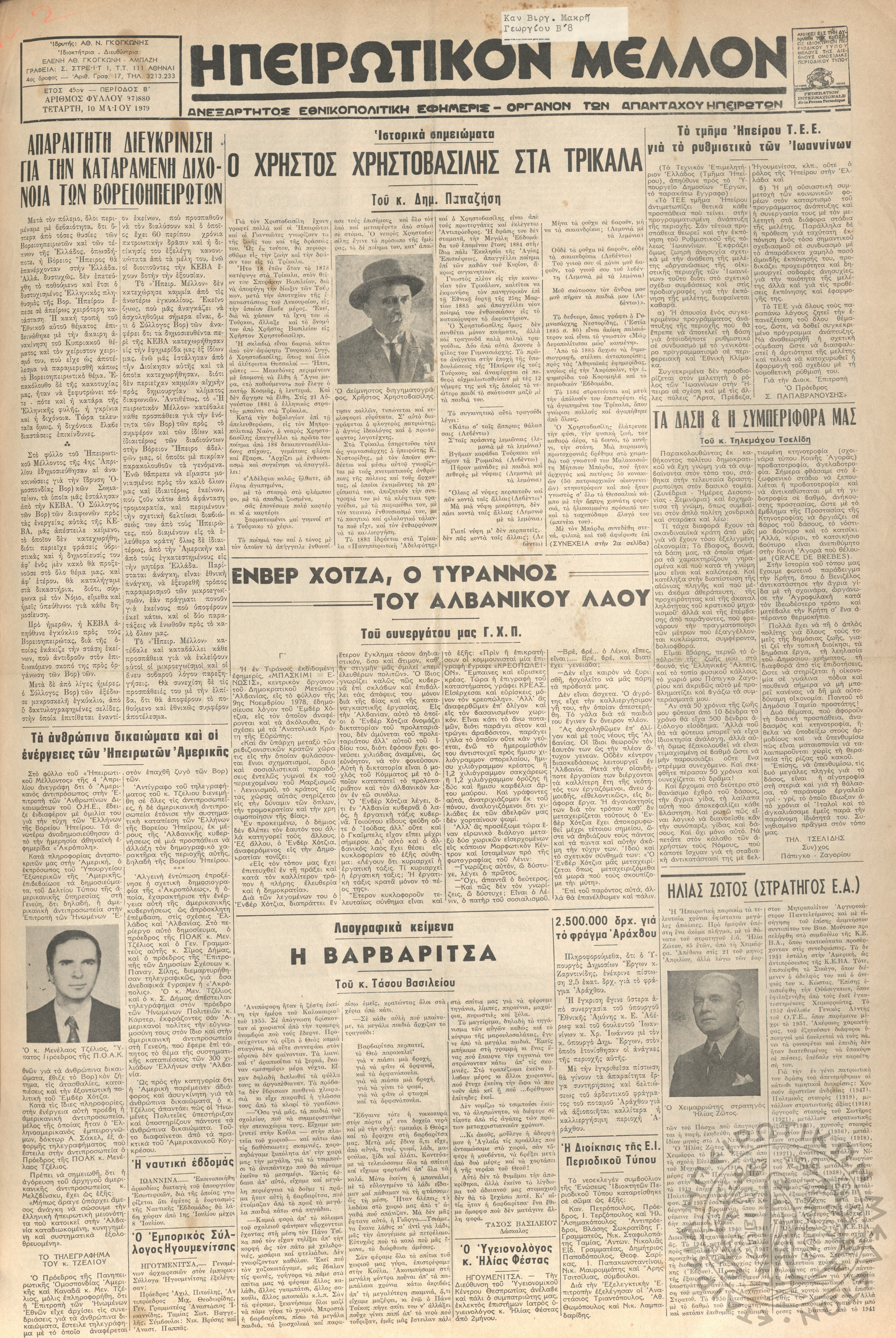 Ηπειρωτικόν μέλλον: ανεξάρτητος πολιτική και των ειδήσεων εφημερίς, όργανον του Ηπειρωτικού λαού, 1979, φ. 97/880Έτος 45ο, φ. 97/880...