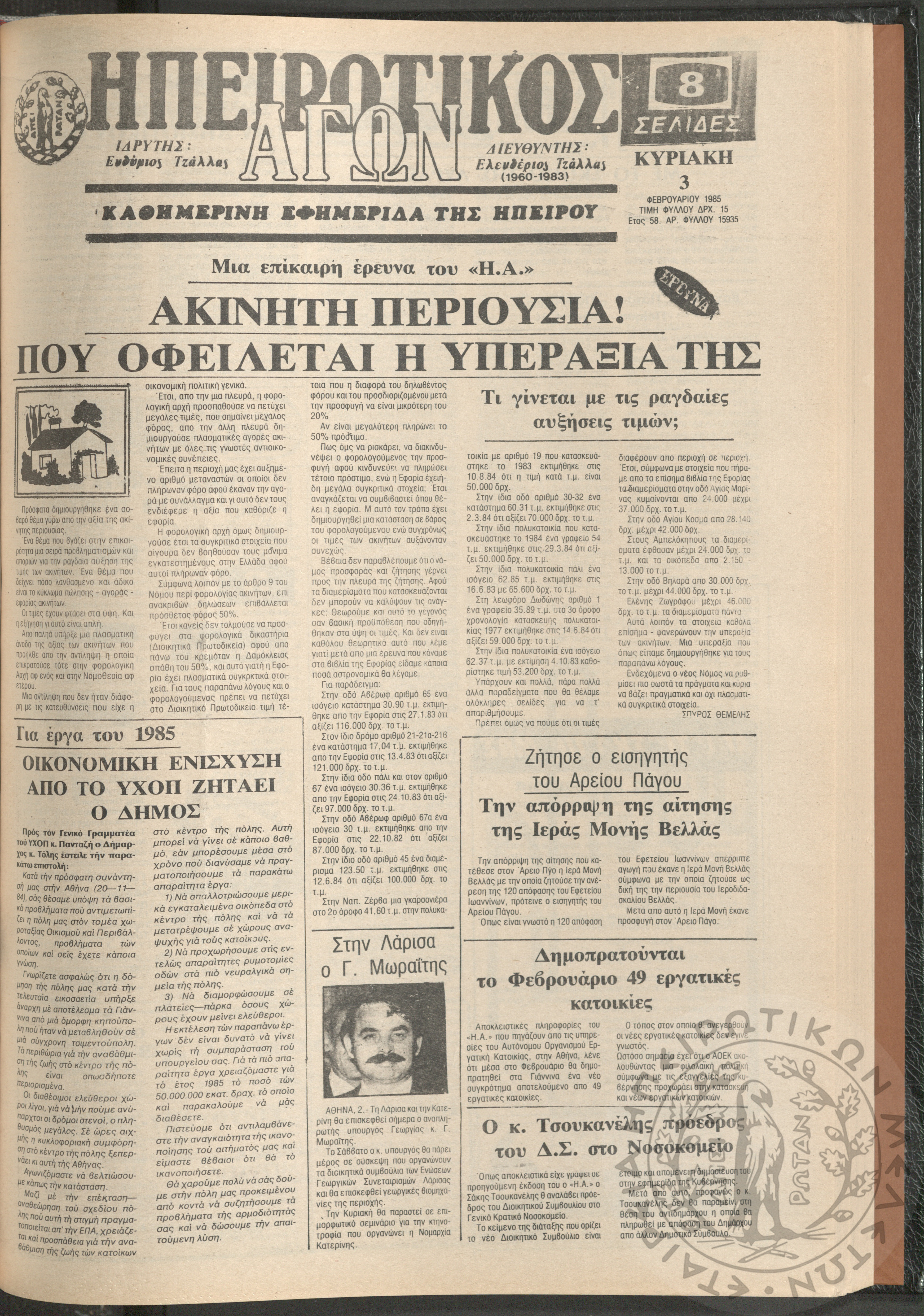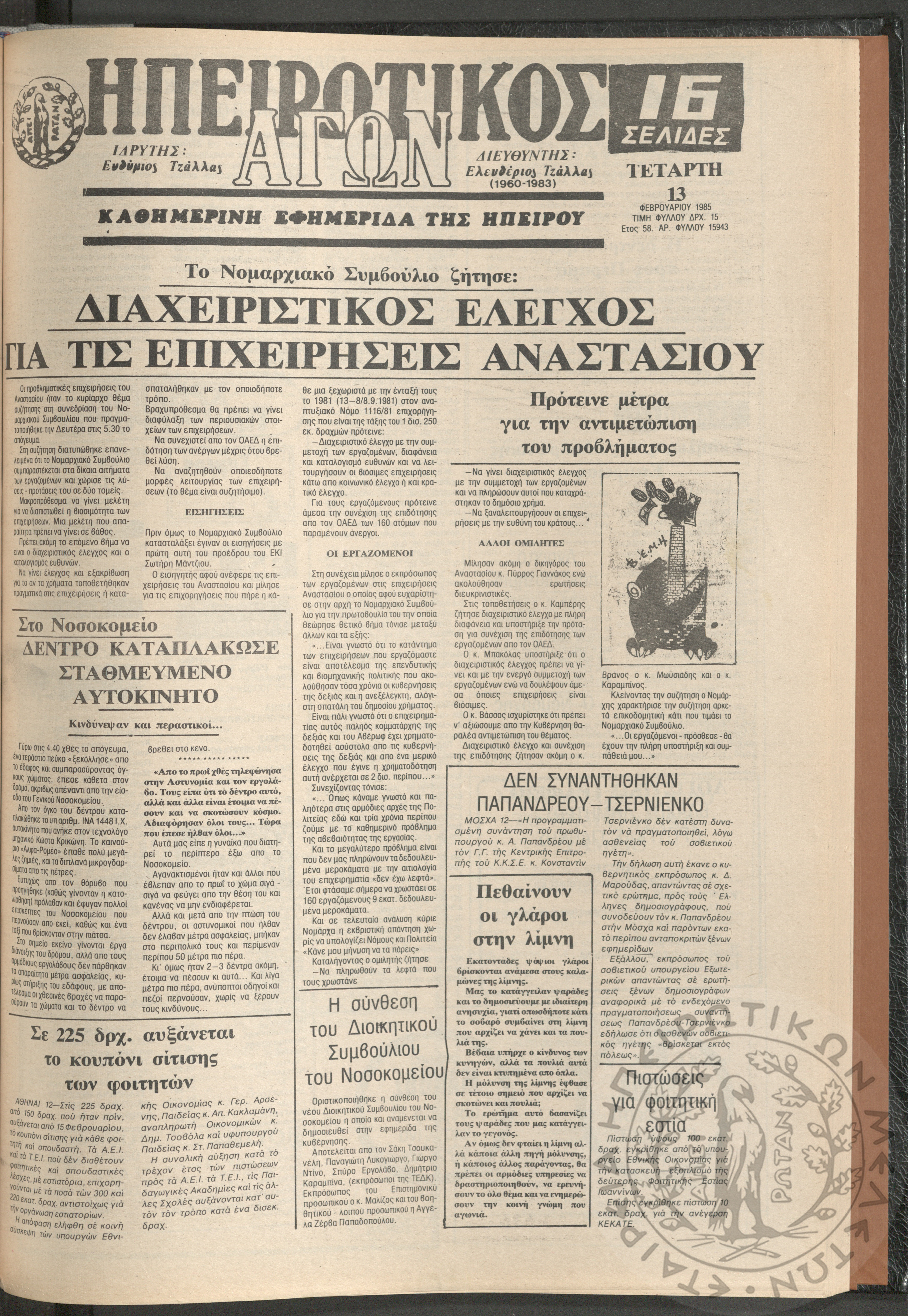 Ηπειρωτικός Αγών: καθημερινή εφημερίδα της Ηπείρου, 1985, φ. 15944
