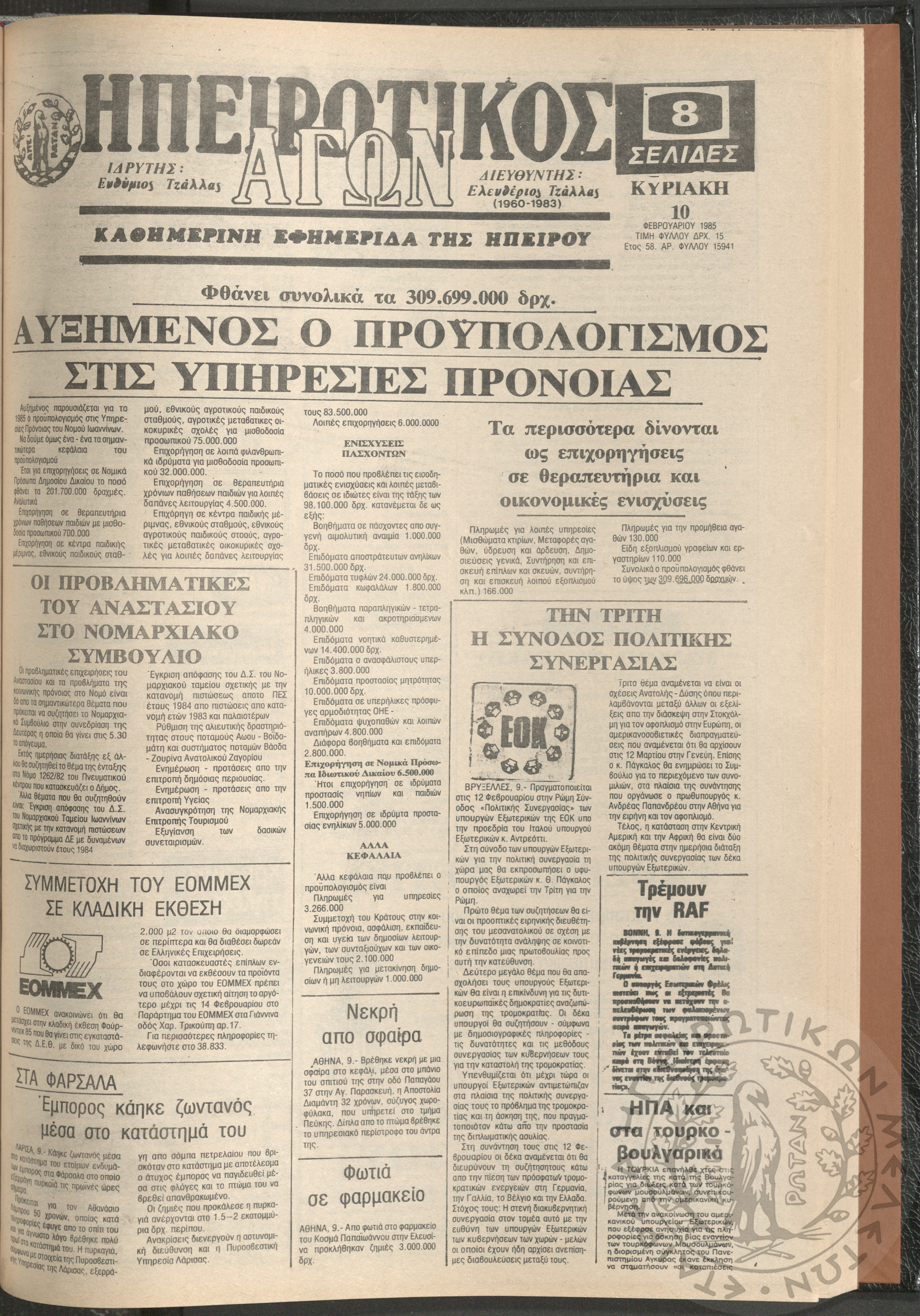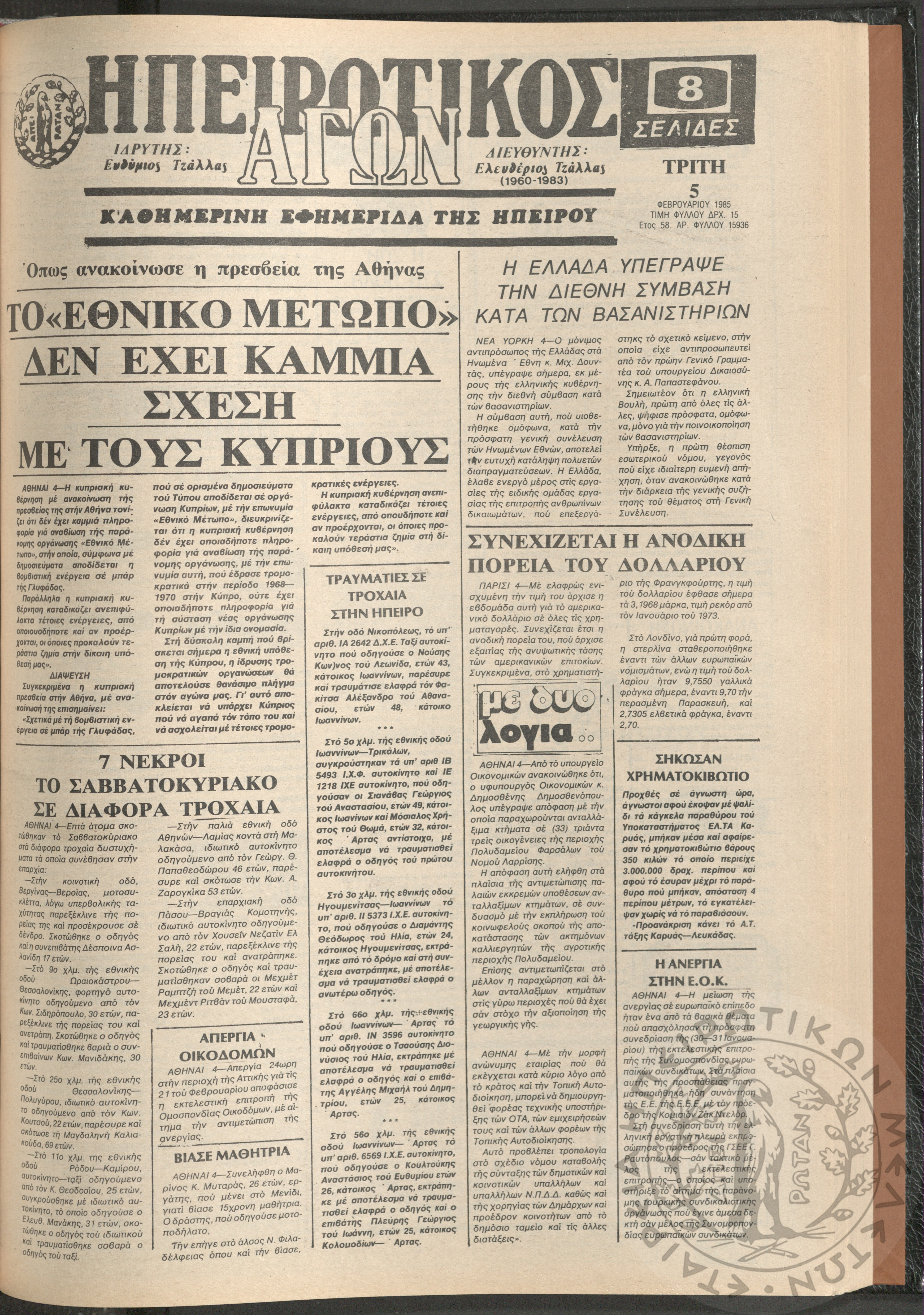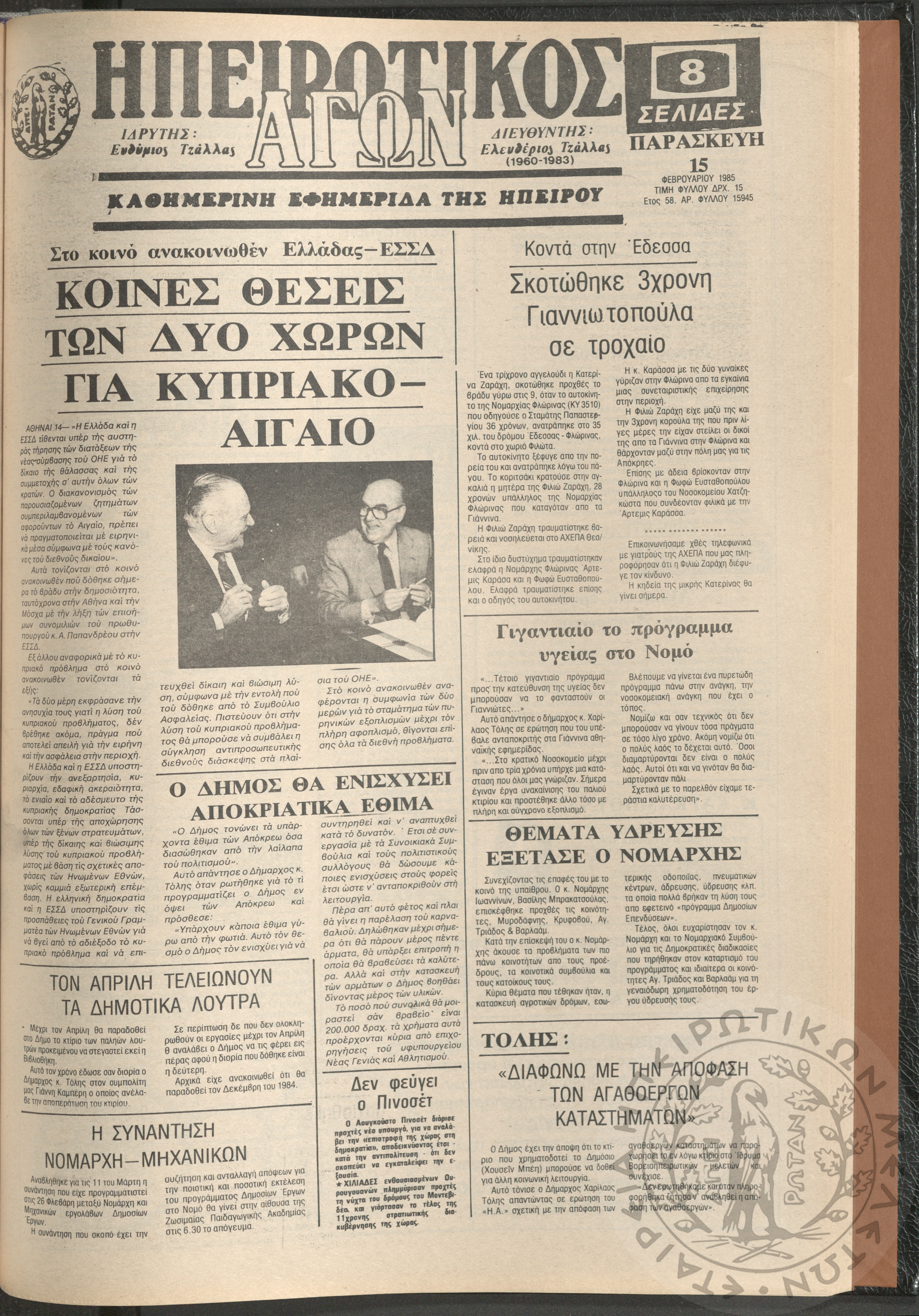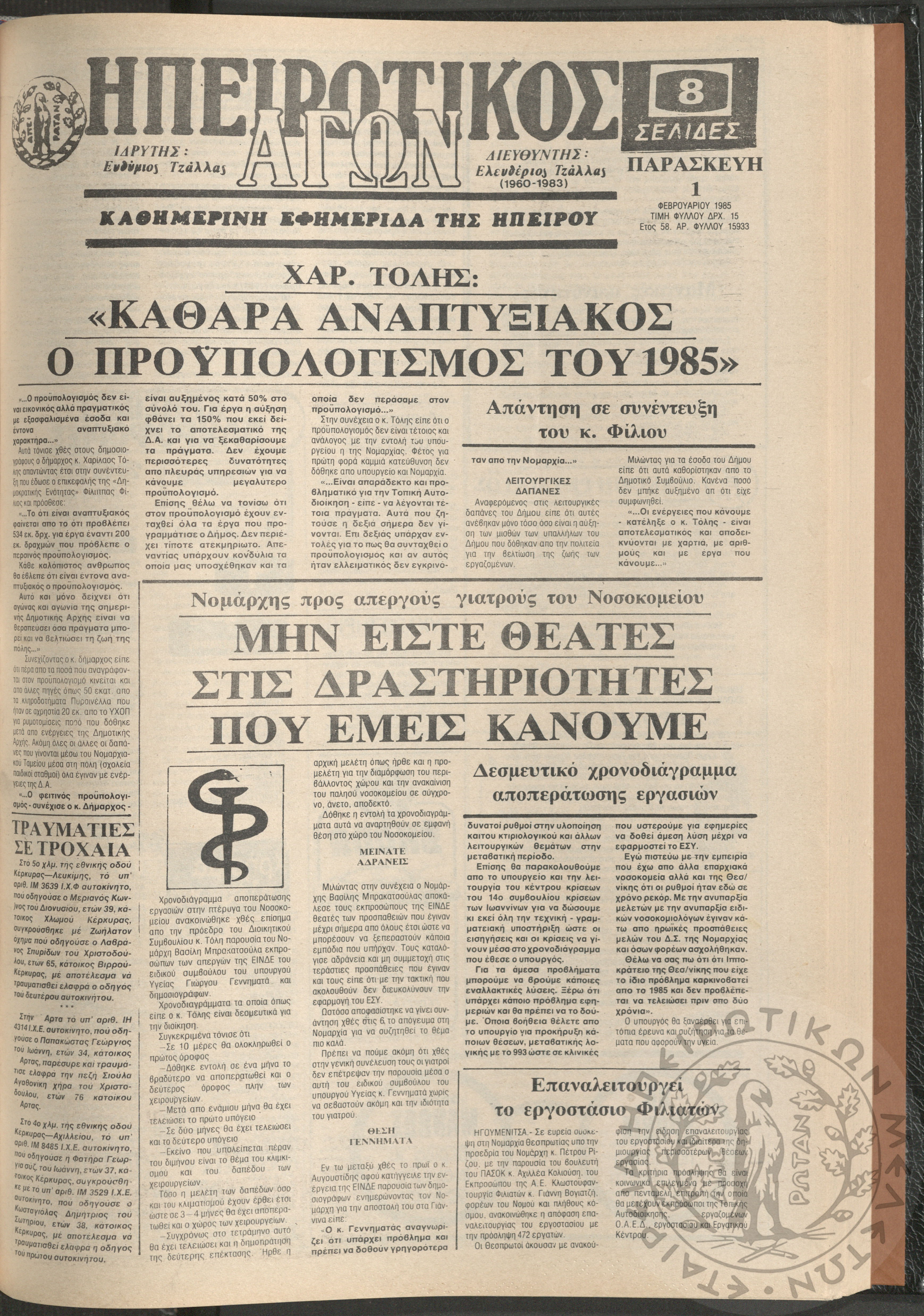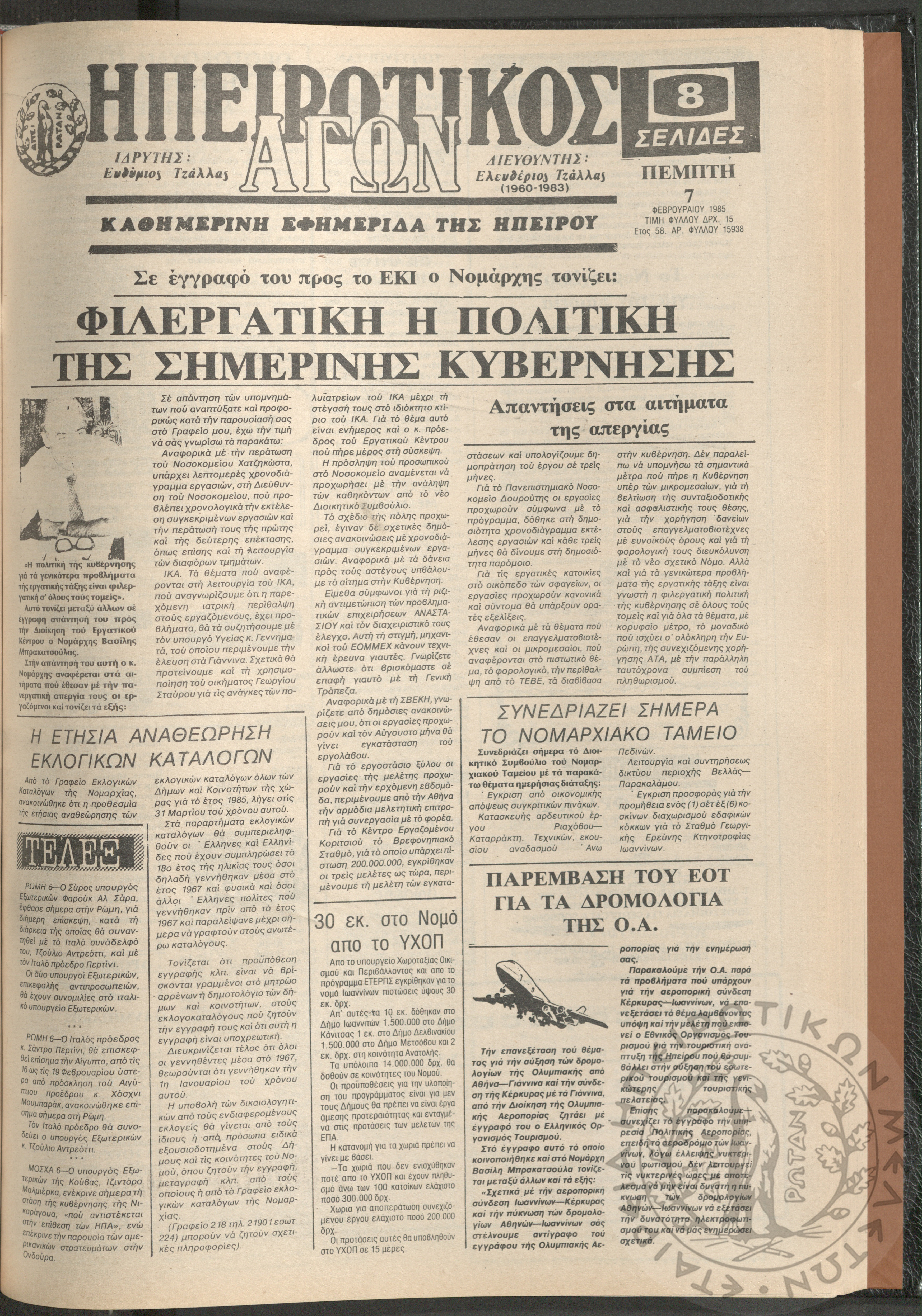 Ηπειρωτικός Αγών: καθημερινή εφημερίδα της Ηπείρου, 1985, φ. 15933