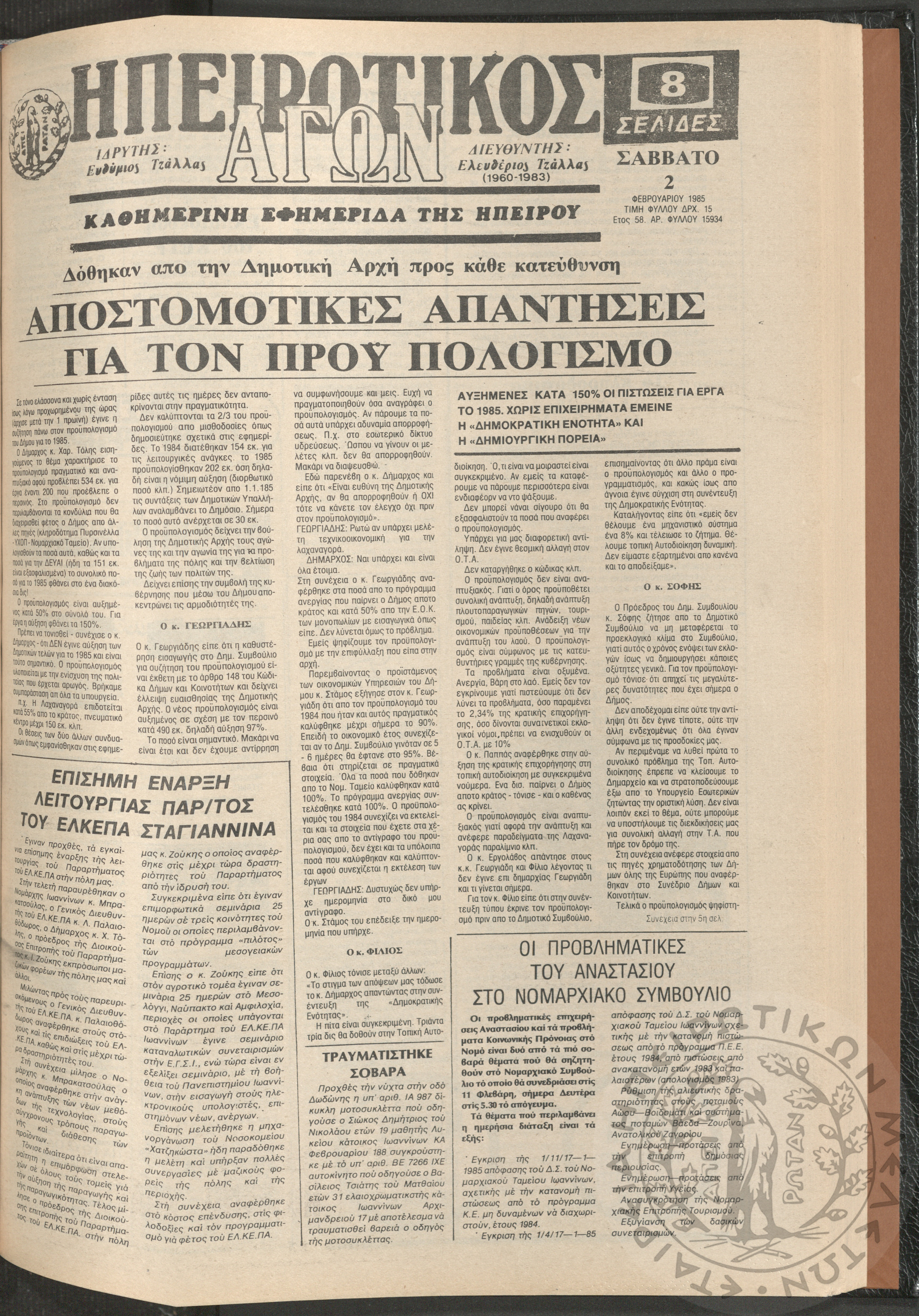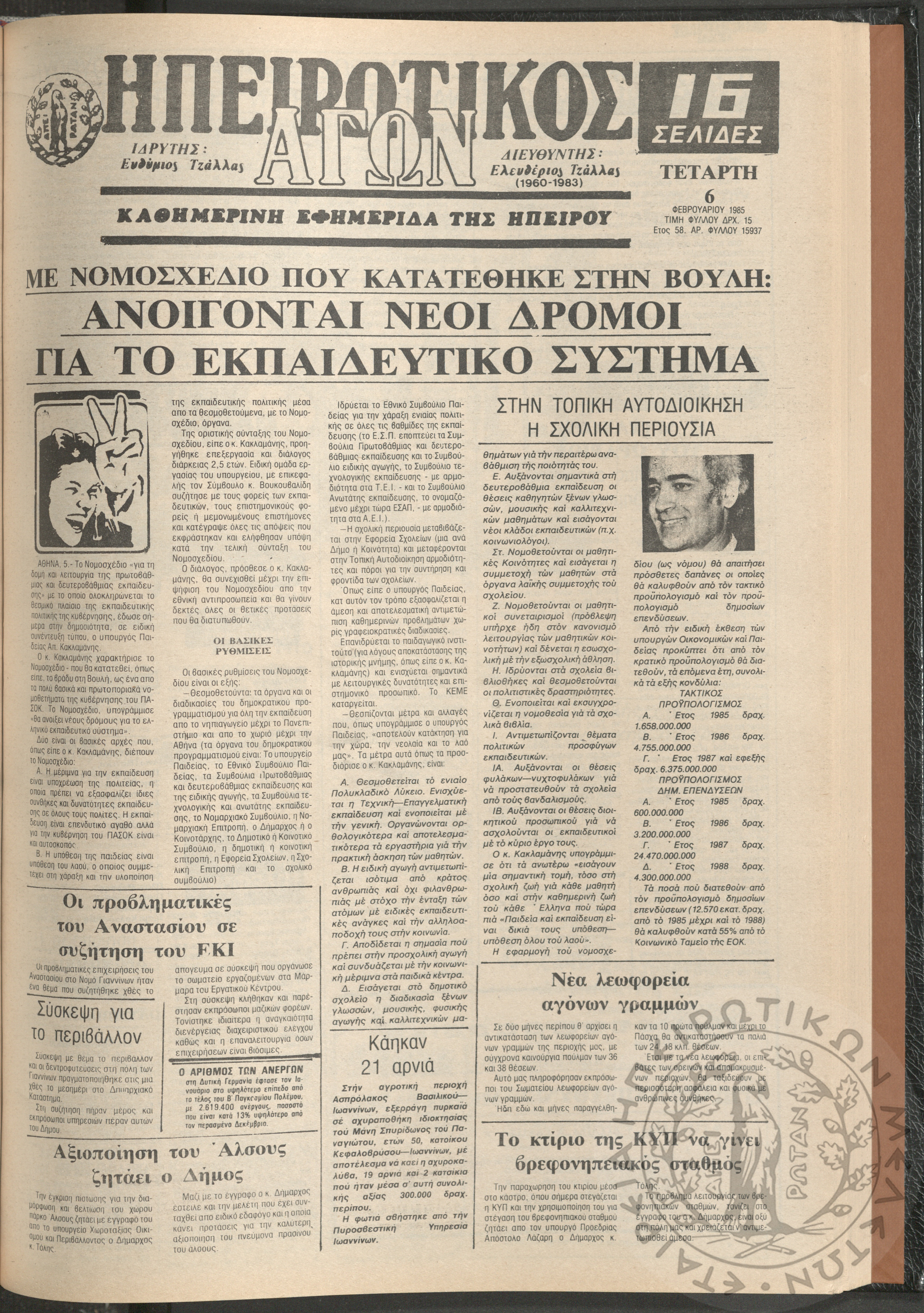 Ηπειρωτικός Αγών: καθημερινή εφημερίδα της Ηπείρου, 1985, φ. 15937