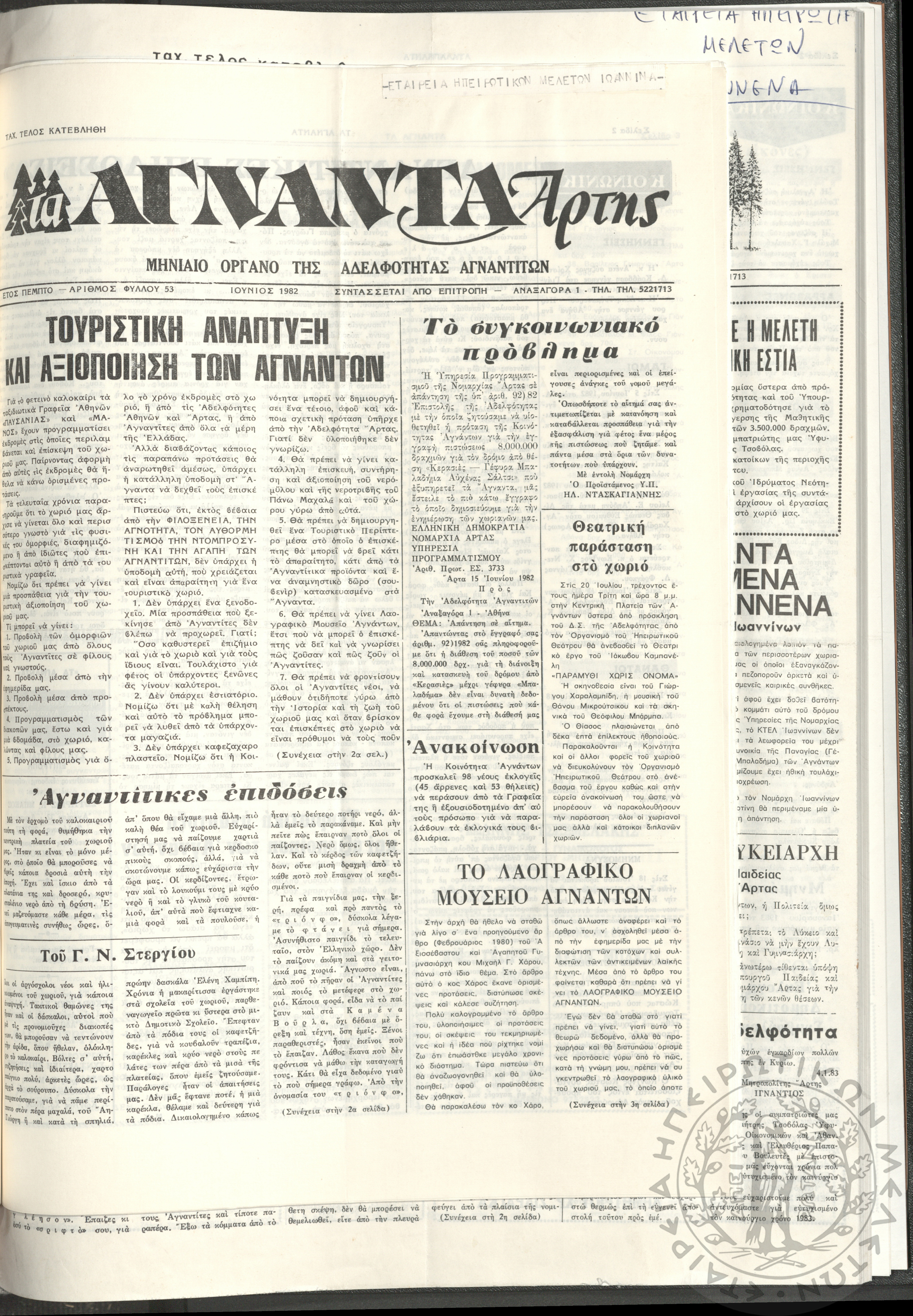 Τα Άγναντα Άρτης: μηνιαίο όργανο της Αδελφότητας Αγναντιτών, 1982, φ. 53
