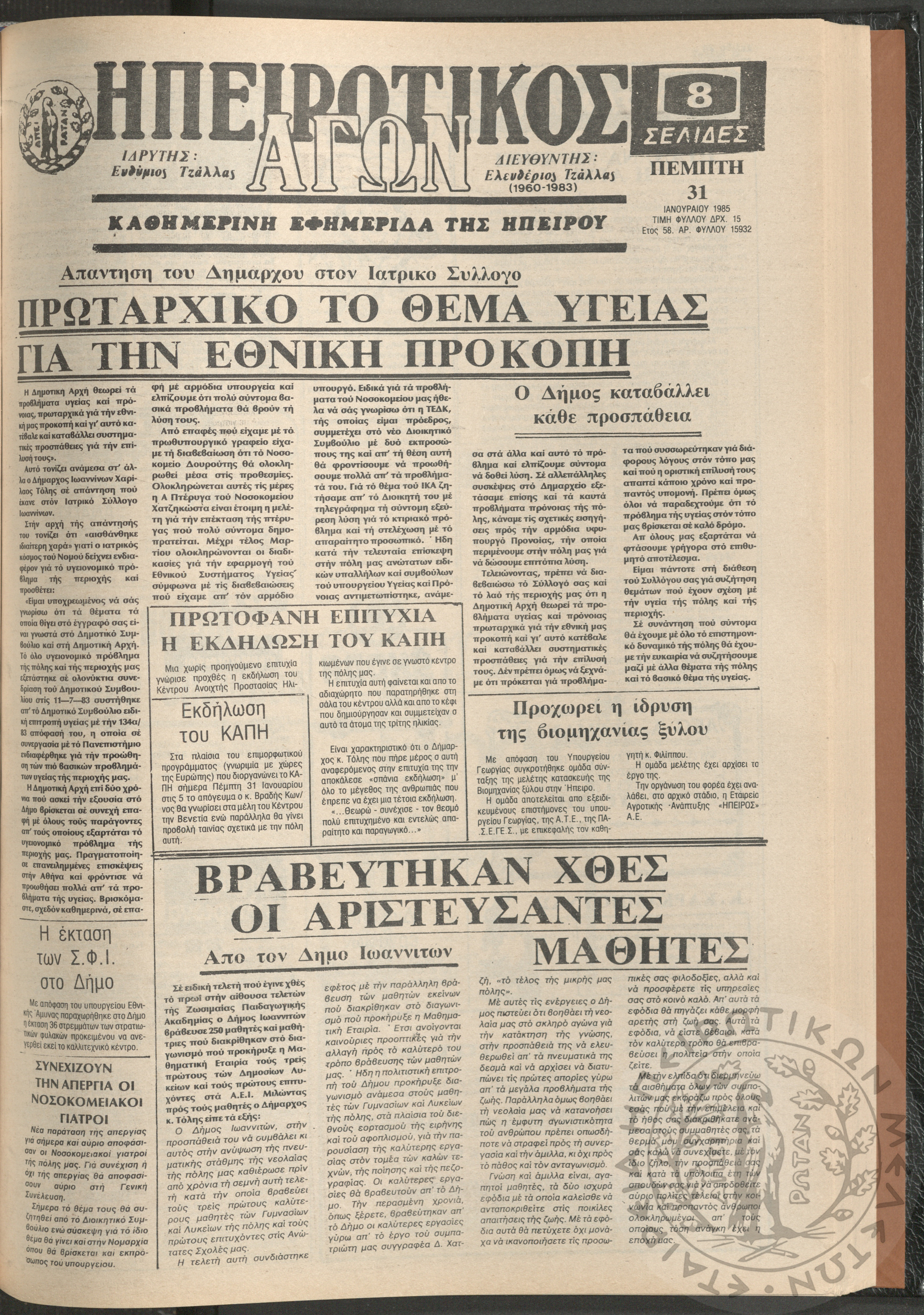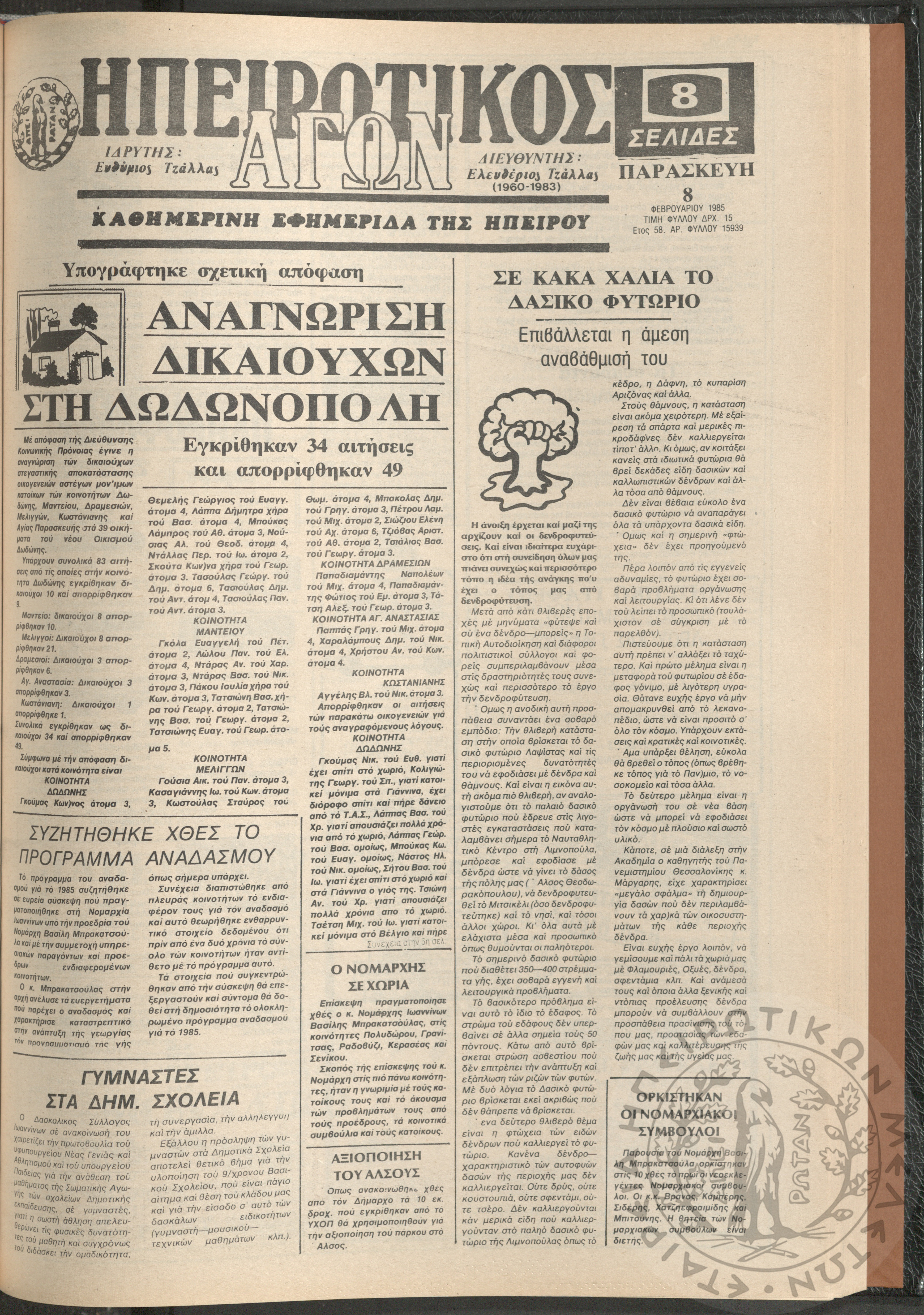 Ηπειρωτικός Αγών: καθημερινή εφημερίδα της Ηπείρου, 1985, φ. 15931