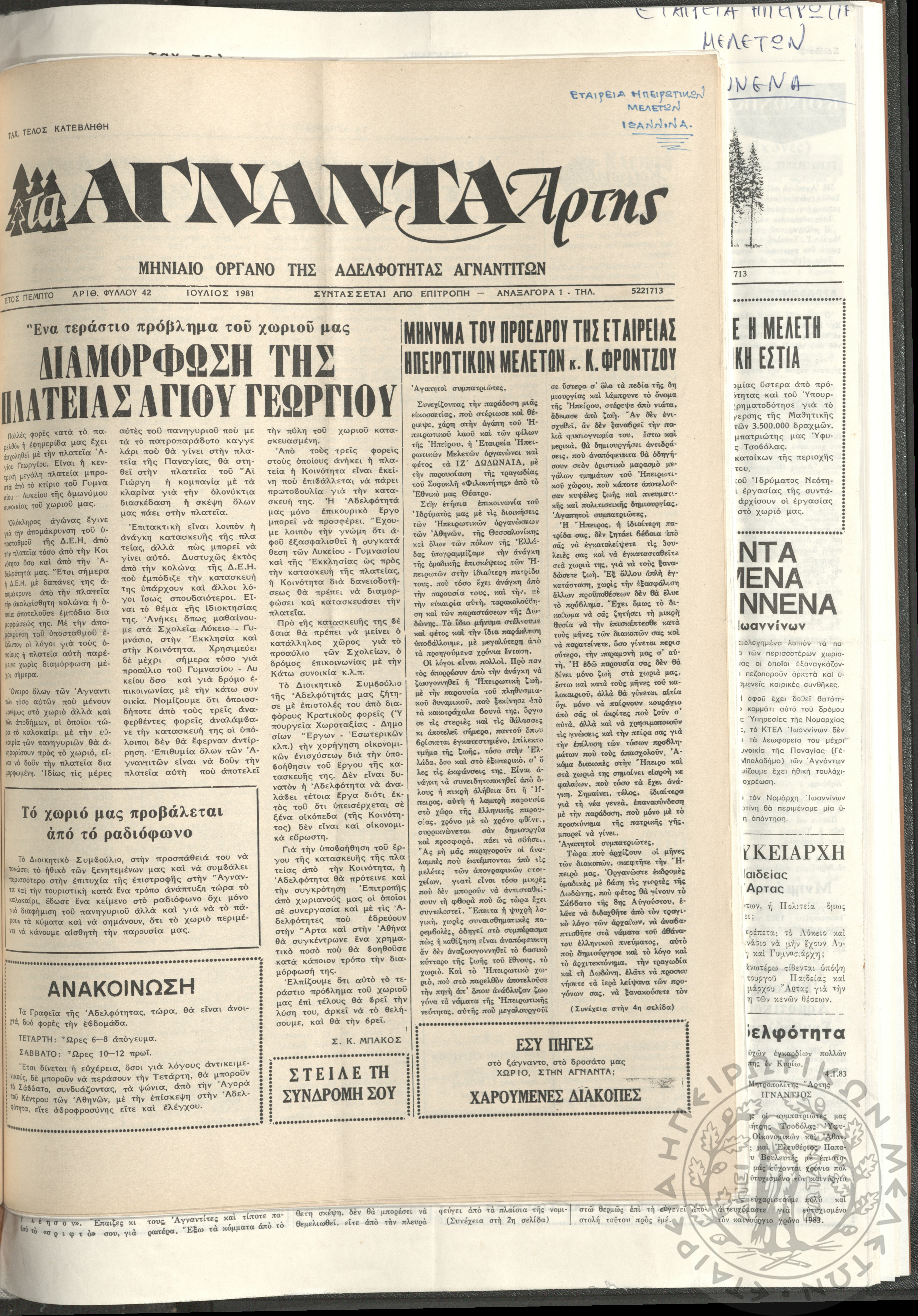 Τα Άγναντα Άρτης: μηνιαίο όργανο της Αδελφότητας Αγναντιτών, 1981, φ. 42