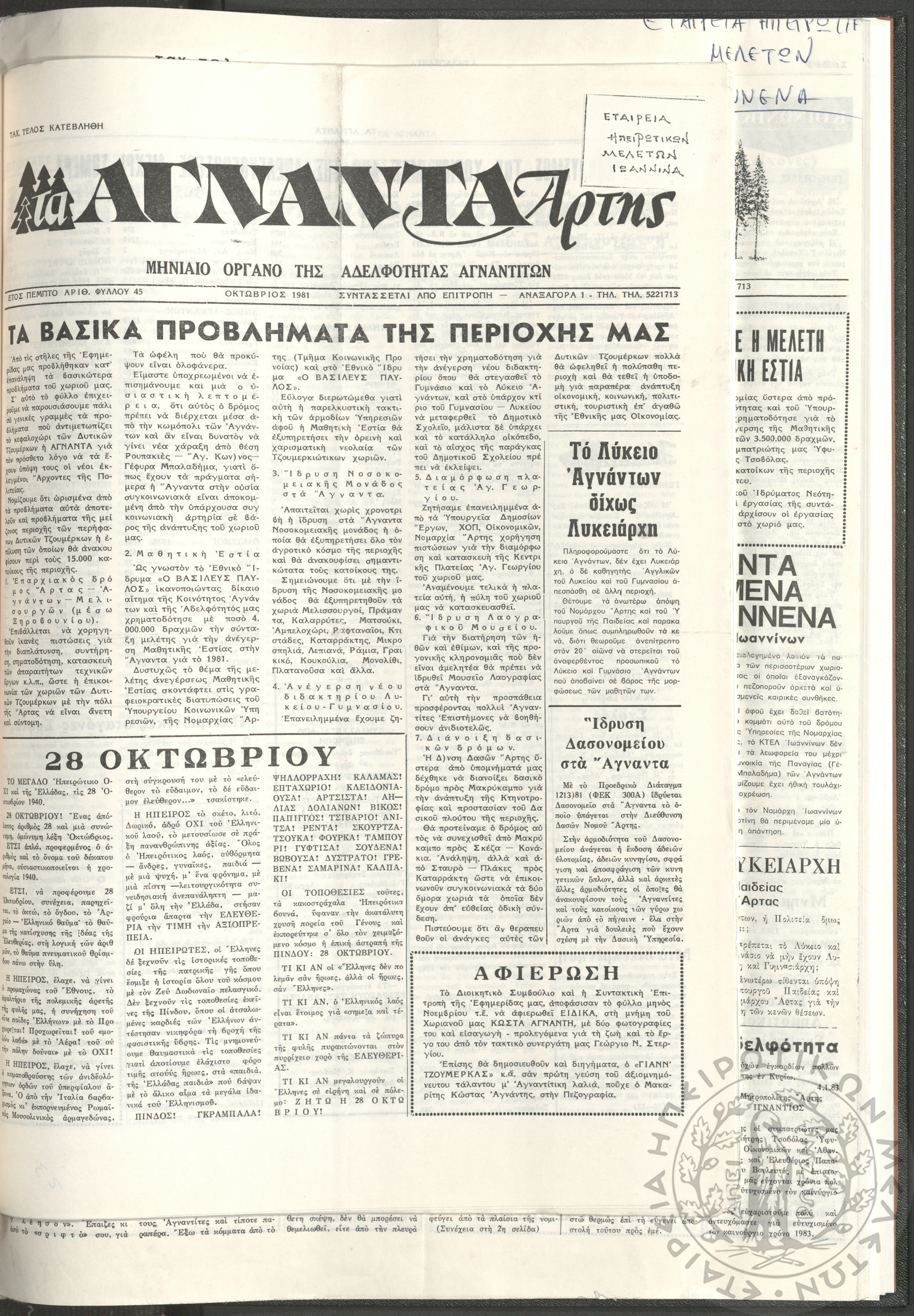 Τα Άγναντα Άρτης: μηνιαίο όργανο της Αδελφότητας Αγναντιτών, 1981, φ. 45